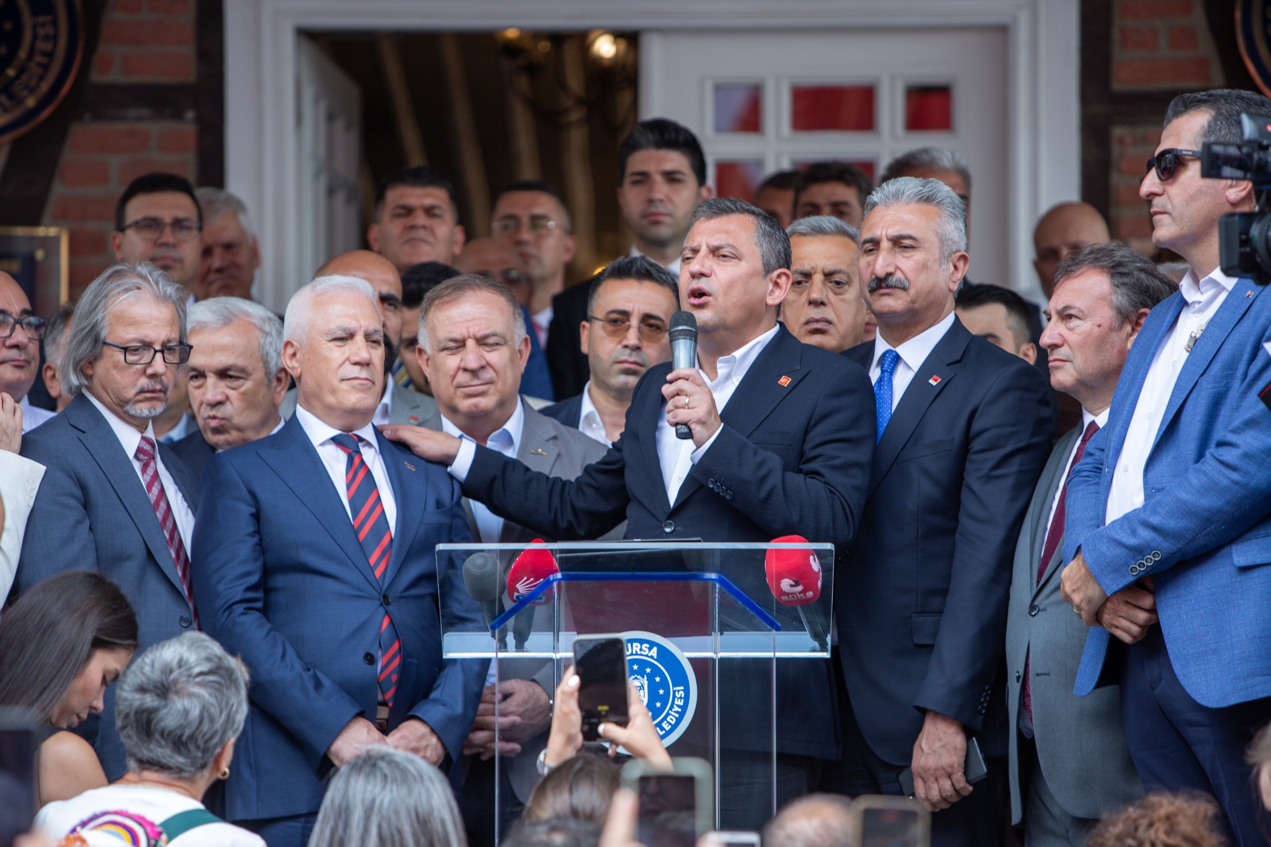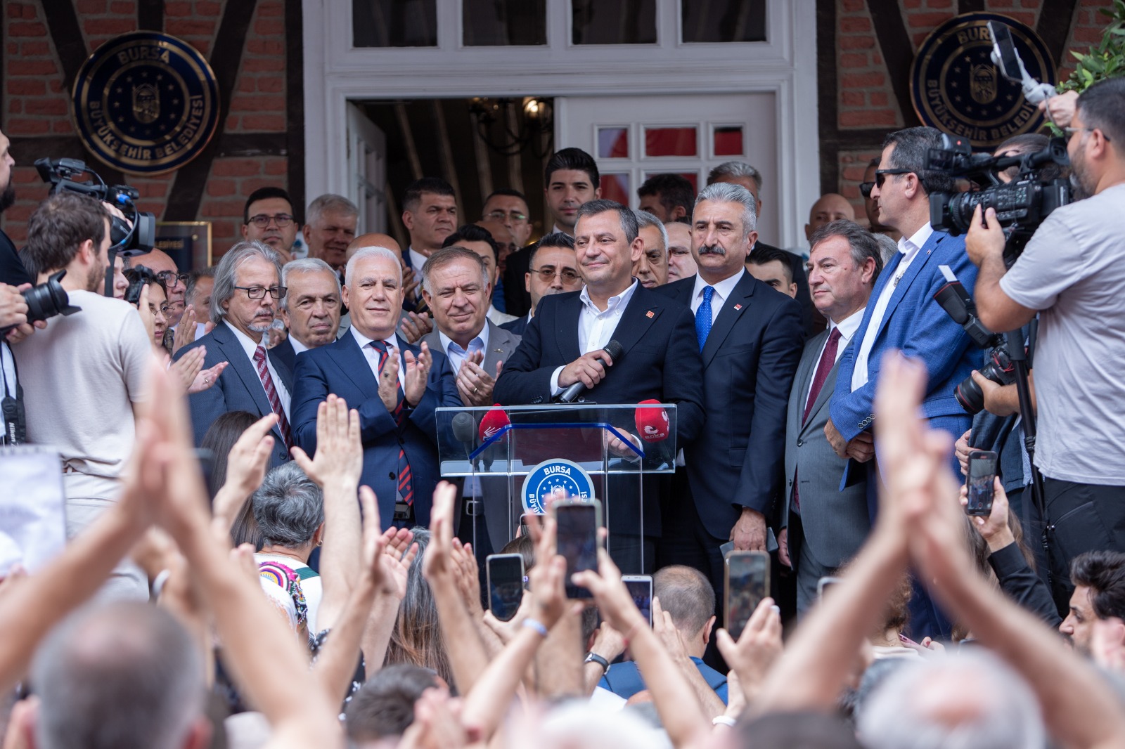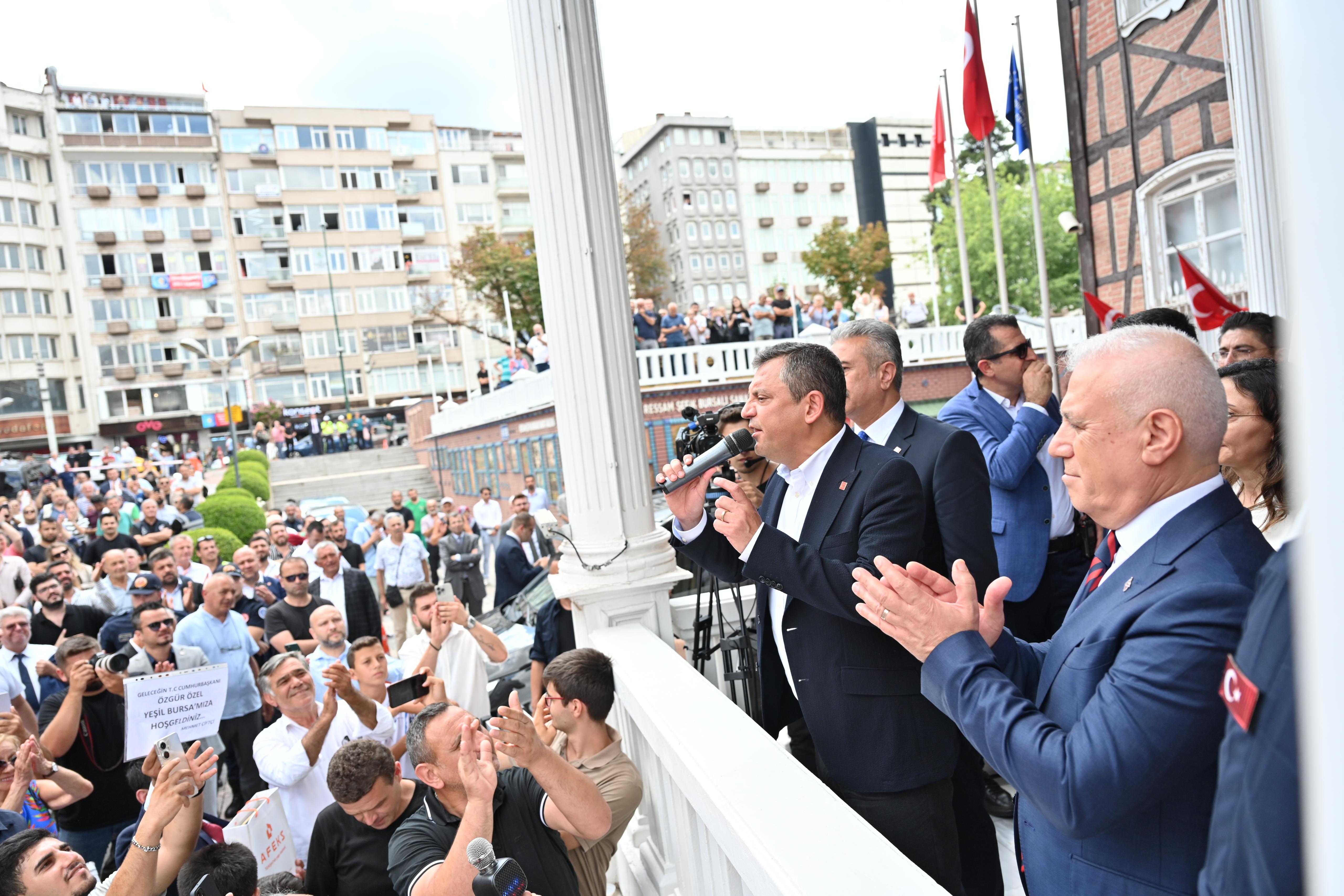 Bursa Büyükşehir Belediyesi’ni kaybetmenin hazımsızlığı için de Bursalılara fatura çıkarıldığını söyleyen Özel, bunu kabul etmediklerini dile getirdi. Şirketlere 660 milyar vergi affı getirmek yerine tahsil edilmesi halinde belediyelerden hiç para kesilmeyebileceğini belirten Özel, “Hatta 5 katını yollar, en iyi hizmetleri halkın almasını sağlayabilirdi. Ama mesele çalıştırmamak. Tüm engellemelere rağmen milletin adayı Mustafa Bozbey kazandı. Bursa’da millet yetkiyi Mustafa Bozbey’e verdi. Türkiye’nin ikinci yüzyılında ve 47 yıl sonra partimiz, Türkiye’de birinci parti oldu. Bu balkondan Gazi Mustafa Kemal Atatürk Bursalılara konuştuğunda ne hissettiyse onun hissettiklerini hissediyorum. Bursalılara karşı muhabbet hissediyorum” diye konuştu.