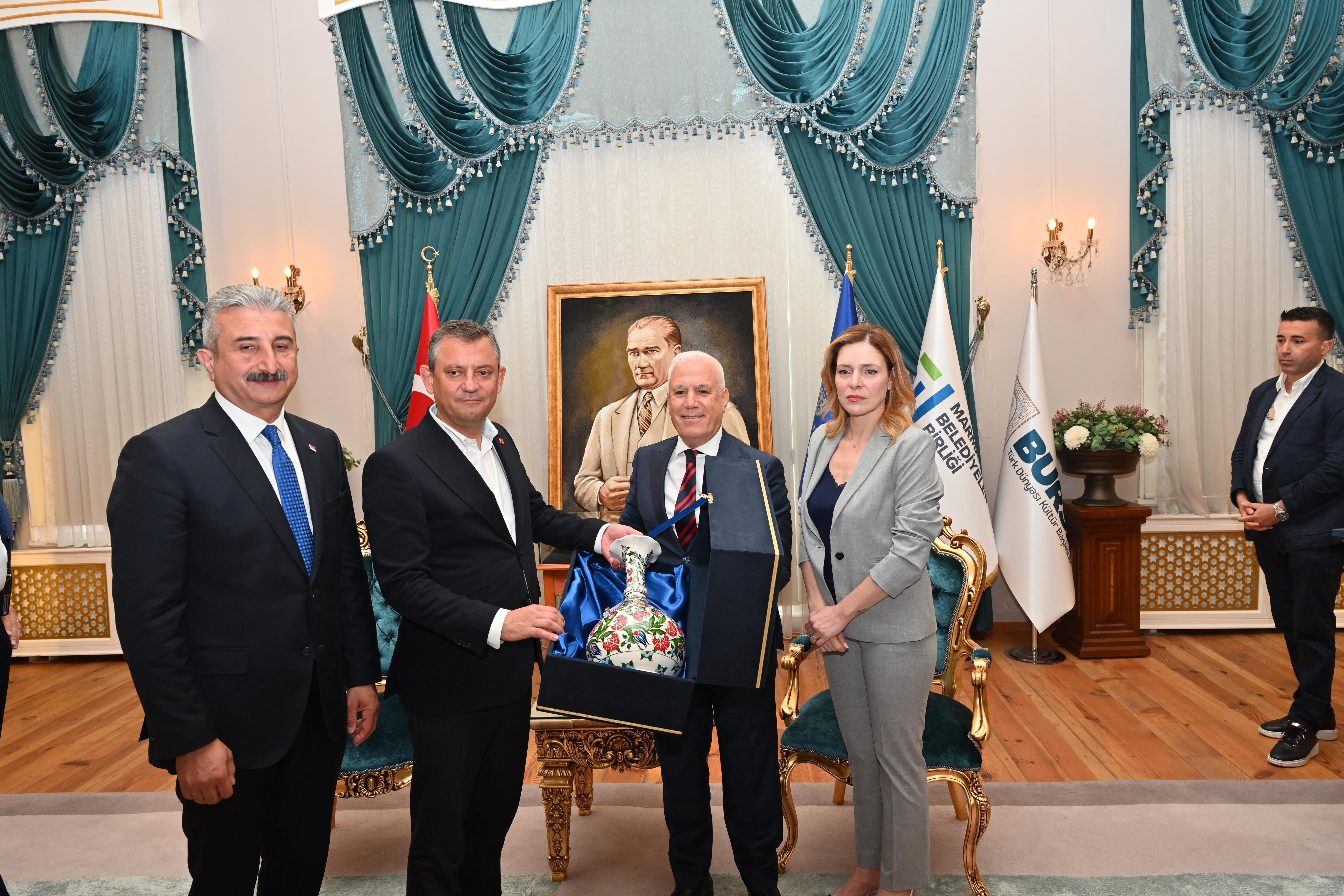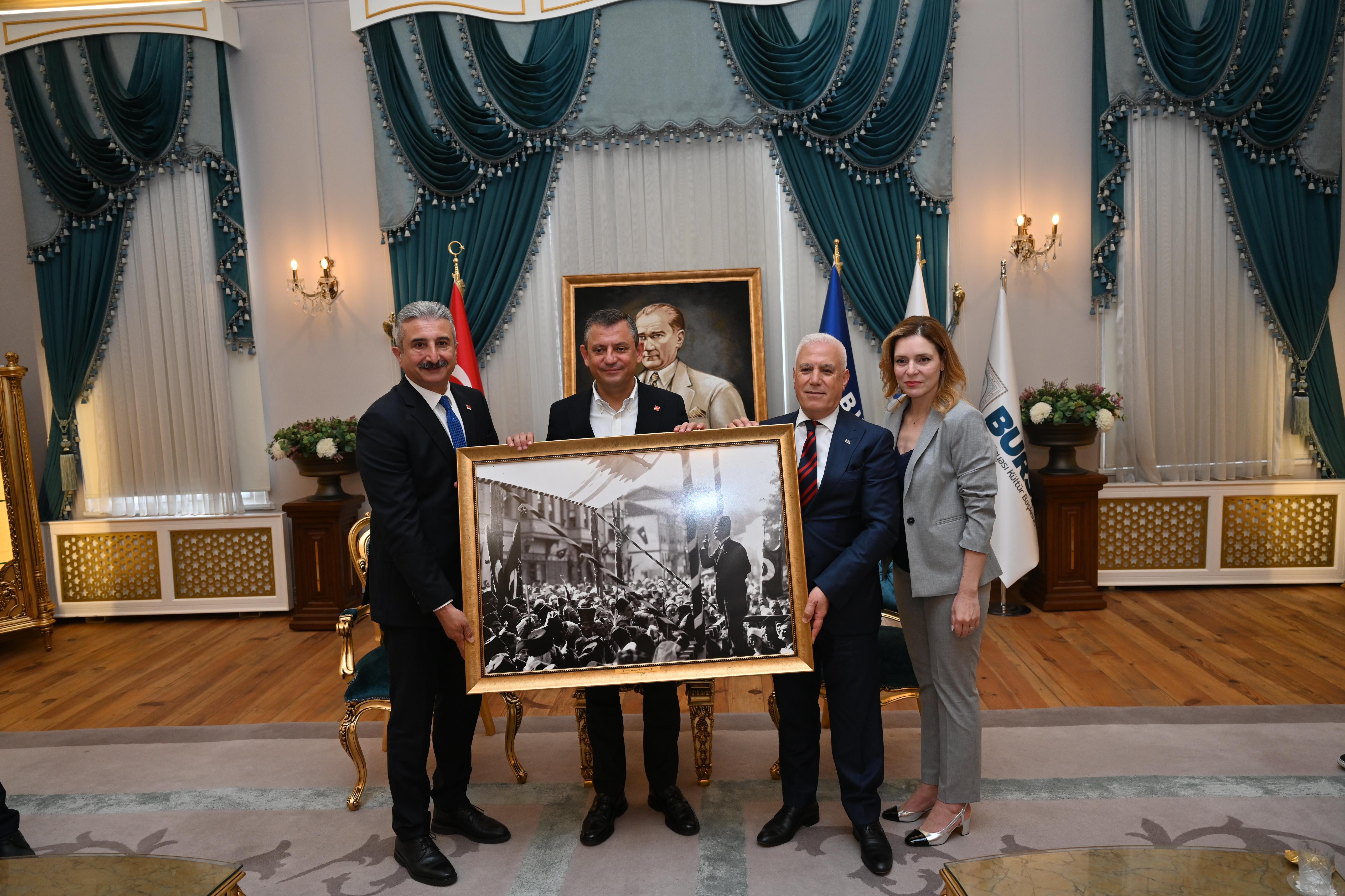 Ziyaretin sonunda Bursa Büyükşehir Belediye Başkanı tarafından CHP Genel Başkanı Özgür Özel’e günün anısına Atatürk’ün Bursa’da yaptığı konuşmaya ait fotoğraf, çini vazo ve Bursa ipeği hediye edildi. Özgür Özel, Mustafa Bozbey ve beraberindekiler daha sonra Tarihi Belediye Binası’nın balkon kısmına geçerek Bursalılarla buluştu.