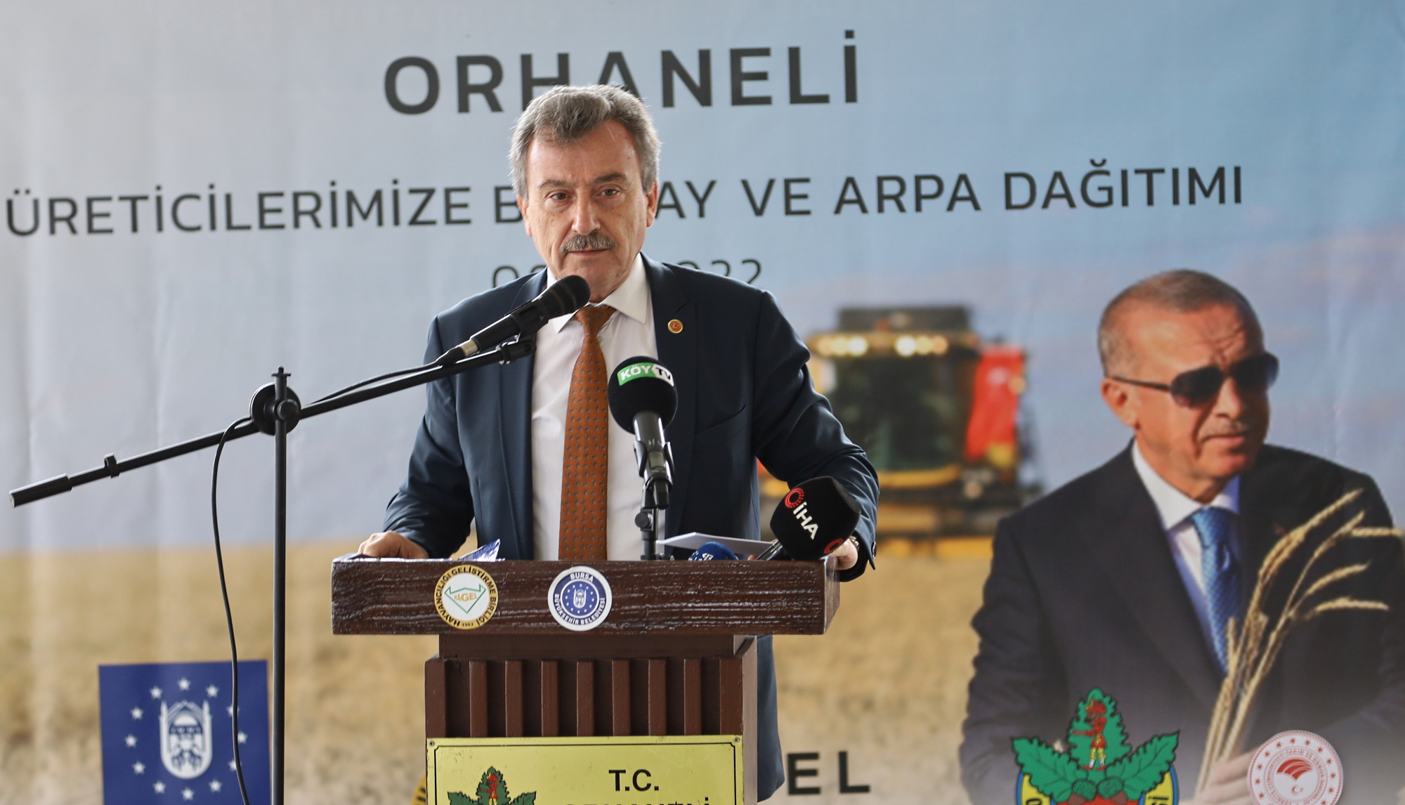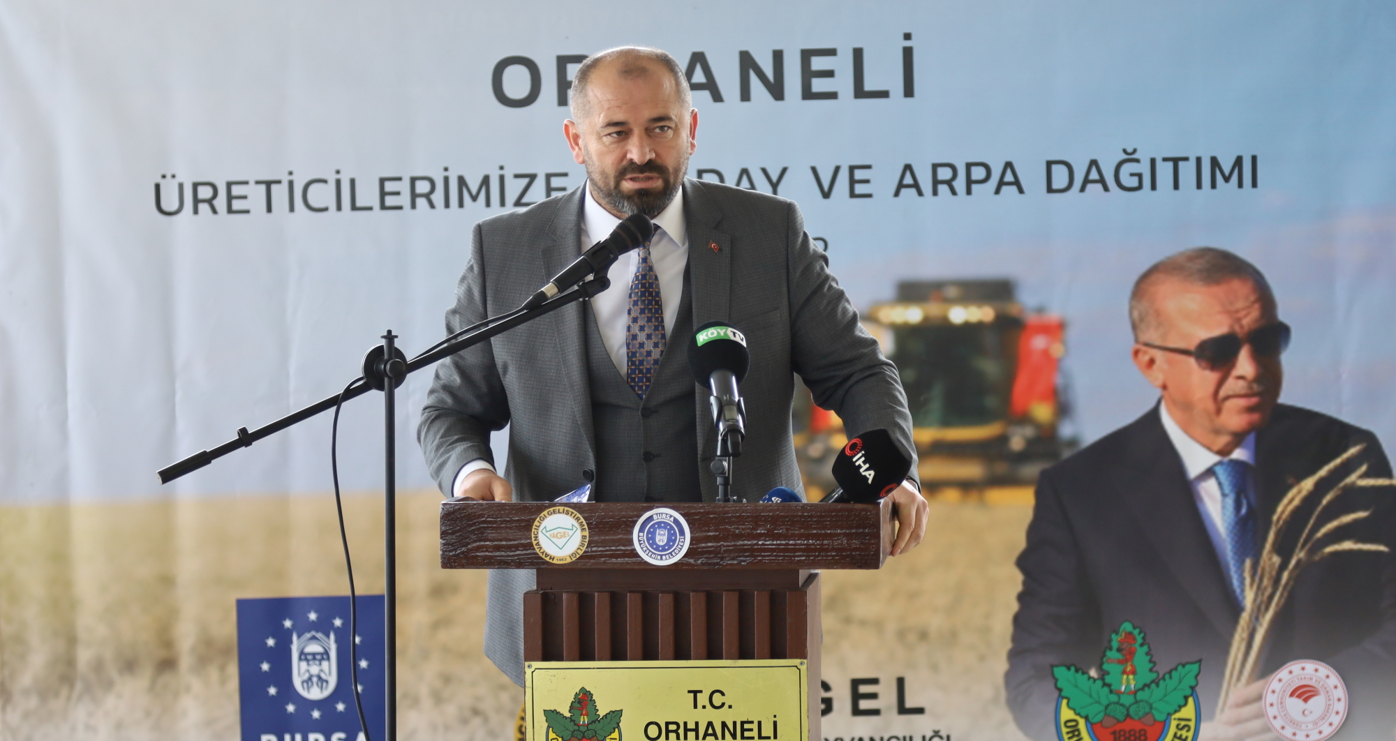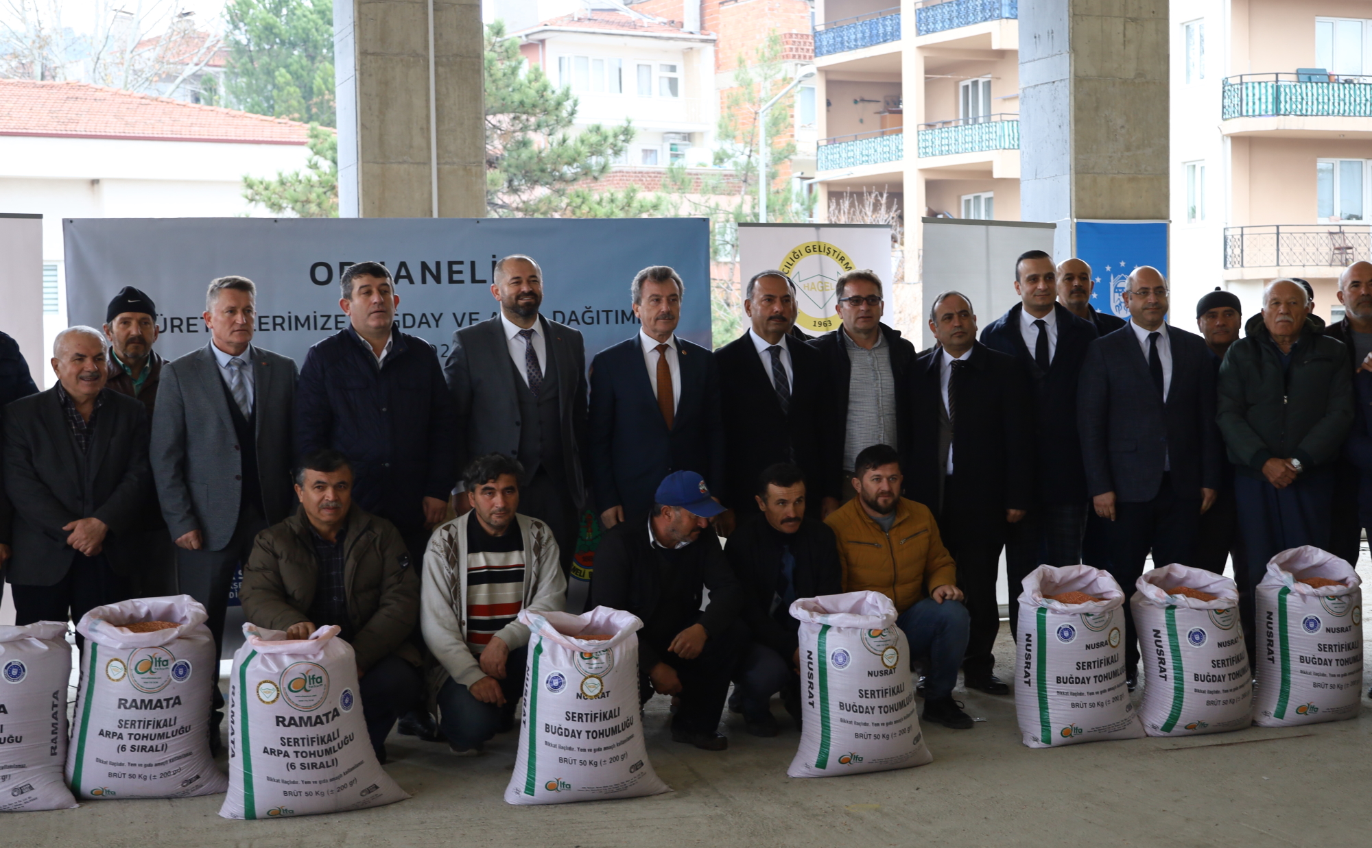 Bursa Büyükşehir Belediyesi, İl Tarım Orman Müdürlüğü ve HAGEL işbirliğiyle düzenlenen buğday ve arpa dağıtım törenine İl Tarım ve Orman Müdürü Hamit Aygül, Bursa Büyükşehir Belediyesi Başkanvekili Süleyman Çelik ve Orhaneli Belediye Başkanı Ali Aykurt ile üreticiler katıldı.