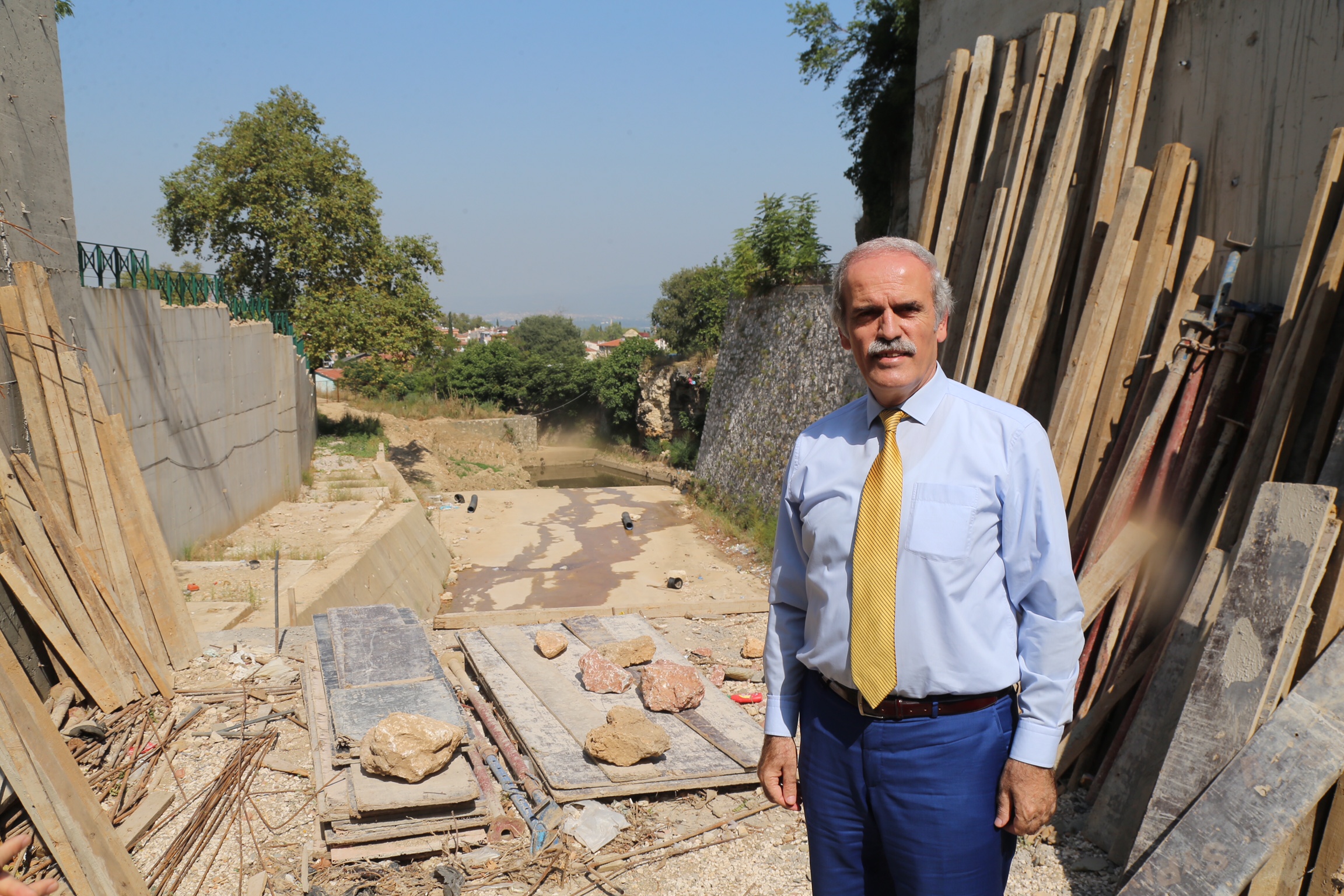 BURSA - Bursa’da 7 yıl önce yaşanan sel baskınında taşan Cilimboz Deresi etrafındaki evlerin yıkılmasının ardından dere ıslah ve çevre düzenleme projesiyle bölgeye ayrıcalıklı bir meydan kazandıran Büyükşehir Belediyesi, şimdi de projenin ikinci etabı olan ulaşım projesiyle Muradiye ile Alacahırka Mahallelerini derenin her iki yanına açılan yol ile birbirine bağlıyor. Yolun yapılacağı yaklaşık 400 metrelik güzergahta derenin her iki yamacının istinat duvarlarıyla güçlendirildiğini belirten Büyükşehir Belediye Başkanı Recep Altepe, yaklaşım 4 milyon TL’ye mal olacak çalışma ile Muradiye ile Alacahırka Mahallelerinin alternatif bir yolla birbirine bağlanacağını söyledi.
