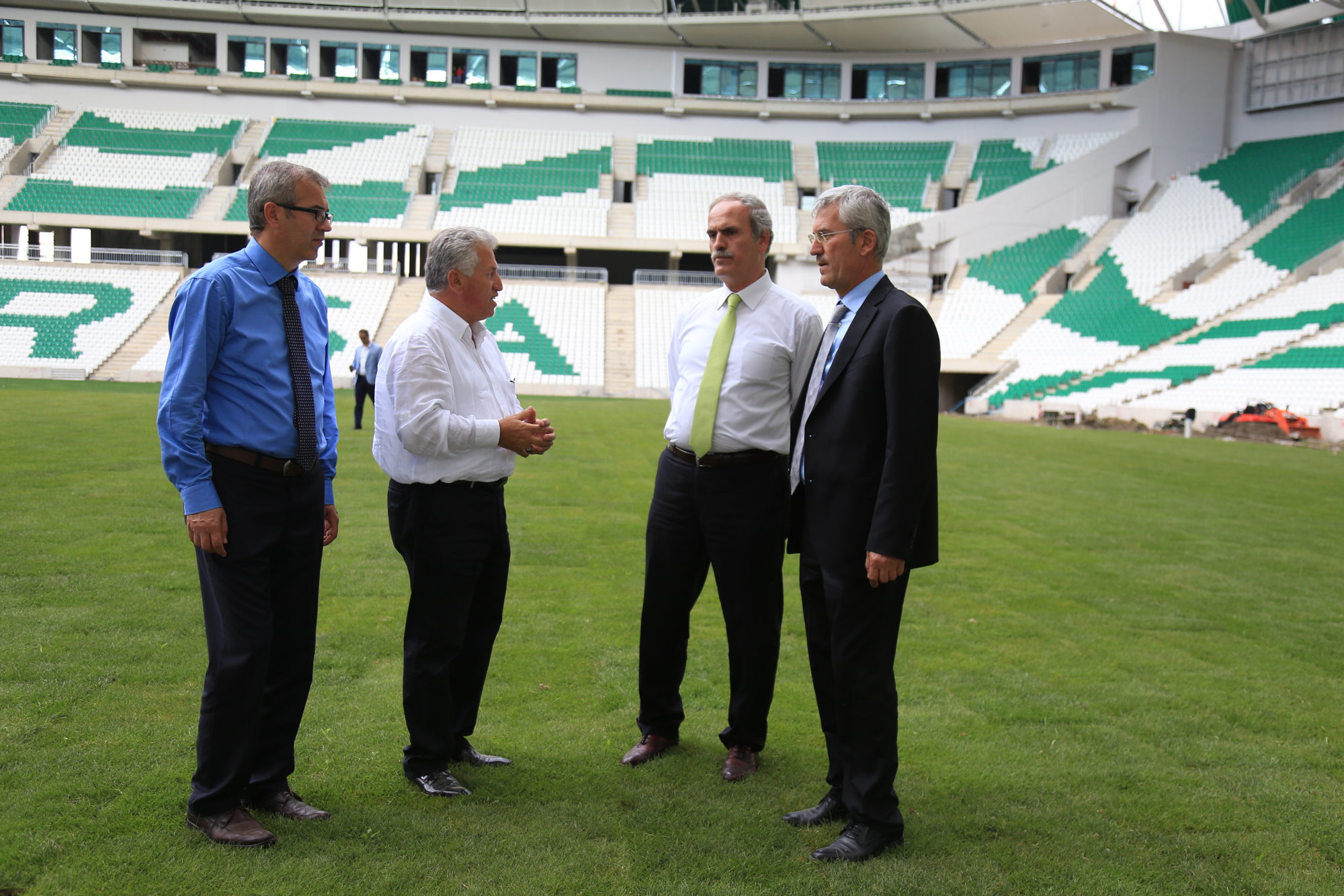 - BURSA BÜYÜKŞEHİR BELEDİYESİ TARAFINDAN YAPTIRILAN YENİ STADYUMDA İNŞAAT SON AŞAMAYA GELİRKEN, ÇİMLERİN SERİLMESİYLE STADYUM GERÇEK ANLAMDA ORTAYA ÇIKTI.