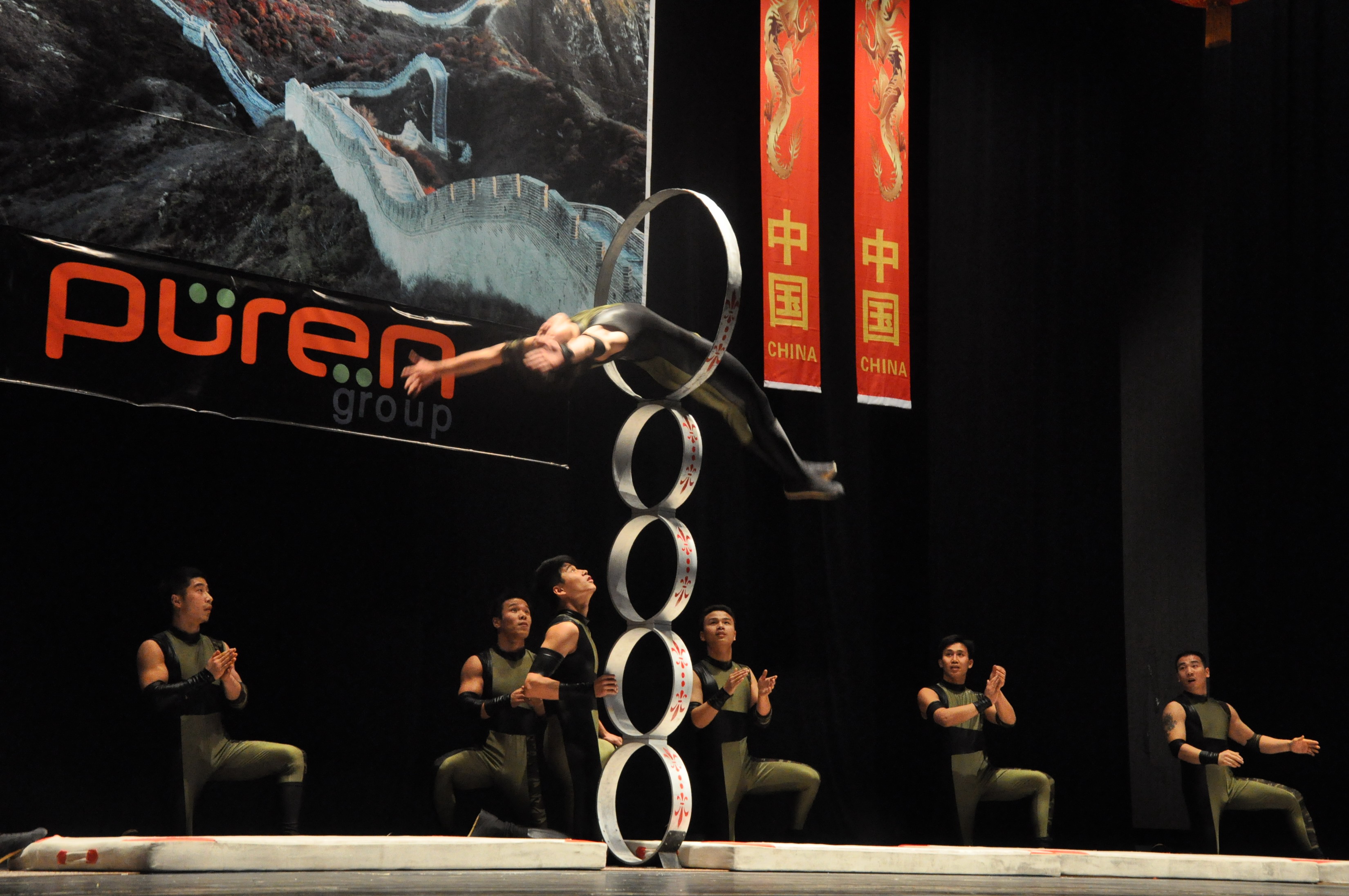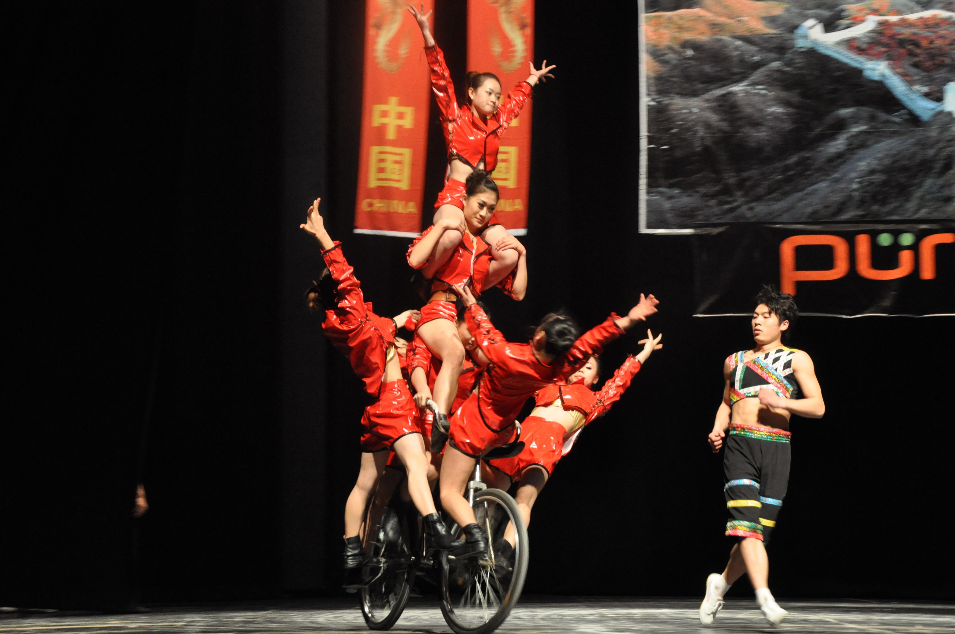 Dünya turnesine çıkan Çin Ulusal Akrobasi Topluluğu, 2012 yılının Türkiye’de ‘Çin Kültür Yılı’ olarak kutlanacak olmasından dolayı, fizik kurallarını altüst eden gösterilerini, Bursa’da sahneledi. 2 gün boyunca Atatürk Kongre Kültür Merkezi’nde (Merinos AKKM) Bursalılarla bir araya gelen topluluk, muhteşem bir görsel şölene imza attı. Türkiye’deki ikinci gösterisini Bursa’da yapan ekip, Bursa Büyükşehir Belediyesi iştiraklerinden Bursa Kültür AŞ ile Püren Organizasyon işbirliğiyle sanatseverlerle bir araya geldi. Bir bisiklete 15 kişi binebilen sporculardan oluşan topluluk, yerçekimine meydan okuyan gösterileriyle izleyicilerin nefesini kesti.