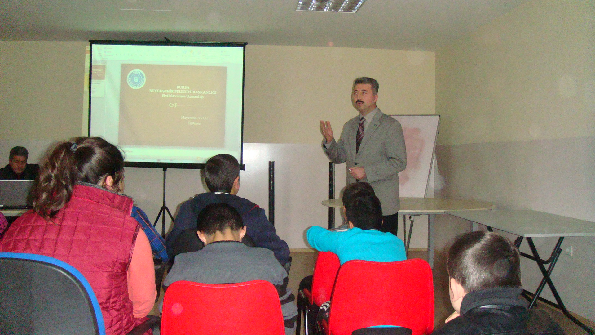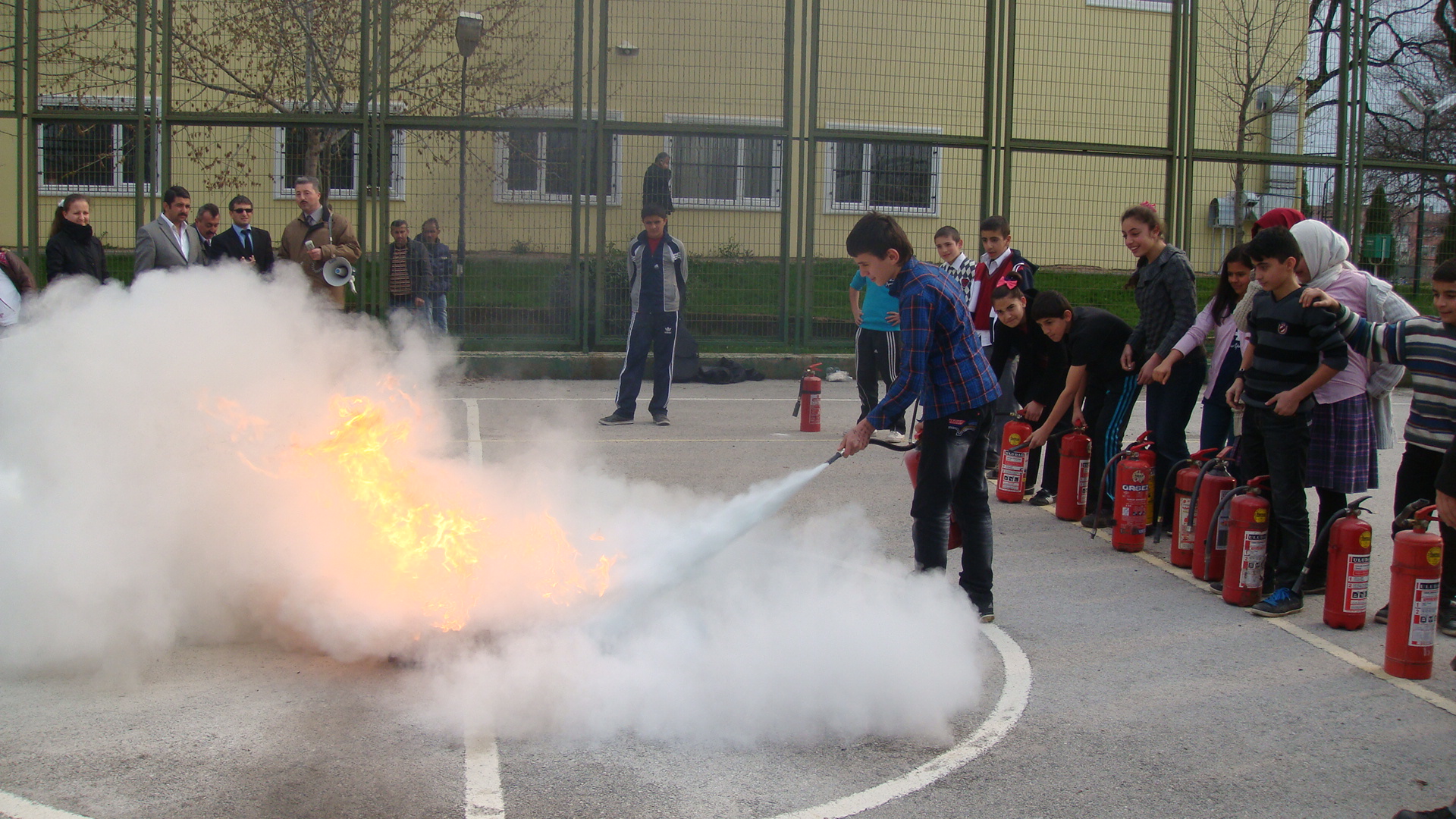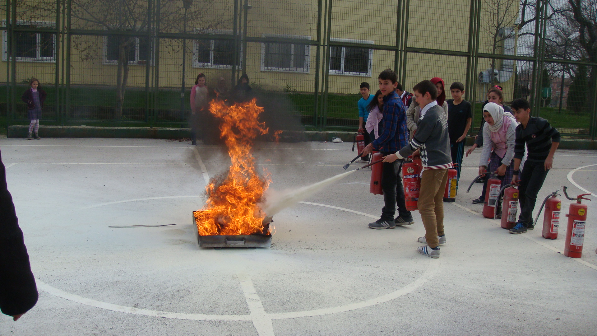 Büyükşehir Belediyesi’ne bağlı tüm birimlerin olası deprem, sel ve yangın gibi afetlere hazırlıklı olması, bu tür durumlarda doğru hareket tarzının bilinmesi ve böyle durumlarda doğru davranış sergilenmesi amacıyla personele periyodik olarak eğitim veren Sivil Savunma Uzmanlığı ekipleri, Hamitler Çocuk Eğitim Merkezi’ndeki öğrenci ve görevlilere de yangın söndürme eğitimi verdi. Bir ders saati yapılan görsel anlatımda, yangınların çıkış şekilleri ve müdahale yöntemleri hakkında pratik eğitim verildi. Daha sonra merkezin bahçesinde ise kontrollü olarak çıkarılan alevlere öğrenciler yangın söndürme tüpleri ile müdahale etti.