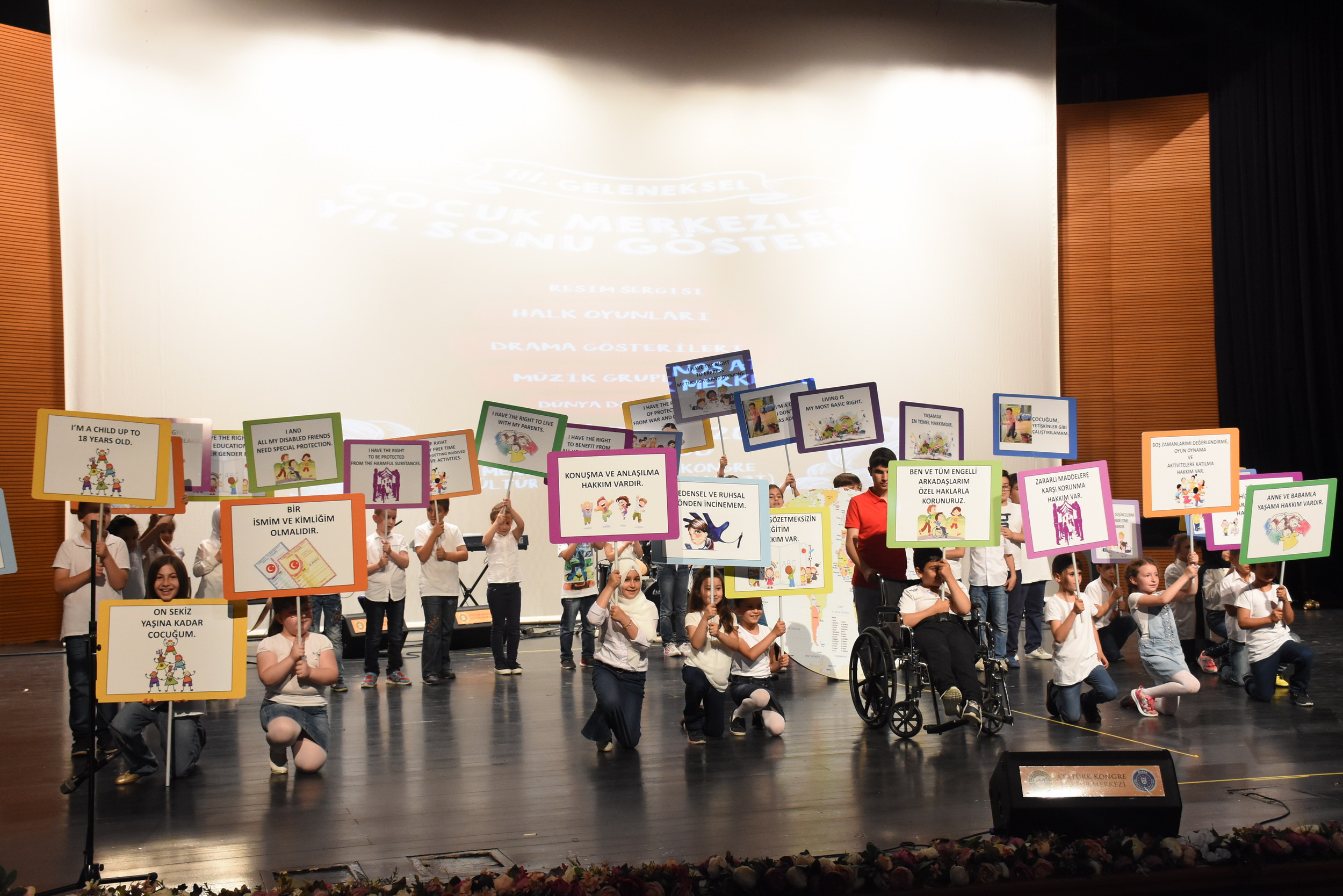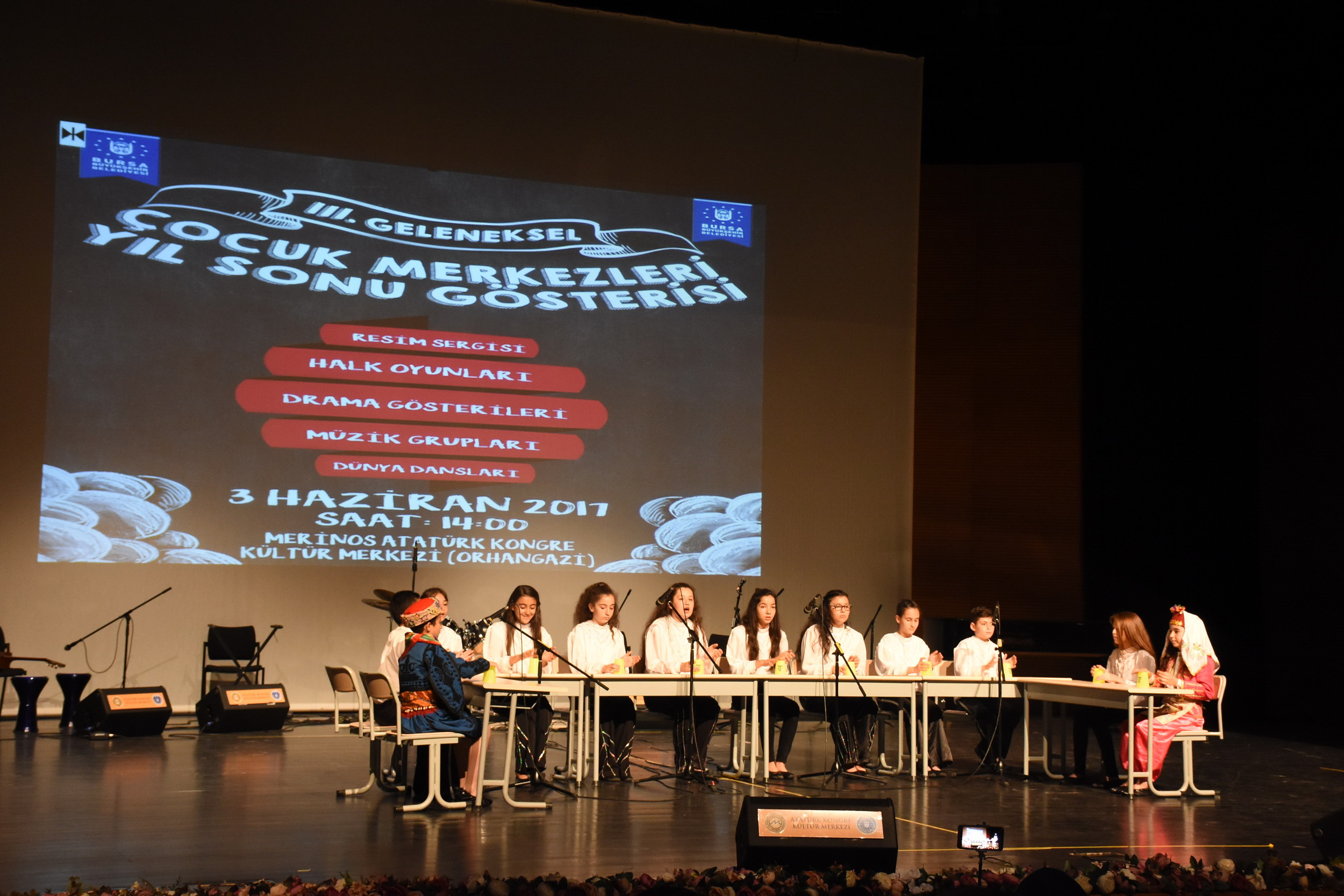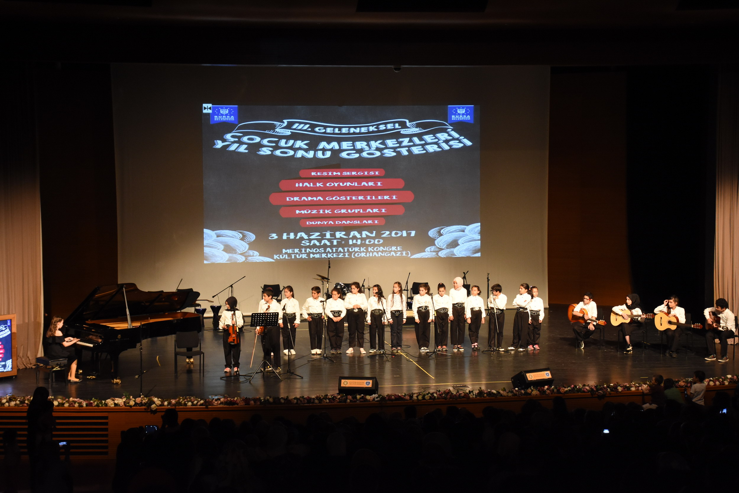 Bursa Büyükşehir Belediyesi Sosyal Hizmetler Şube Müdürlüğü’ne bağlı Hamitler Çocuk Merkezi, Alacahırka Çocuk ve Gençlik Merkezi ve Yavuzselim Sosyal Yaşam Merkezlerinin ortaklaşa düzenlediği gösteri, Atatürk Kongre Kültür Merkezi (Merinos AKKM) Orhangazi Salonu’nda yapıldı. Bu sene 3’üncüsü yapılan yıl sonu gösterisine aileler büyük ilgi gösterdi. Üç merkezde eğitim alan çocuklar sene boyunca edindikleri becerileri, hazırlanan oyun ve gösterilerle sergileme imkanı buldu. Resim sergisinin açılışıyla başlayan gösteride, İngilizce drama gösterileri, ritim grubu, koro ve solo performanslardan dünya danslarına, Bursa’dan Ege Bölgesi halk oyunlarına, kadar imza attıkları etkinliklerle çocuklar, müthiş performanslar sergiledi.