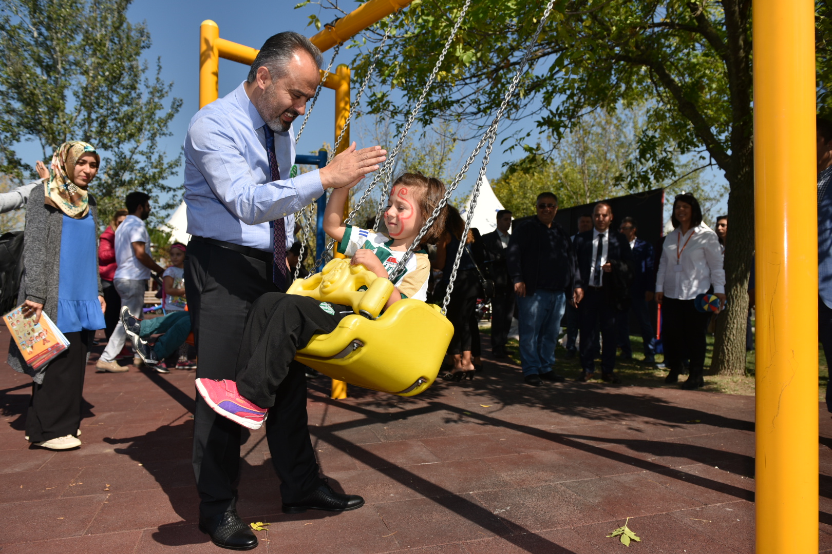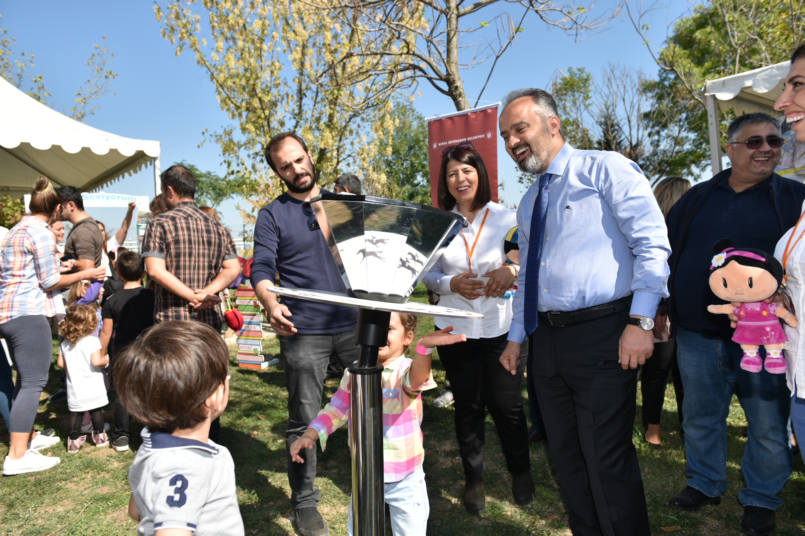 Şenliği ziyaret eden Bursa Büyükşehir Belediye Başkanı Alinur Aktaş, şenlik alanındaki atölye stantlarını gezdi. Çocuklarla ve aileleriyle sohbet eden Başkan Alinur Aktaş, miniklerle beraber boyama ve elektronik el işi çalışmalarına da katıldı. AK Parti Nilüfer İlçe Başkanı Yusuf Ay, TJK Bursa Osmangazi Hipodromu Müdürü Devrim Evcim, Basın Yayın ve Halkla İlişkiler Dairesi Başkanı Ahmet Bayhan’ın da katıldığı şenlikte, Başkan Aktaş ‘Atlı Terapi’ bölümünü de gezerek çalışmalar hakkında bilgi aldı.