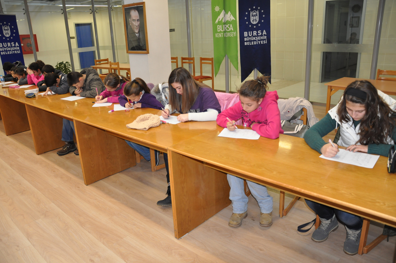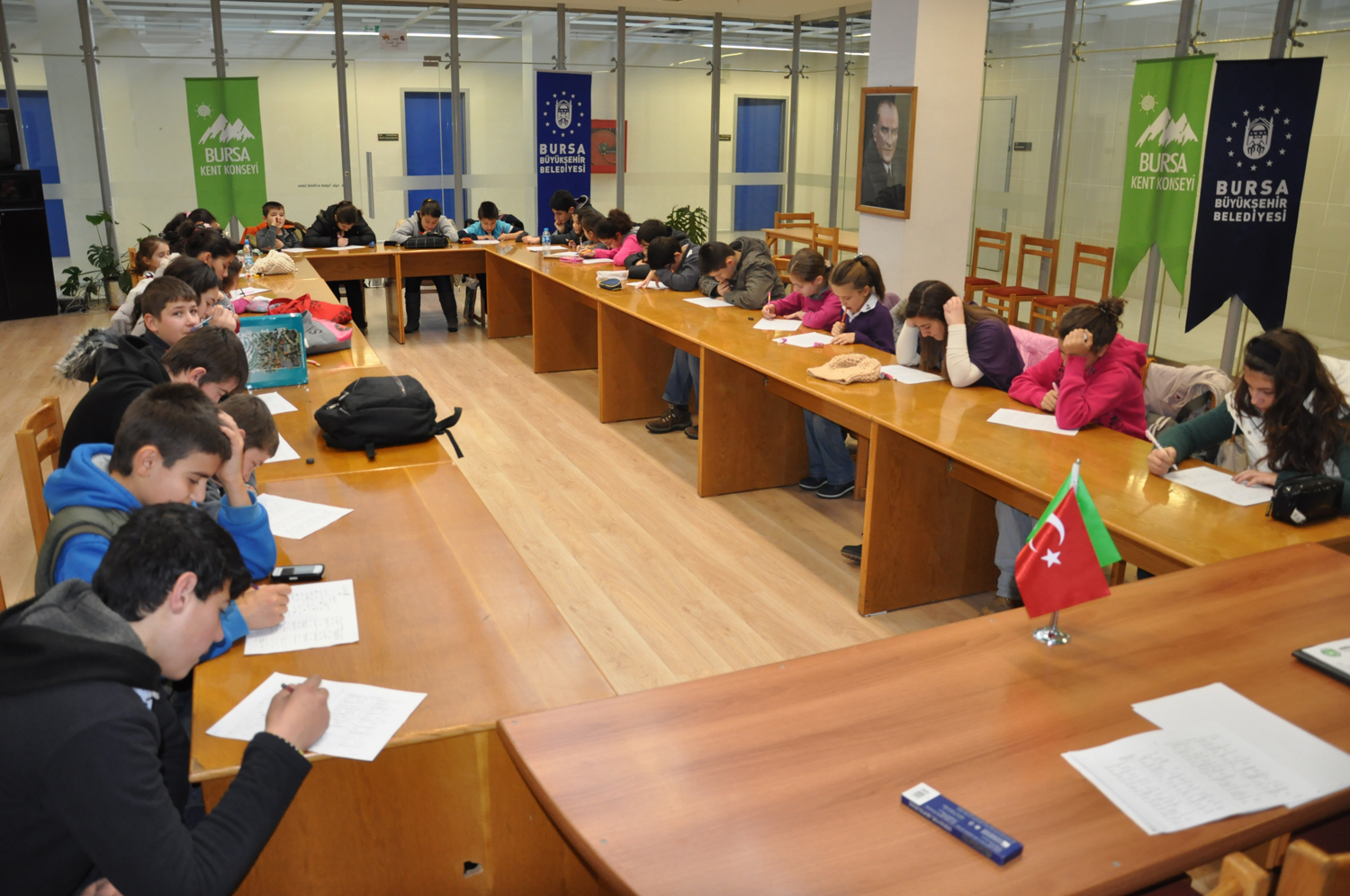 Farklı ülkelerden ve Bursa’nın dört bir yanından gelen çocuklar, Bursa Büyükşehir Belediyesi Başkan Vekili Şahin Biba ve meclis üyelerinin koltukla...