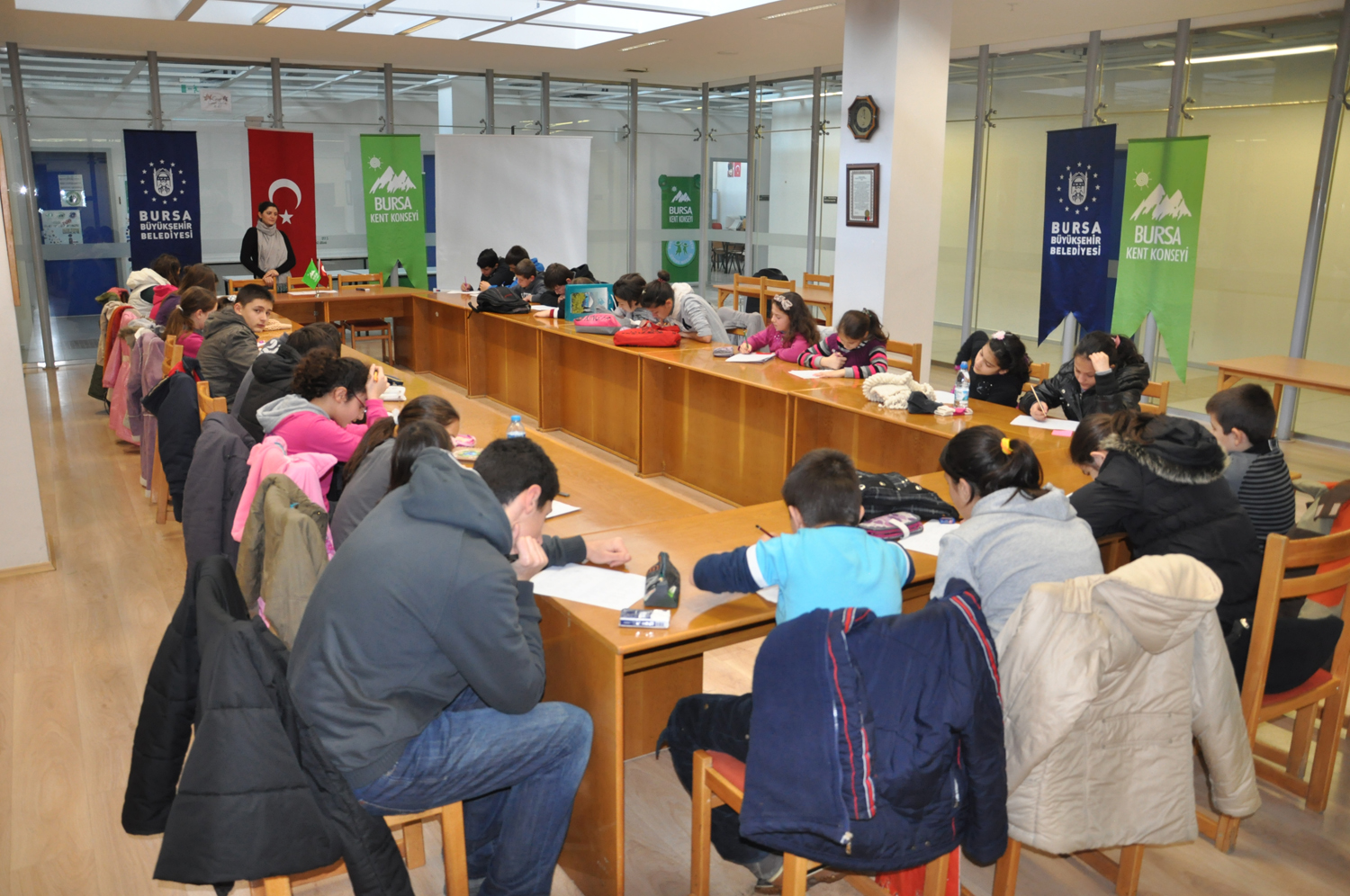 Bursa Kent Konseyi Çocuk Meclisi Eğitim Çalışma Grubu tarafından organize edilen çalışmalarda, çocuklar gönüllü öğretmenlerin destekleriyle İngilizce öğreniyor. Bursa Kent Konseyi ofislerinde gerçekleşen eğitimlerde, gönüllü öğretmen Meryem Kahveci ilköğretim ve lise öğrencilerine İngilizce dersleri veriyor.