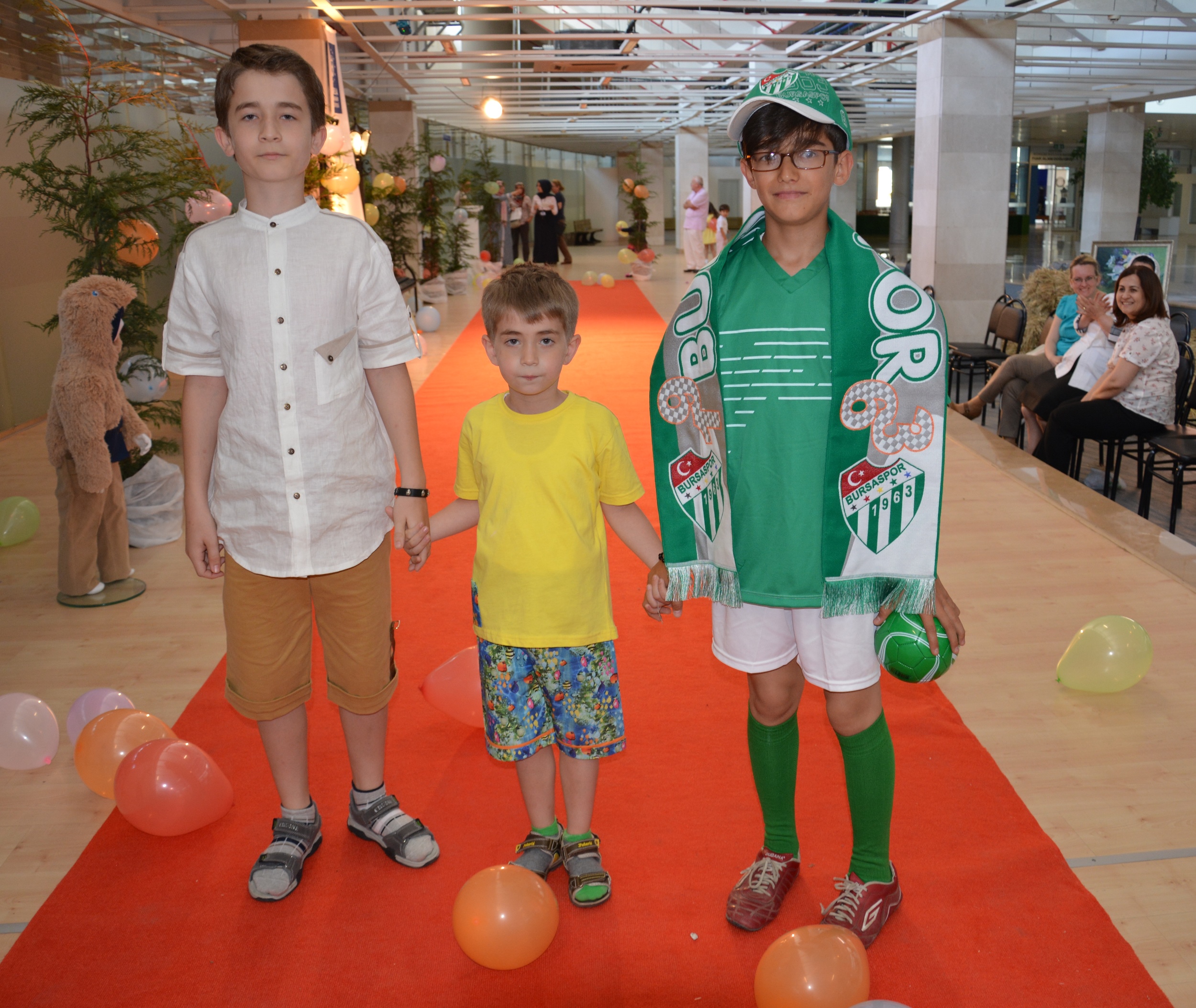 Farklı ülkelerden ve Bursa’nın dört bir yanından gelen çocuklar, Bursa Büyükşehir Belediyesi Başkan Vekili Şahin Biba ve meclis üyelerinin koltukla...