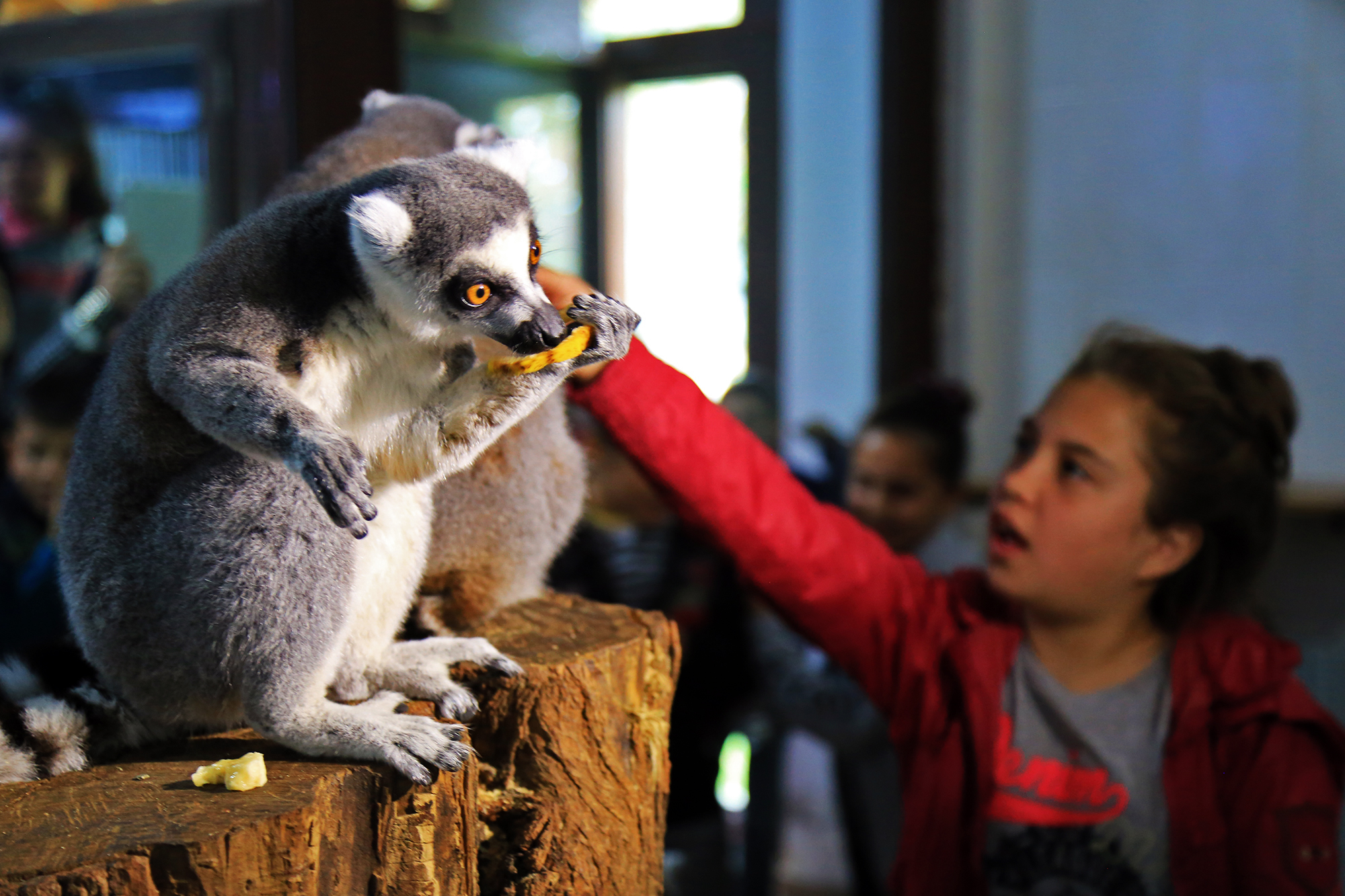 Konferansın ardından ilköğretim okulu öğrencileri, zürafa, maymun ve lemur platformlarına yiyecek bıraktı. Öğrencilerden bazıları, özel izinle zürafaların bulunduğu platforma girerek, dokunma mesafesinden müthiş bir deneyim yaşadı. Öğrencilerin yiyecek bırakmasının ardından bulundukları kafesten açığa bırakılan maymunlar, renkli görüntüler oluşturdu. Daha sonra lemurların bulunduğu alana geçen öğrenciler, hayvanları büyük bir dikkatle takip etti.