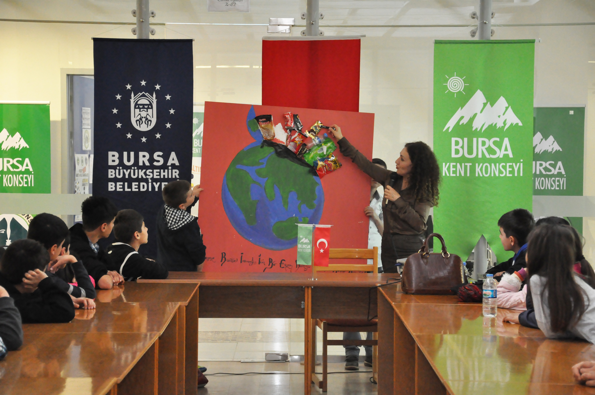 - BURSA KENT KONSEYİ VE BÜYÜKŞEHİR BELEDİYESİ ÇEVRE KORUMA VE KONTROL DAİRESİ BAŞKANLIĞI İŞBİRLİĞİYLE GERÇEKLEŞTİRİLEN TOPLANTIDA ÇOCUK MECLİSİ ÜYELERİNE ÇEVRE VE GERİ DÖNÜŞÜM ANLATILDI.