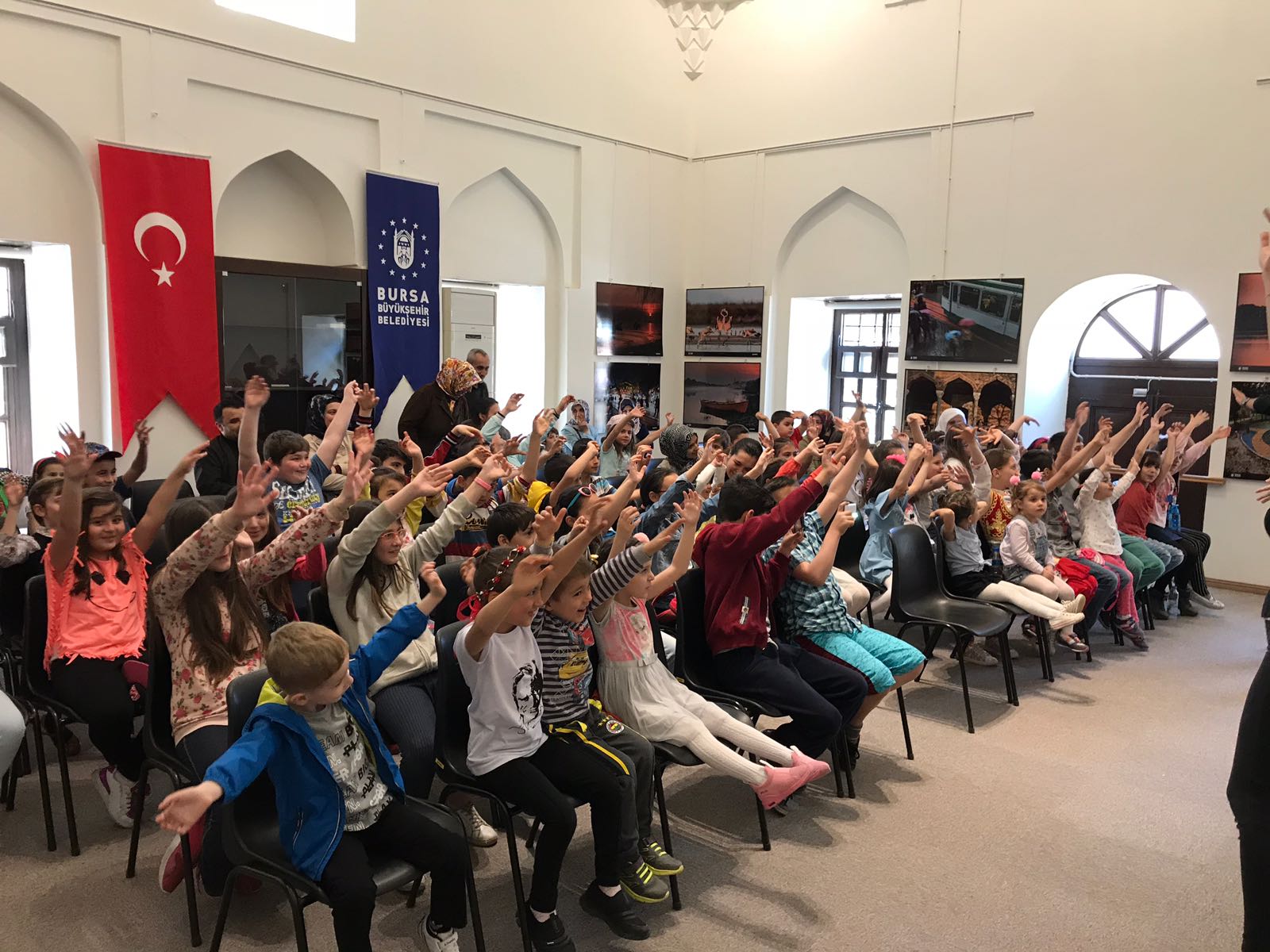 Farklı ülkelerden ve Bursa’nın dört bir yanından gelen çocuklar, Bursa Büyükşehir Belediyesi Başkan Vekili Şahin Biba ve meclis üyelerinin koltukla...