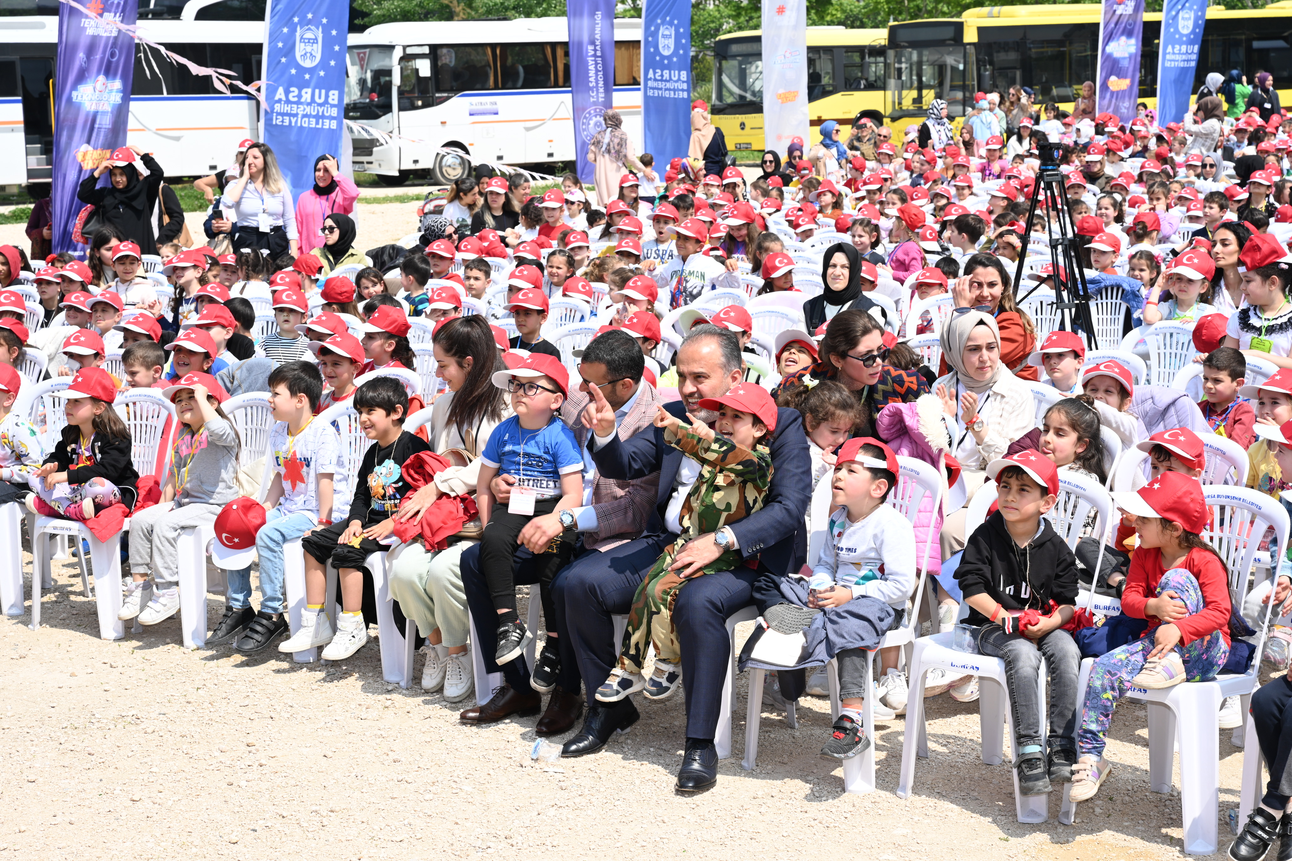 Çocukların heyecanına ortak olan Bursa Büyükşehir Belediye Başkanı Alinur Aktaş, 13 Mayıs’a kadar 17 ilçede toplam 36 ayrı gösteri yapılacağını hatırlattı. Alanı dolduran çocuklara seslenen Başkan Aktaş, “Geleceğin mühendisleri, mimarları, bilim insanları sizlersiniz. Yüksek teknoloji sizinle gelecek. Teknolojik Tayfa’yı sizlerle buluşturan Sanayi ve Teknoloji Bakanımız Mustafa Varank’a teşekkür ediyorum” dedi.