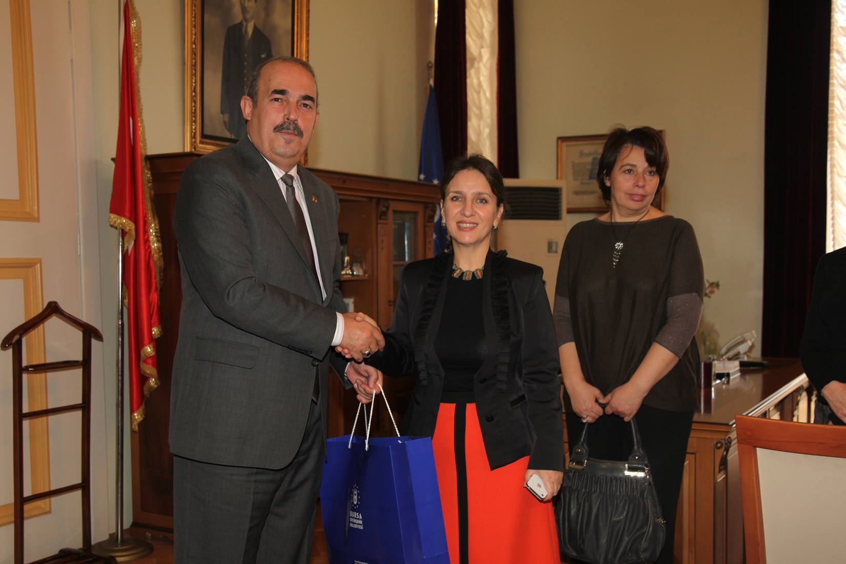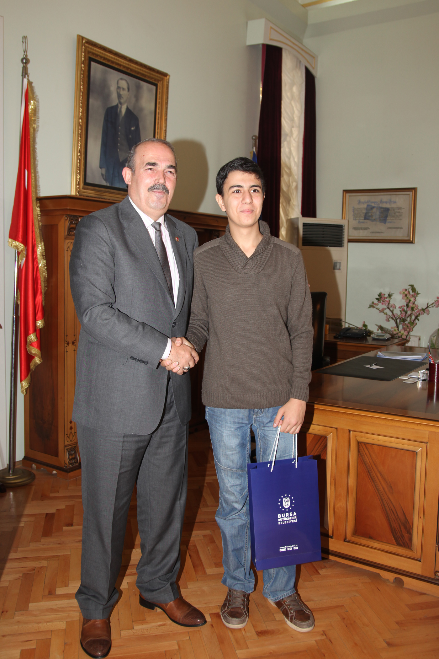 Ziyaretin ardından Şenocak, misafirlerine Bursa´yı simgeleyen çeşitli hediyeler verdi.