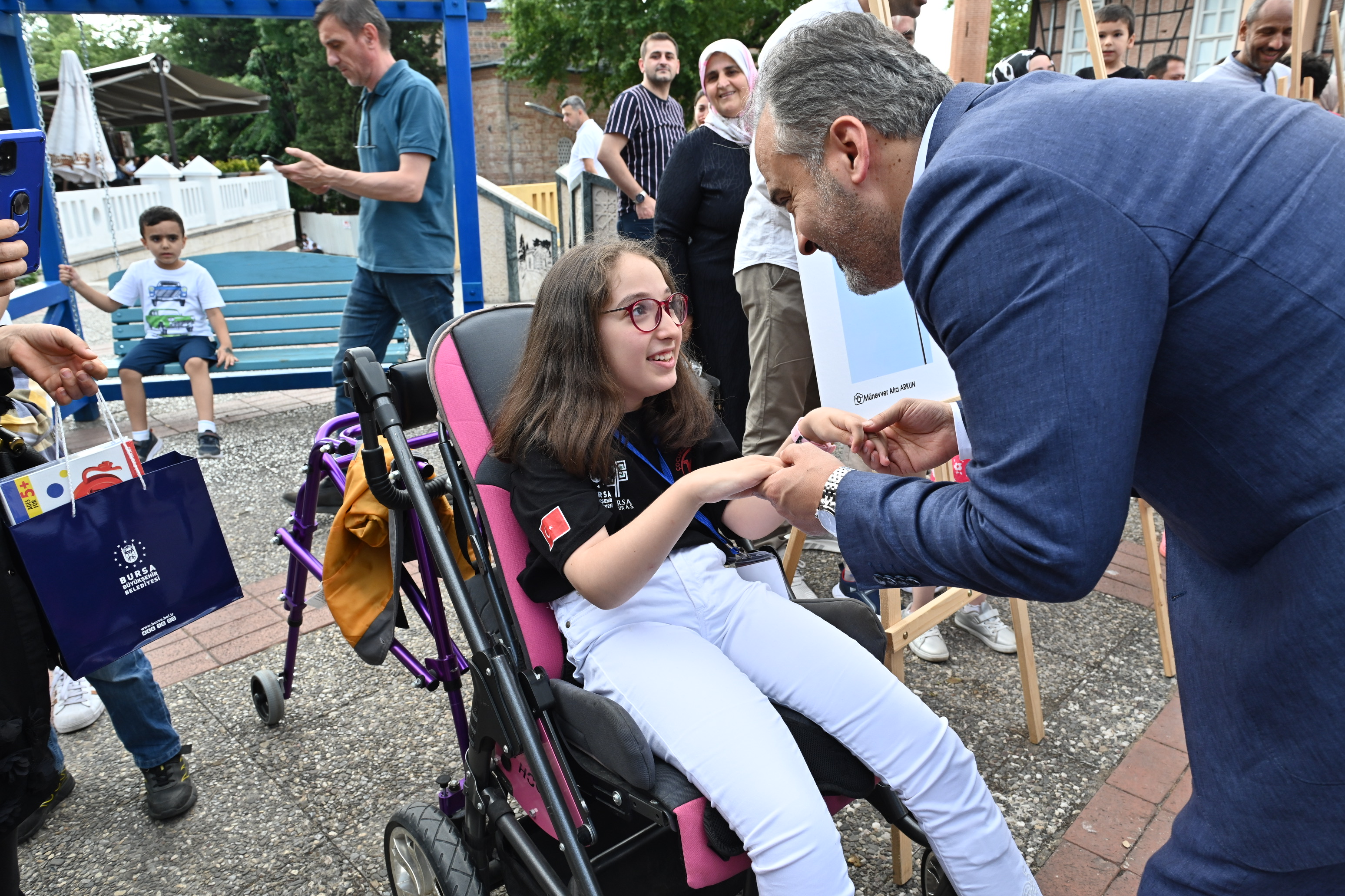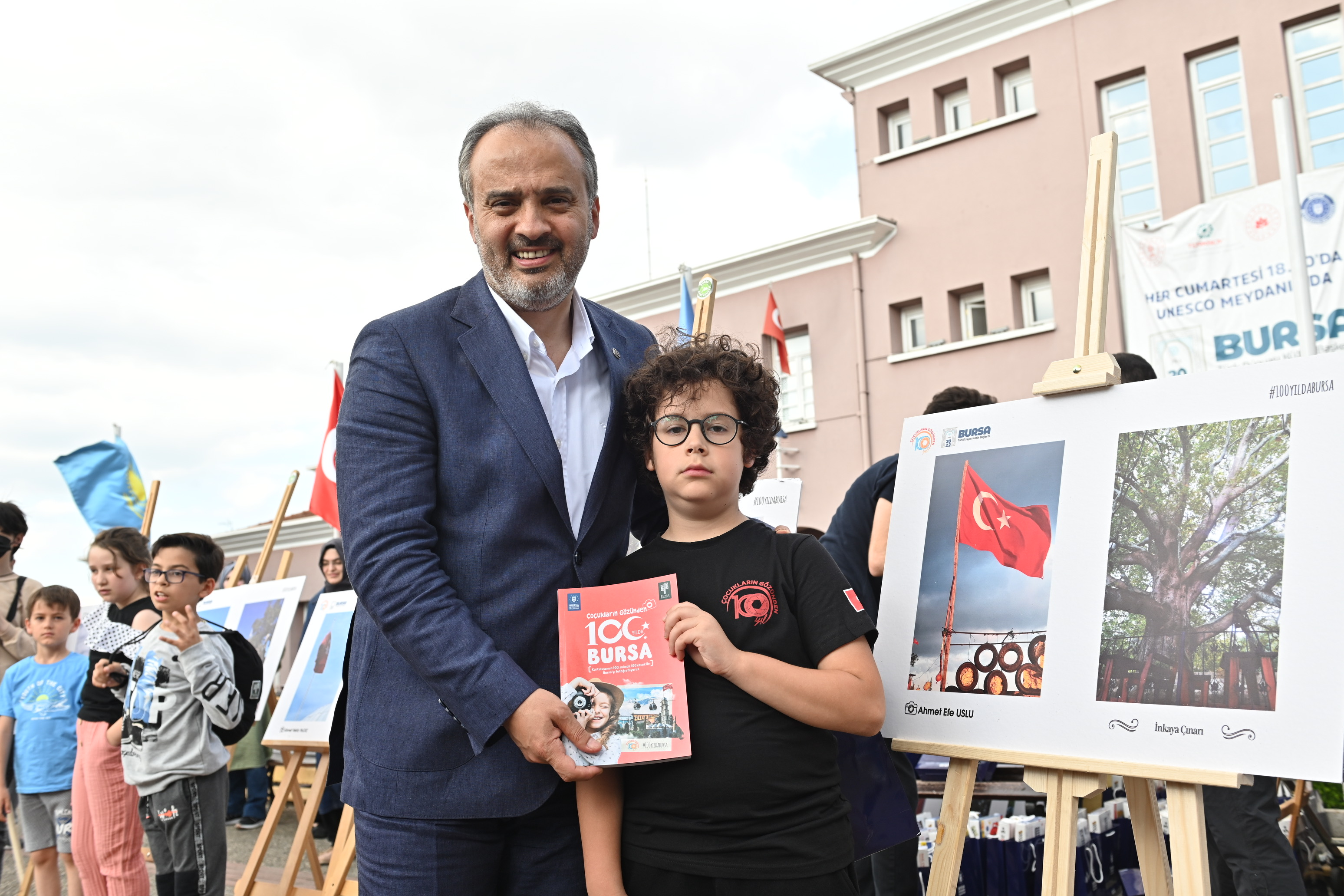 2022 Türk Dünyası Kültür Başkenti unvanına sahip olan Bursa’da birbirinden farklı kültürel etkinliklere imza atan Büyükşehir Belediyesi, geleceğimiz olan çocukların yaşadıkları şehri daha iyi tanıması ve sahip olunan değerleri yakından görmesi amacıyla geçtiğimiz aylarda ‘Çocukların Gözünden Bursa’ projesini başlatmıştı. Projeye katılan 100 minik, aileleriyle birlikte şehrin sahip olduğu tarihi mekanları gezerek, hem bilgilendi hem de kendi bakış açılarıyla fotoğraflar çekti. Toplam 100 tarihi mekanı ve şehrin farklı bölgelerindeki Türk bayraklarını çeken miniklerin fotoğrafları, Unesco Meydanı’nda hazırlanan sergiyle Bursalıların izlenimine sunuldu. Vatandaşların yoğun ilgi gösterdiği serginin açılışına katılan Bursa Büyükşehir Belediye Başkanı Alinur Aktaş, projede yer alan çocuklarla tek tek sohbet ederek onlara çeşitli hediyeler verdi. Çocuklara fotoğrafladıkları mekanlar hakkında çeşitli sorular soran Başkan Aktaş, projenin minikler üzerinde olumlu etkileri olduğunu söyledi. 100 çocuk tarafından çekilen fotoğraflar, Bursa Kültür AŞ tarafından kitaplaştırıldı ve böylelikle çalışmanın güzel bir anı olarak yaşatılmasına imkan sağlandı.