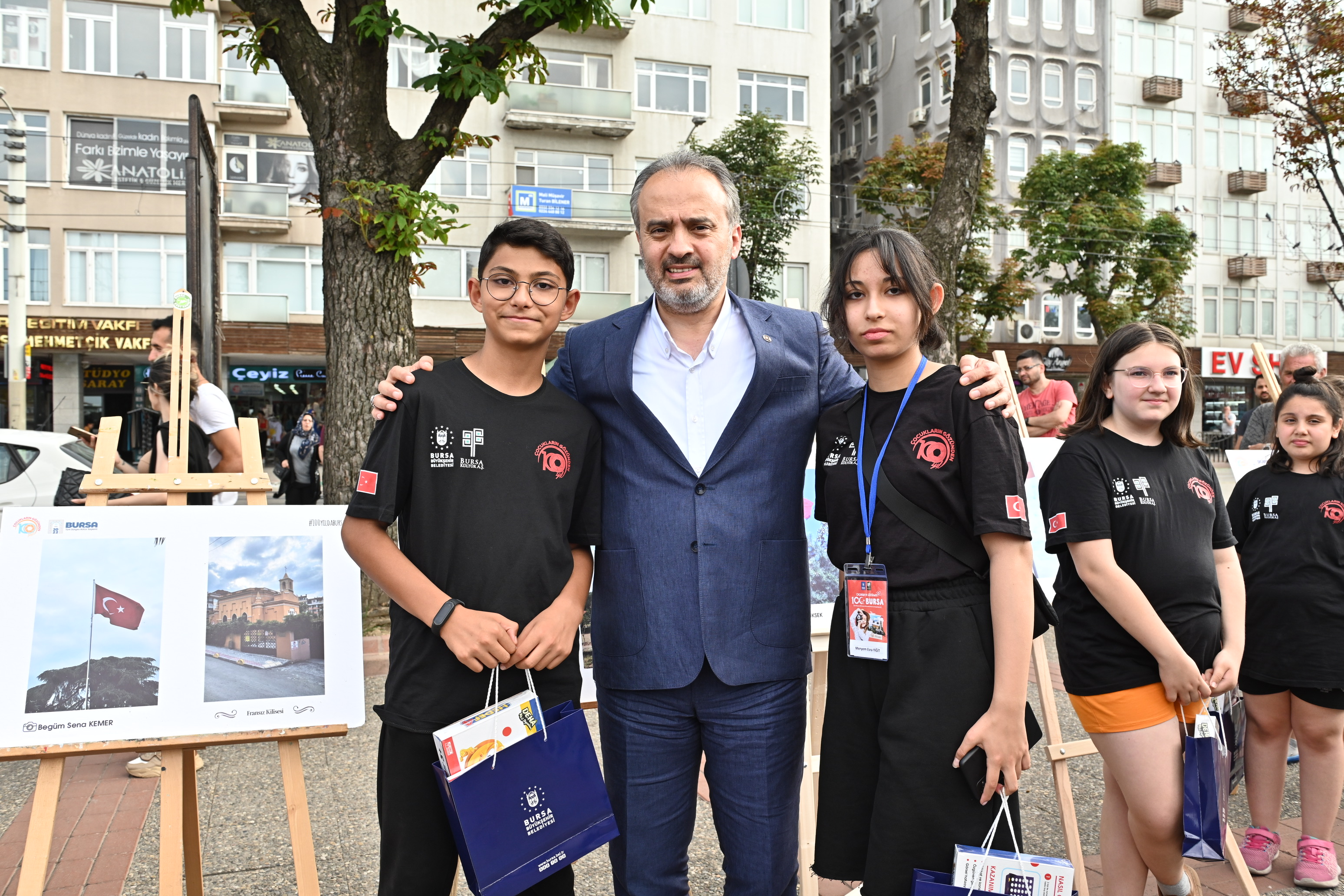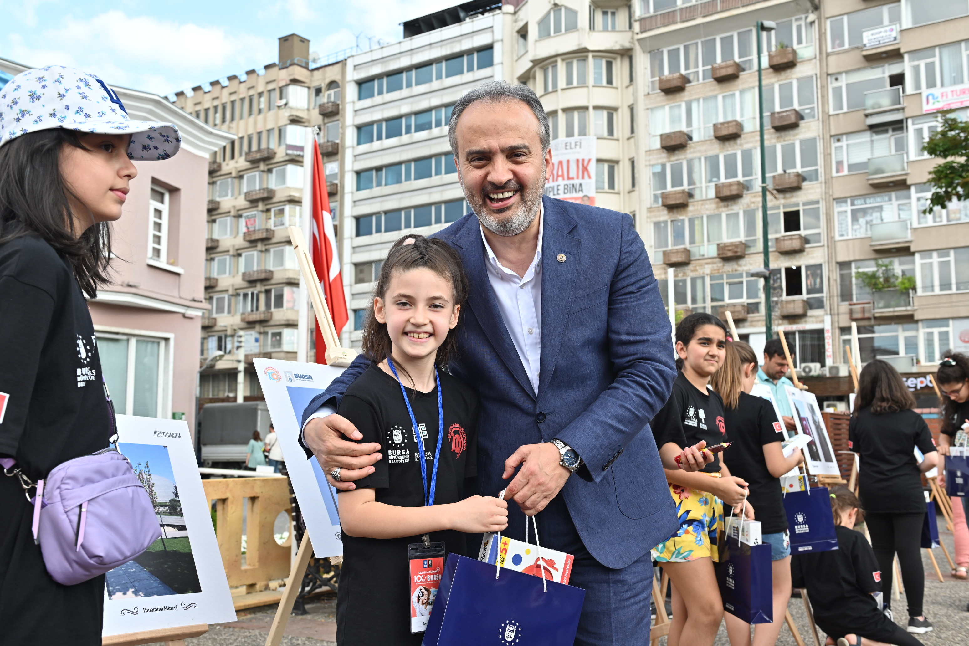 BURSA – Bursa Büyükşehir Belediyesi’nin düzenlediği ‘Çocukların Gözünden Bursa’ projesine katılan 100 çocuğun, ‘tarihi 100 mekanda ve şehrin farklı bölgelerindeki 100 Türk bayrağında’ çektiği fotoğraflardan oluşan sergi, Unesco Meydanı’nda Bursalıların beğenisine sunuldu.