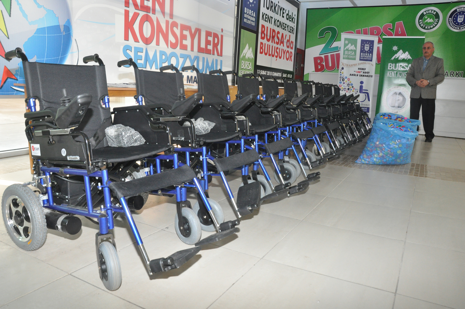 - BURSA KENT KONSEYİ ENGELLİLER MECLİSİ TARAFINDAN YÜRÜTÜLEN ‘ALTIN KAPAK SANDALYE’ PROJESİ KAPSAMINDA ALINAN 10 YENİ AKÜLÜ ARAÇ, SAHİPLERİNE TESLİME HAZIR.