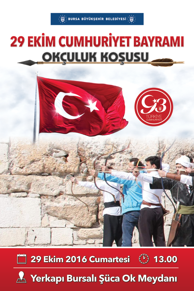 - ‘29 Ekim Cumhuriyet Bayramı Okçuluk Koşusu’, 29 Ekim Cumartesi günü saat 13.00’da Yerkapı Bursalı Şüca Ok Meydanı’nda gerçekleştirilecek.