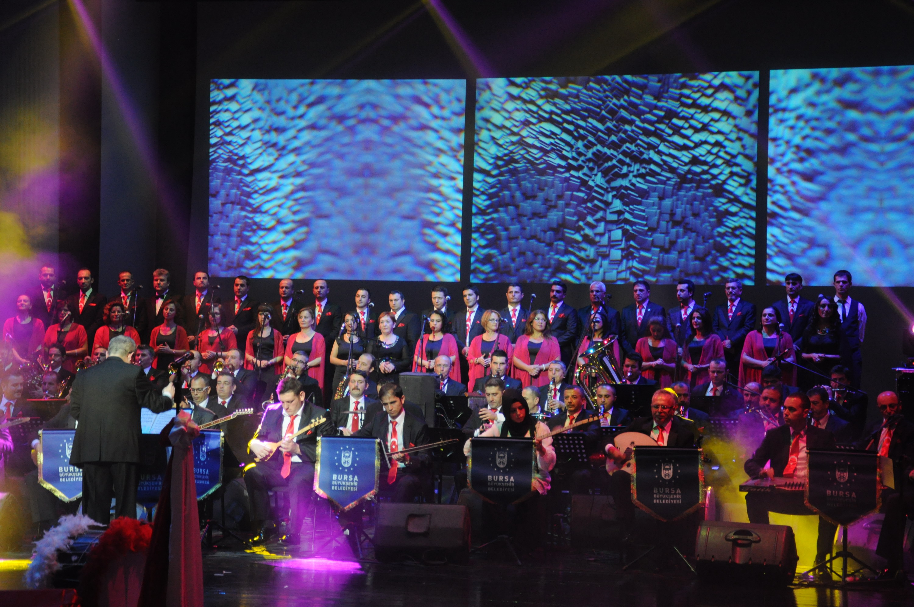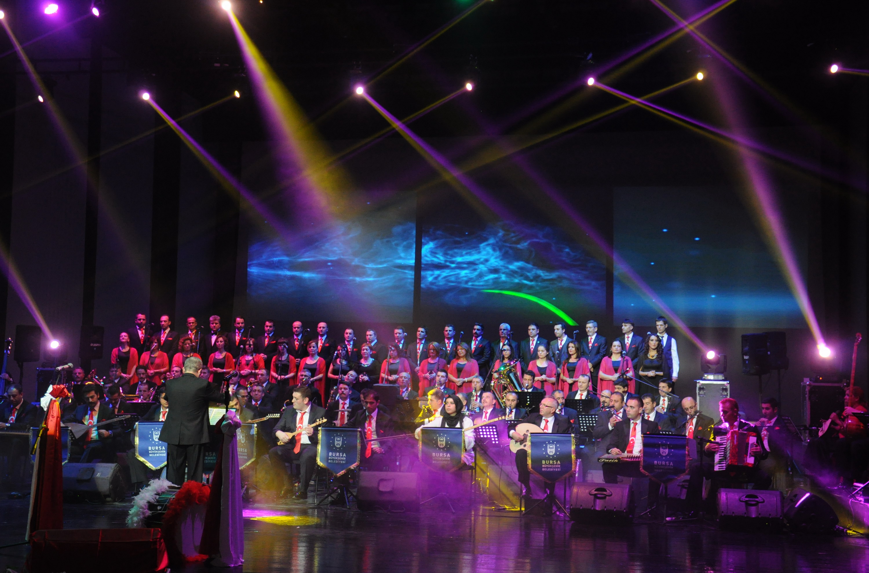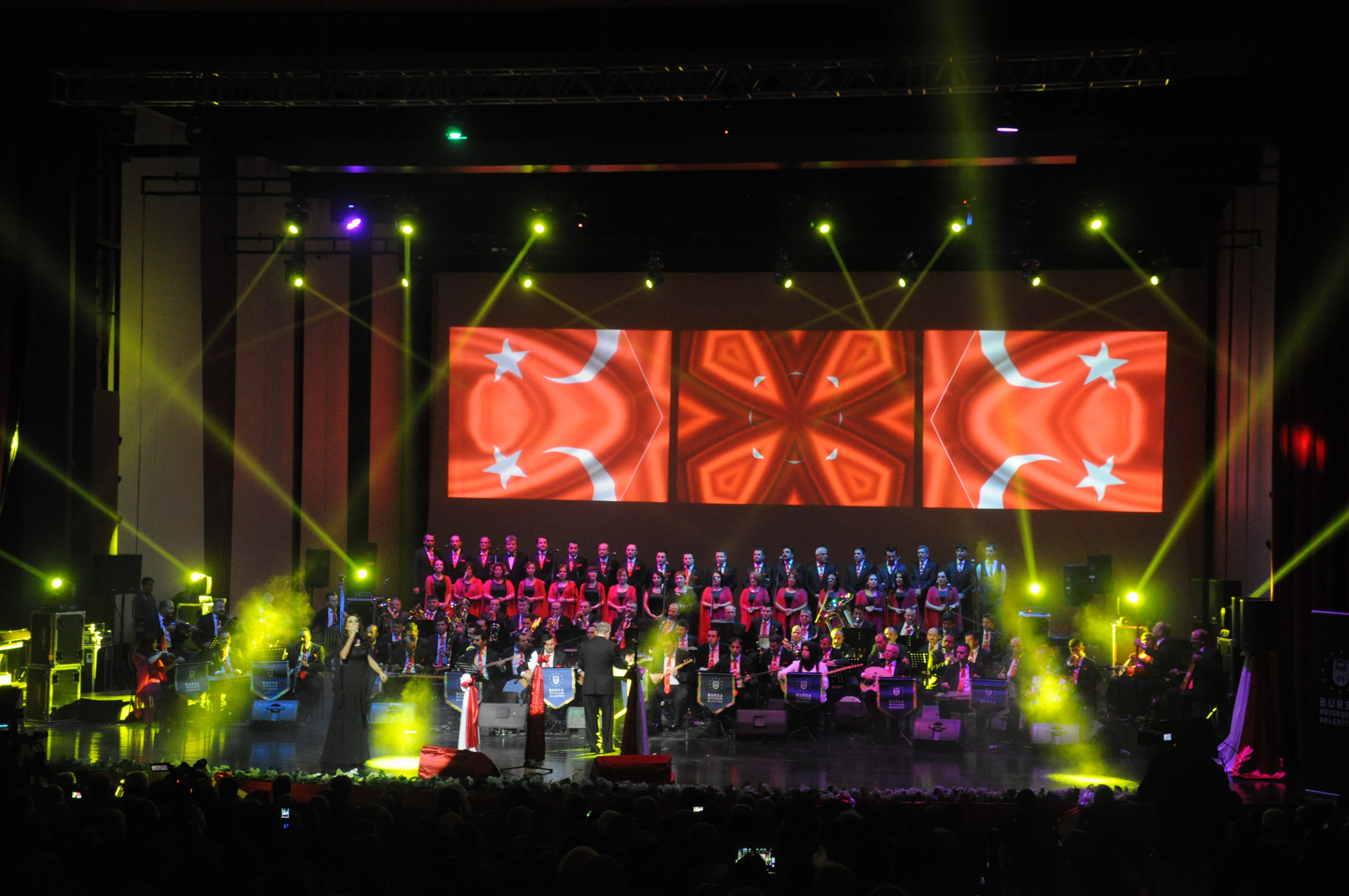 - BURSA BÜYÜKŞEHİR BELEDİYESİ ORKESTRA ŞUBE MÜDÜRLÜĞÜ TARAFINDAN CUMHURİYETİN 91. KURULUŞ YILDÖNÜMÜNÜ NEDENİYLE DÜZENLENEN KONSERDE, 150 KİLİŞİK DEV SANATÇI KADROSU BURSALILARA UNUTULMAZ BİR AKŞAM YAŞATTI.
