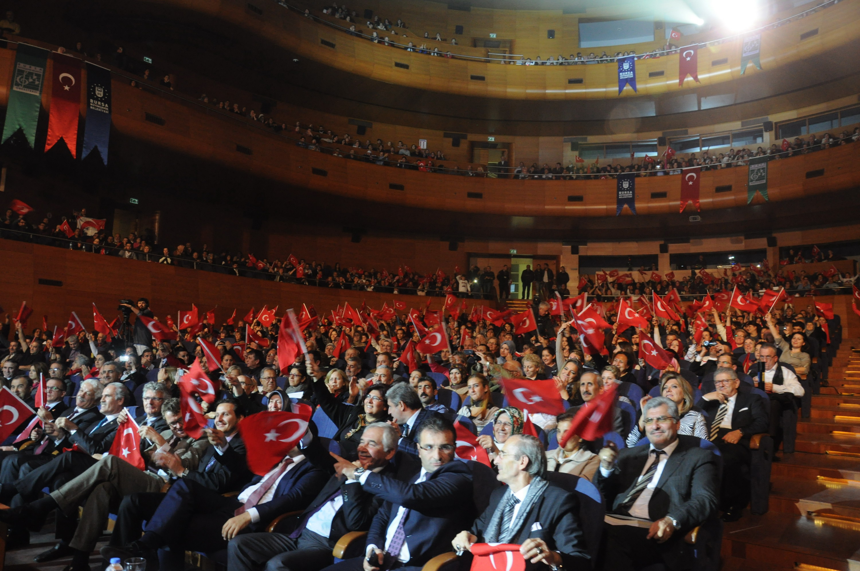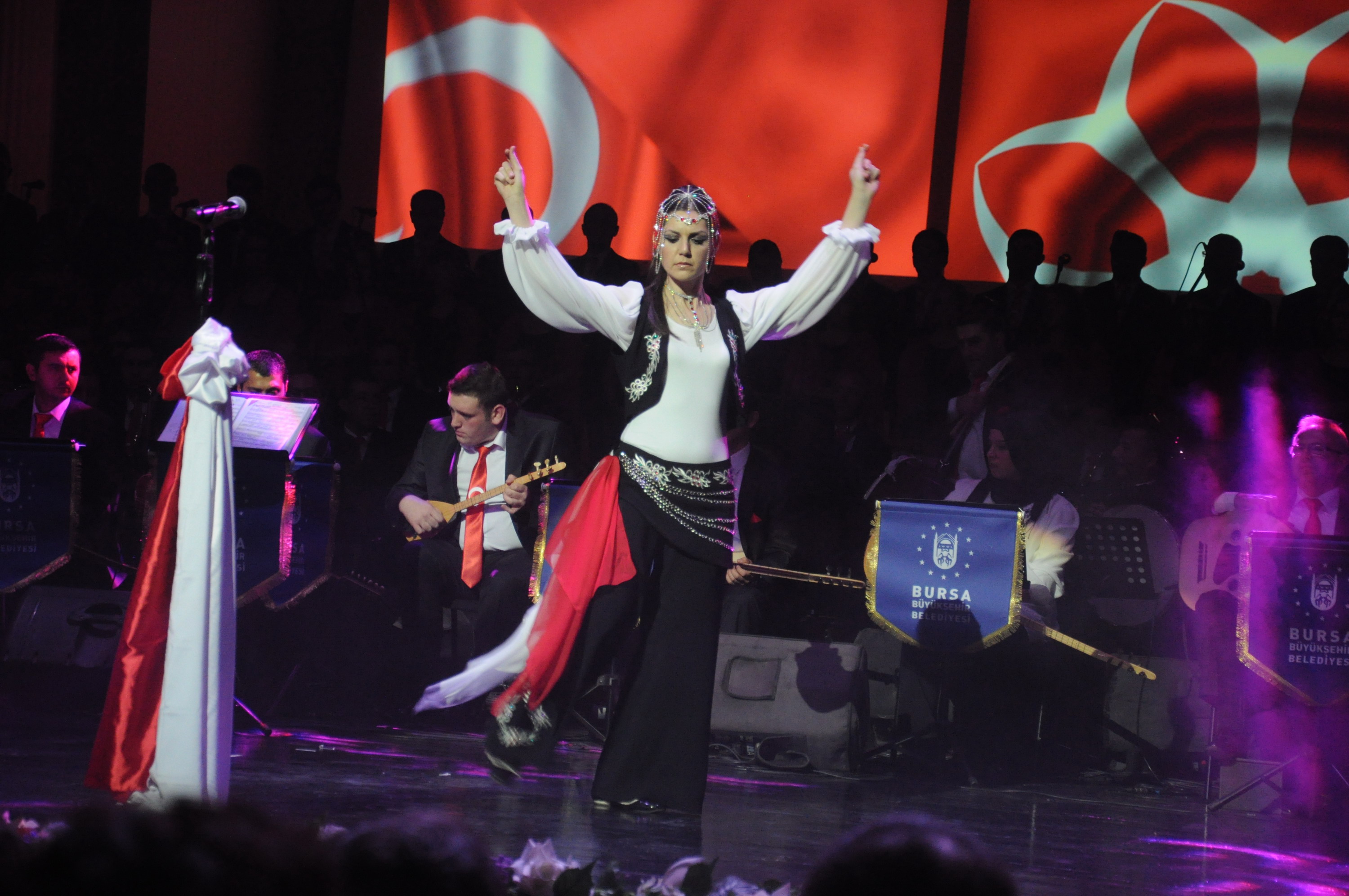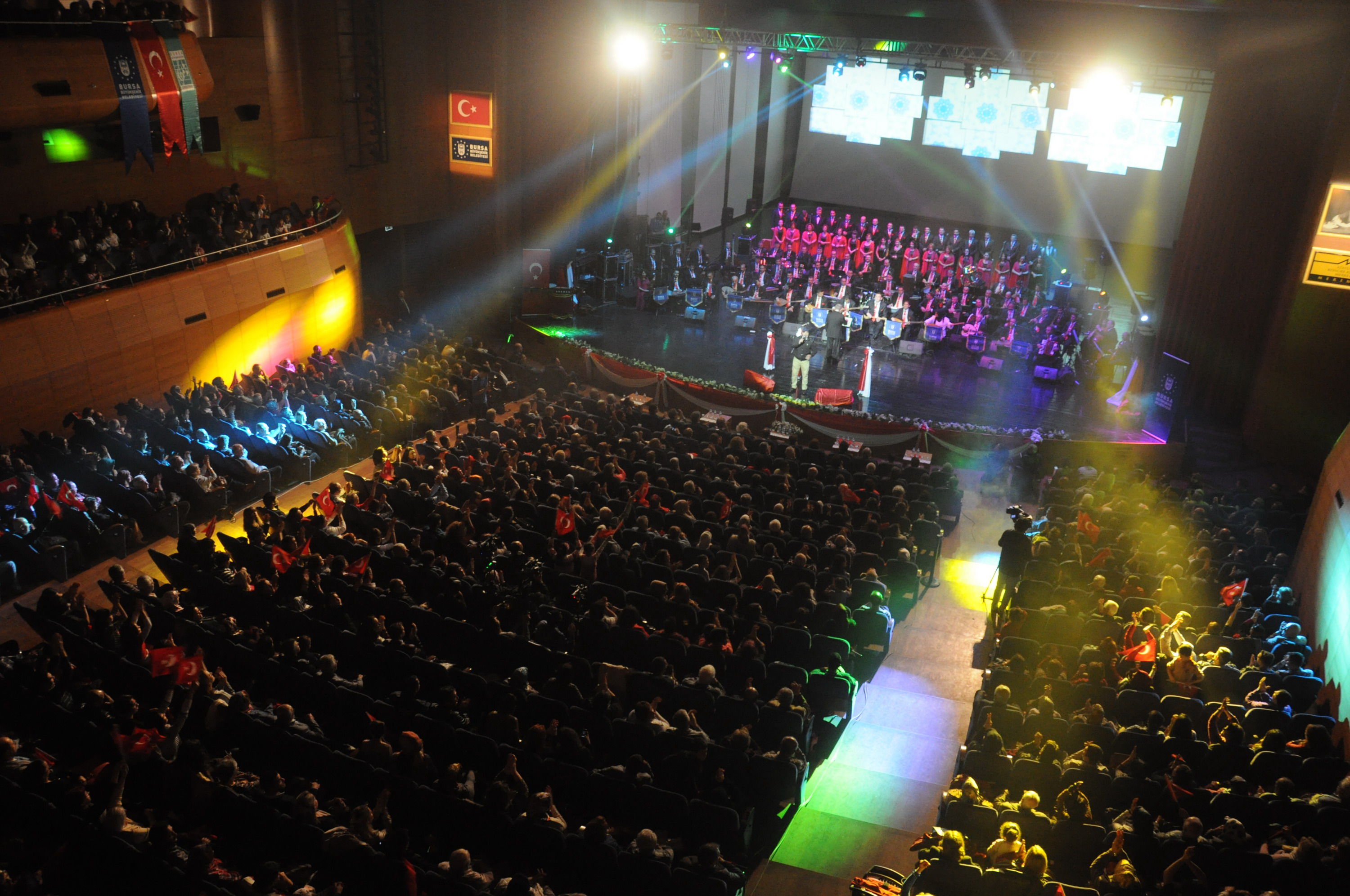 Bursa Büyükşehir Belediyesi Orkestra Şube Müdürlüğü tarafından düzenlenen ‘Cumhuriyet Bayramı Konseri’ ile Bursalılar Cumhuriyetin 91. Kuruluş yıldönümünü coşkuyla kutladı. Atatürk Kongre Kültür Merkezi (Merinos AKKM) Osmangazi Salonu’ndaki konsere, Bursalılar yoğun ilgi gösterdi. Saygı duruşu ve İstiklal Marşı’nın okunmasıyla başlayan konserde, ışık ve ses efektleriyle sahnelenen dans gösterisi izleyenlerden büyük alkış aldı. Daha sonra Orkestra Şube Müdürlüğü Türk Sanat Müziği ve Türk Halk Müziği bölümleri, Bursa Mehter Ekibi, Bando şefliği ve Çalgıcı Mektebi Roman Orkestrası’ndan oluşan 150 kişilik dev sanatçı kadrosu sahnede yerini aldı.
