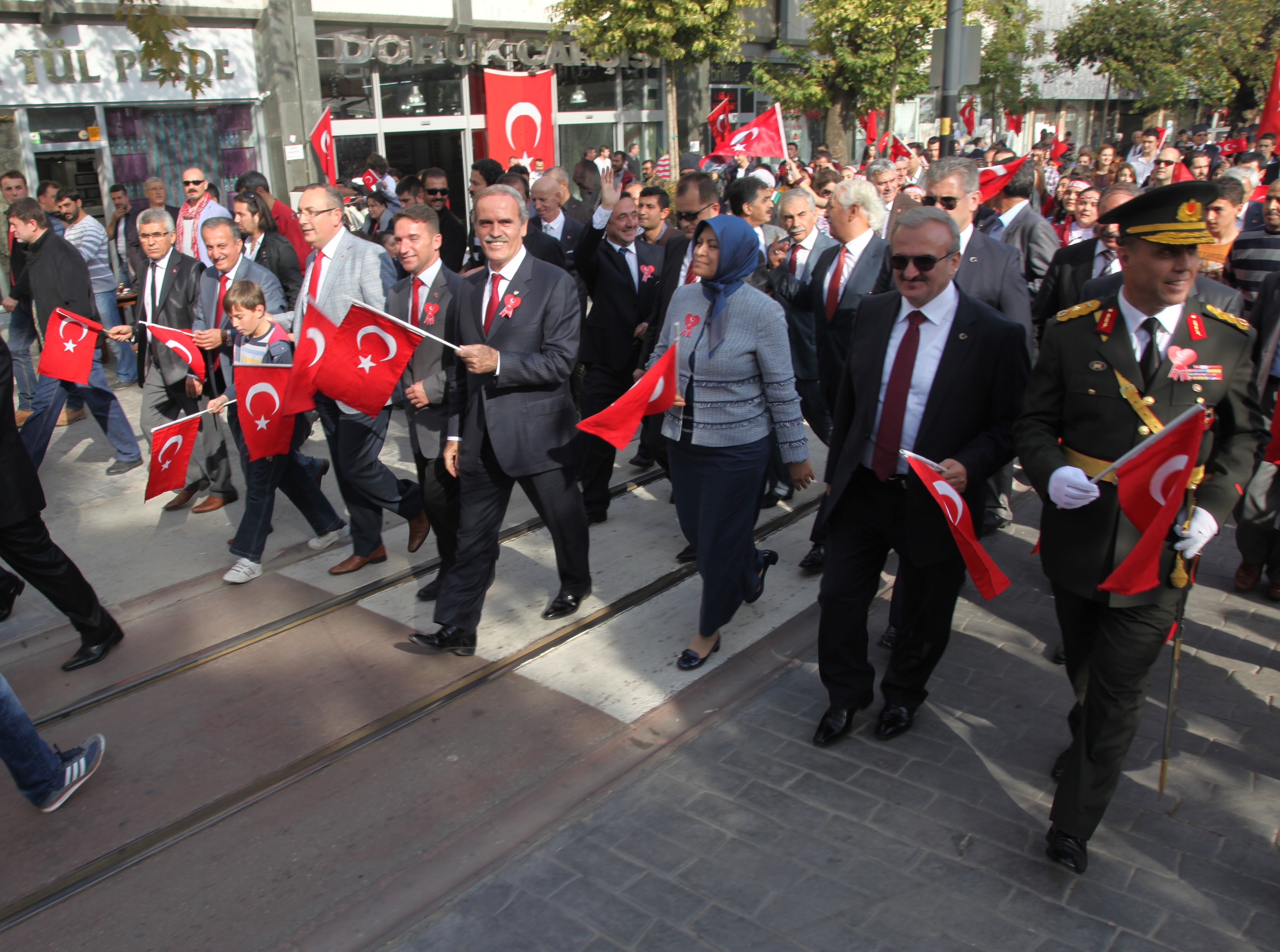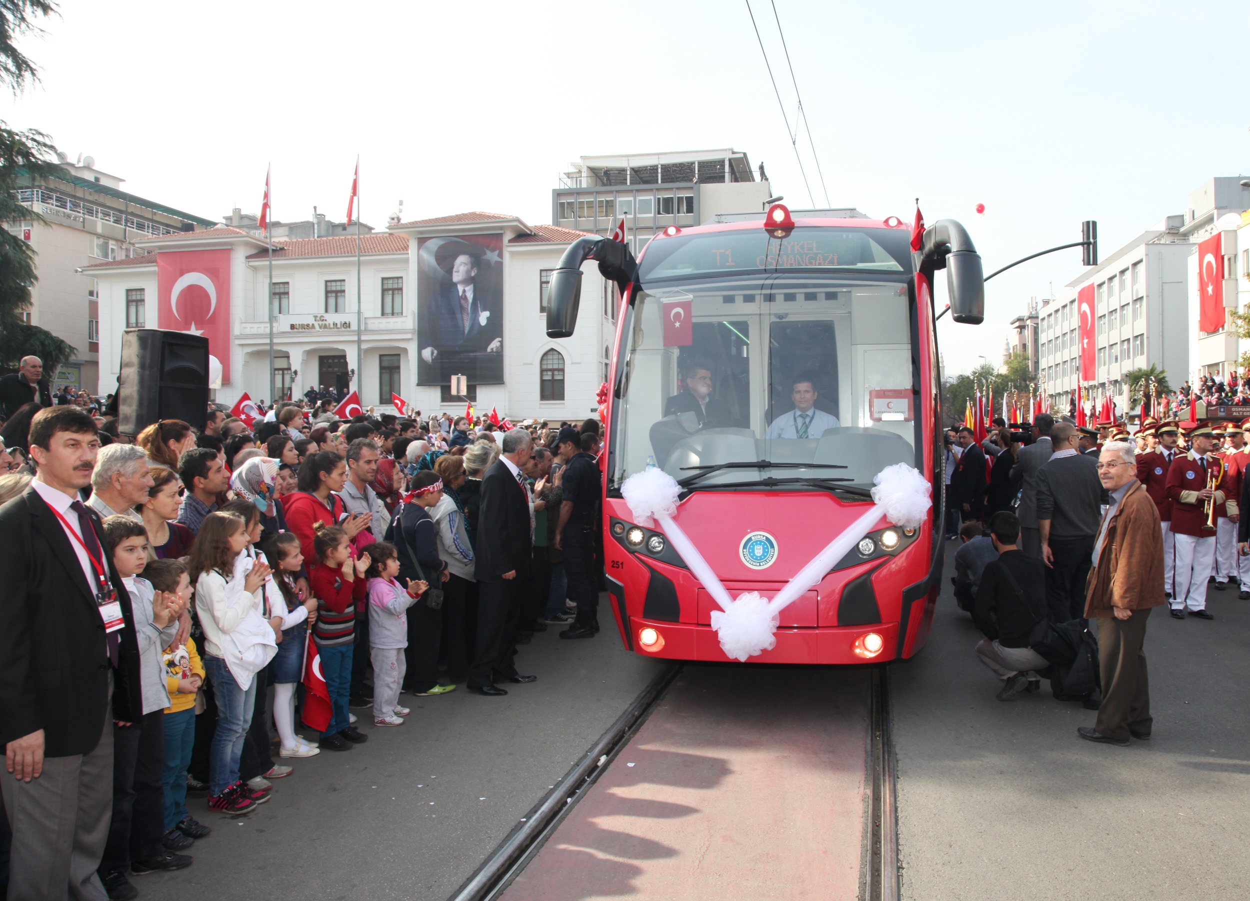 Öğrencilerin, günün anlam ve önemini belirten şiirler okuduğu törenlere vatandaşlar da yoğun ilgi gösterdi. Çocuklarını alan veliler, Türk Bayrakları eşliğinde töreni ilgiyle izledi. Halk oyunları gösterileriyle de renklenen 29 Ekim Cumhuriyet Bayramı kutlamalarının resmi geçit törenine de Bursa’da ilk kez Büyükşehir Belediyesi öncülüğünde üretimi yapılan yerli tramvay İpekböceği damgasını vurdu. Tramvayı ilgiyle izleyen bazı vatandaşlar, ipekböceğinin fotoğraflarını da çekti. Tören, Cumhuriyet Caddesi’nde gerçekleştirilen yürüyüşle sona erdi.