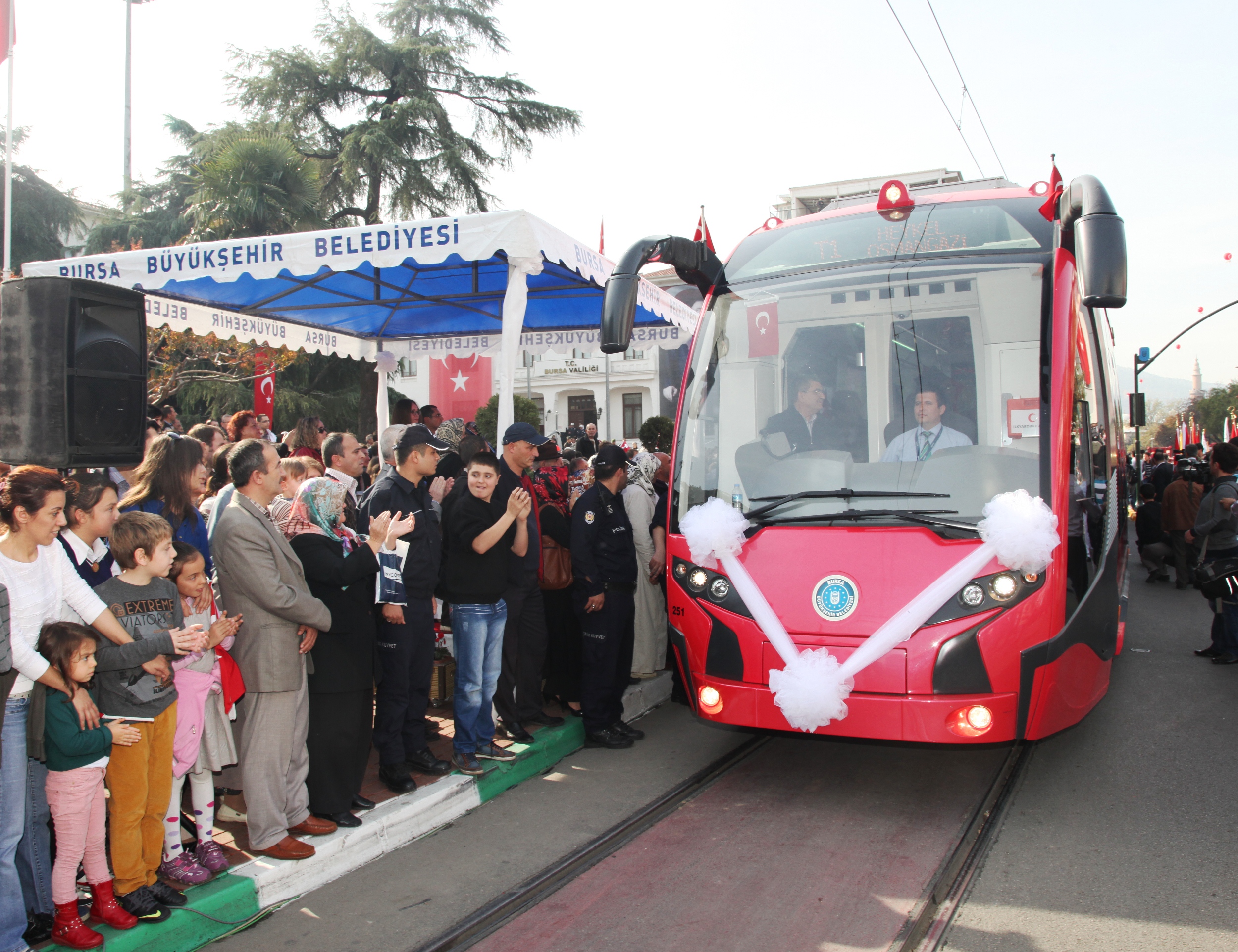 - Resmi geçit töreninde vatandaşlara tanıtılan ve Bursa’da ilk kez Büyükşehir Belediyesi öncülüğünde üretimi yapılan yerli tramvay ipekböceği de törene damgasını vurdu.
