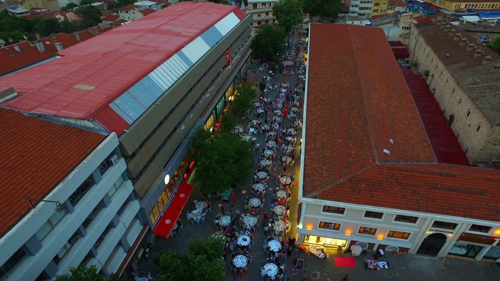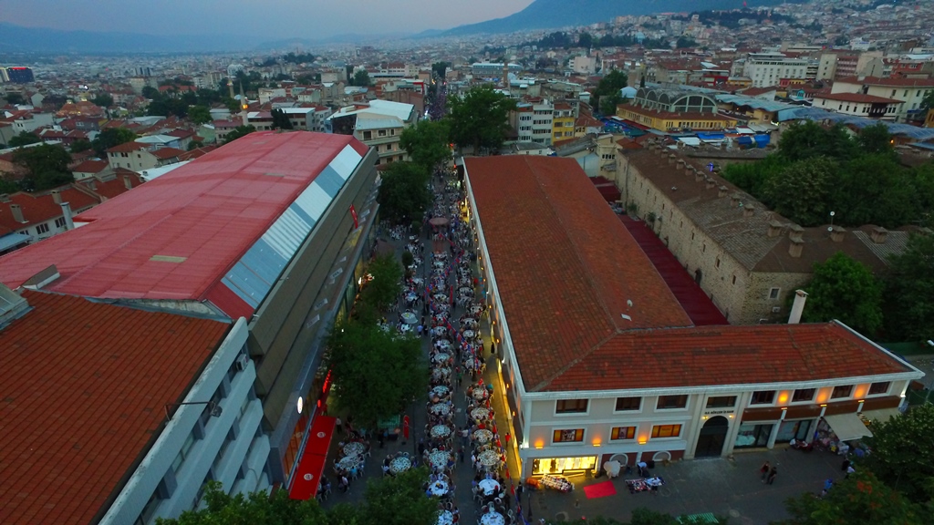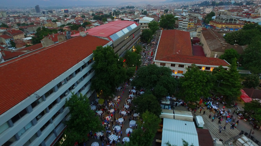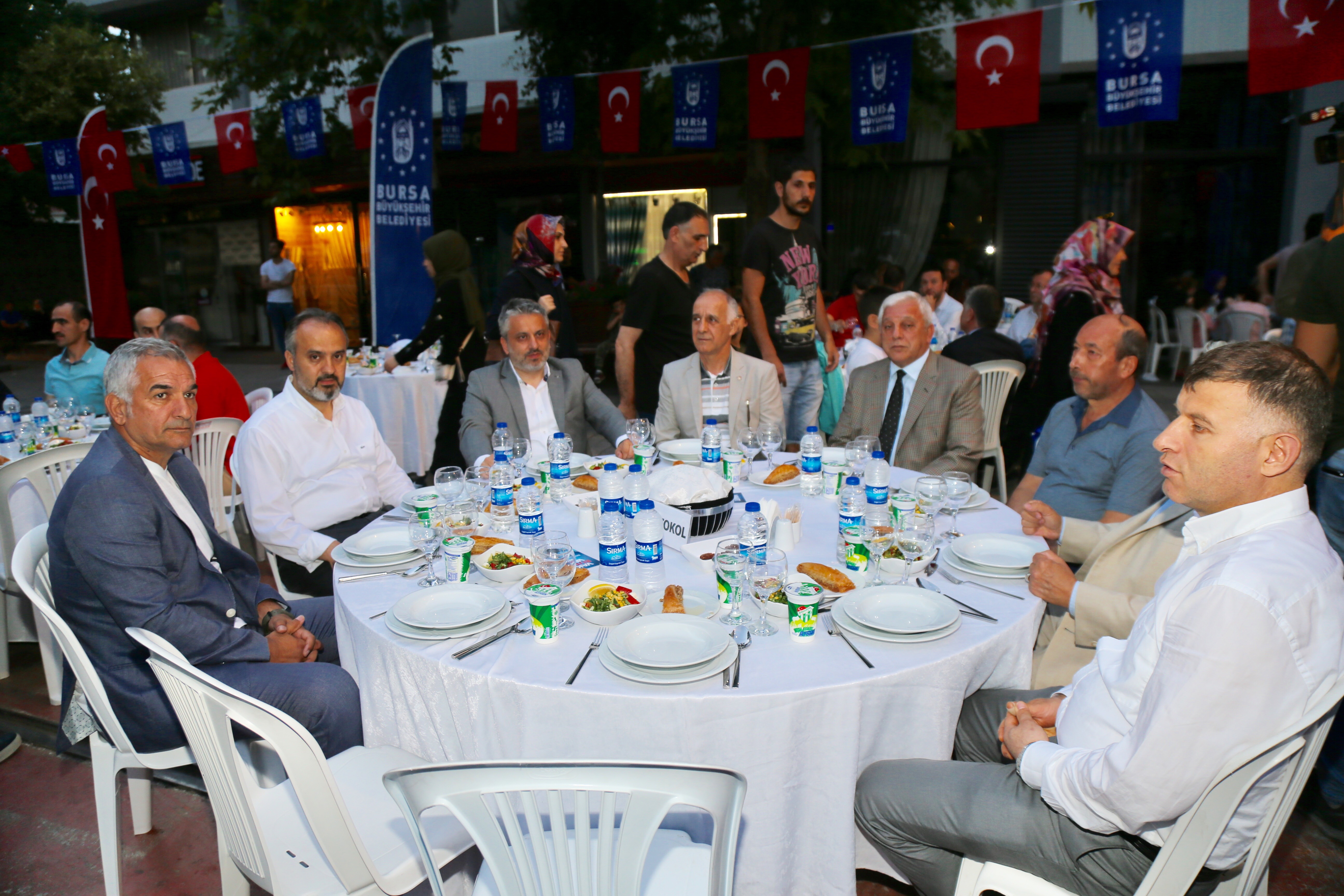 Büyükşehir Belediyesi’nin Müslümanlar arasında birlik ve beraberliği sağlamak üzere 17 ilçe ve 7 ülke ile Bursa’nın 9 ayrı noktasında her gün kurduğu iftar sofraları, Cumhuriyet Caddesi’nde de binlerce kişiyi ağırladı. Başbakan Yardımcısı Hakan Çavuşoğlu, Büyükşehir Belediye Başkanı Alinur Aktaş, AK Parti İl Başkanı Ayhan Salman ve Cumhuriyet Caddesi Sanayici ve İşadamları Derneği (CUMSİAD) Başkanı Ali Sait Adiloğlu’nun da katıldığı iftar yemeğinde, yaklaşık 10 bin vatandaş ezan vaktinin girmesiyle birlikte aynı mekanda oruçlarını açtı.