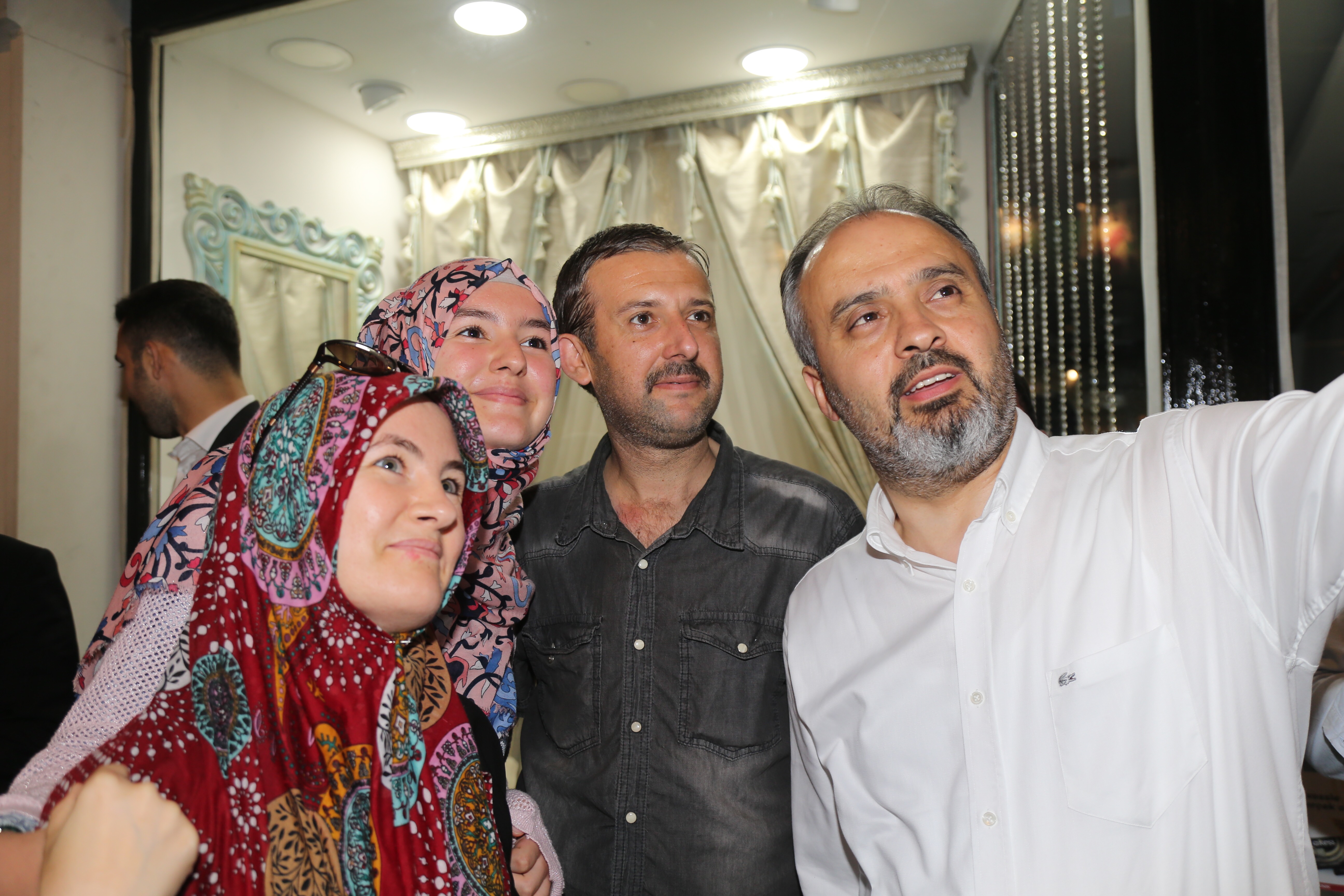 Büyükşehir Belediye Başkanı Alinur Aktaş, yemek öncesinde kurulan masaları tek tek dolaşarak, vatandaşlarla sohbet etti. Ardından kürsüye çıkan Başkan Aktaş, Bursalıların Kadir Gecesi ve yaklaşmakta olan ramazan bayramını tebrik etti. Bursa için çalıştıklarını, var olan sıkıntıları bertaraf etmek için gece gündüz gayret sarf ettiklerini belirten Başkan Aktaş, muvaffakiyet için hemşerilerinden destek ve dua istedi. Cumhuriyet Caddesi’nde geleneksel hale gelen iftar organizasyonunu bu yıl da devam ettirme noktasında çalışma arkadaşlarıyla ortak karar aldıklarını belirten Başkan Aktaş, “Artık bu organizasyon Bursa için adet olmuş. Dolayısıyla bize de devam ettirmek düşüyor. Allah, yaptığımız ibadetleri ve tuttuğumuz oruçları kabul eylesin. Bayram günlerine yaklaşıyoruz. Çarşı ve pazarımız maşallah çok hareketli. Tüm esnafımıza hayırlı kazançlar diliyorum” dedi.