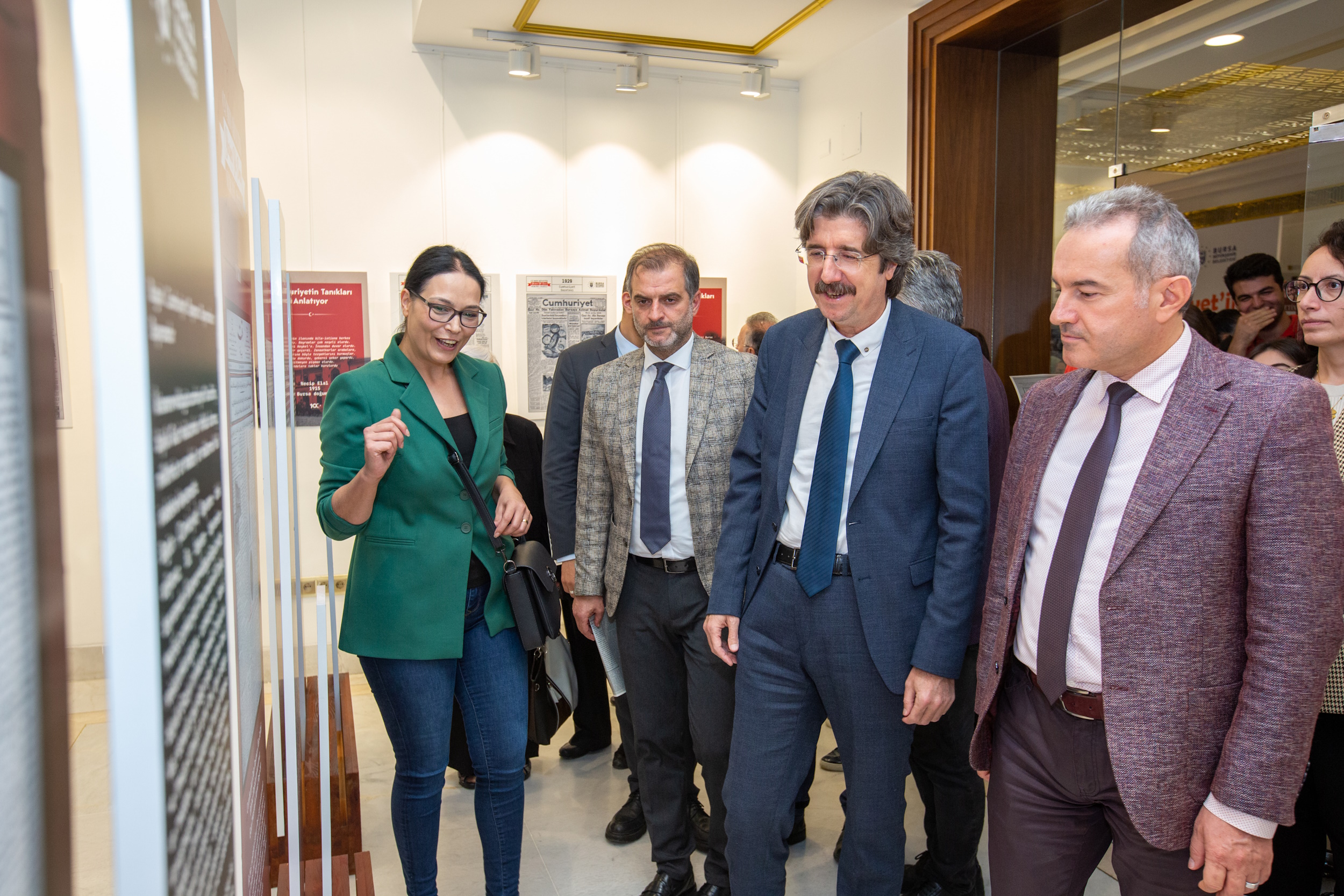 Bursa Uludağ Üniversitesi Rektörü Prof. Dr. Ferudun Yılmaz, Osmanlı bakiyesi olan Bursa’nın yüzüncü yılı idrak edilen cumhuriyetin de en önemli şehirlerinden birisi olduğunu söyledi. Hem politik hem de akademik kültüre olan katkısıyla Bursa’nın yüzyıllık cumhuriyetin taşıyıcı şehirlerinden olduğunu belirten Yılmaz, geleceğe taşınacak olan büyük maziyi hem şimdiki nesillere anlatmak hem de şehrin kültürel katkısını ortaya koymak amacıyla serginin hazırlandığını ifade etti. Sergide emeği geçen kutlayan Yılmaz, Cumhuriyetin nice yüzyıllara ilelebet payidar olması temenni etti.