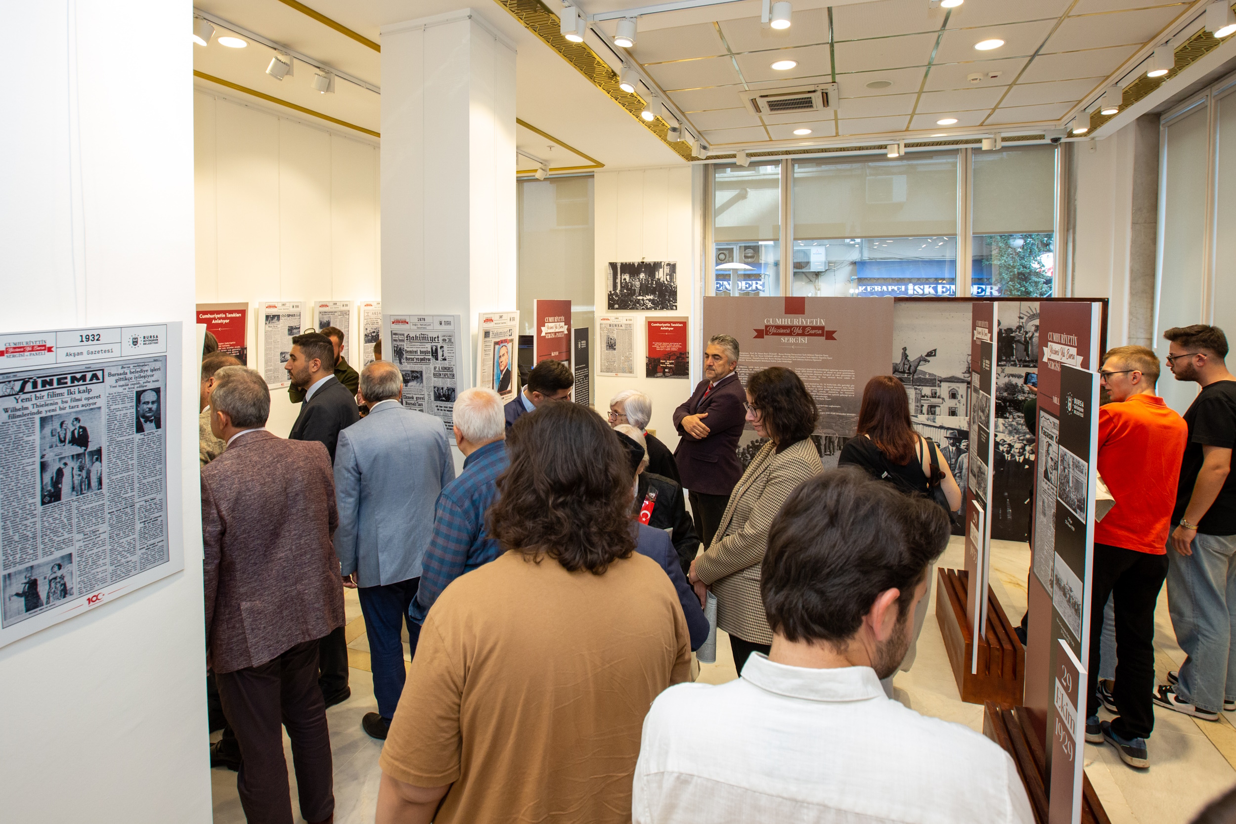 Cumhuriyet’in ilanının 100’üncü yılını Bursa’da birbirinden farklı etkinliklerle kutlayan Bursa Büyükşehir Belediyesi, Cumhuriyet’in coşkusunu tüm şehre yayacak programlar düzenliyor. Bu kapsamda Tayyare Kültür Merkezi’nde hazırlanan iki farklı sergi, düzenlenen törenle izlenime açıldı. Bursa Büyükşehir Belediyesi ve Bursa Uludağ Üniversitesi tarafından hazırlanan ‘Cumhuriyet’in Yüzüncü Yılı Bursa Sergisi’, değerli mirasın ve Cumhuriyet ideallerinin farkındalığını aşılamayı hedefliyor. 1923-2000 dönemine ait ulusal ve yerel gazetelerden kesitler, arşivlerden derlenen fotoğraf ve video görüntüleri ile Cumhuriyet'in kuruluş ve inşa sürecini Bursa odaklı bir perspektiften sunan sergi, toplam 42 gazetenin o dönemi anlatan görsellerinden oluşuyor. Bursa Büyükşehir Belediyesi ve Sırameşeler Çocuk Evleri Sitesi Müdürlüğü, Hasan Öztimur Huzurevi ve Büyükşehir Belediyesi Huzurevi sakinlerinin çalışmalarından oluşan ‘7’de 77’ye Cumhuriyet Sergisi’ ise, gencinden yaşlısına kadar tüm kesimlerin Cumhuriyet’e bakışını anlatıyor.