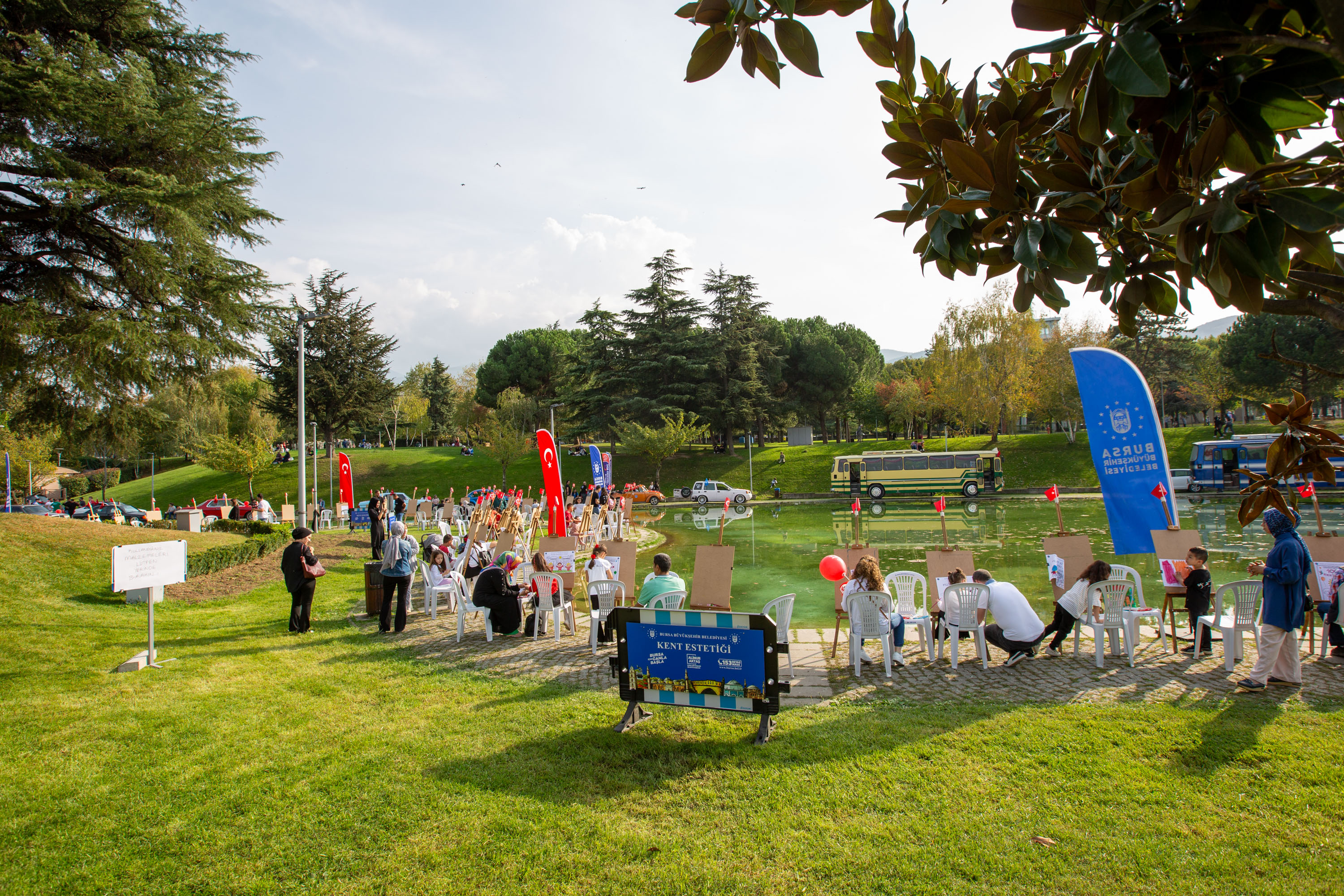Cumhuriyet’in 100’üncü yıl gururunun toplumun tüm kesimlerinde yaşatılması için birbirinden farklı etkinliklere imza atan Büyükşehir Belediyesi, 100’üncü yıla özel açık hava resim yapma etkinliği düzenlendi. Merinos Park’ta yapılan etkinlikte göl çevresi adeta sanat galerisine döndü. Kent Estetiği Şube Müdürlüğü tarafından düzenlenen etkinlikte, 100’üncü yıla özel olarak göl çevresine 100 adet tuval yerleştirildi. Toplam 1800 resim boyanmak üzere küçük ressamlara dağıtılırken, etkinlikte 100 adet pastel boya, 100 adet de kuru boya seti kullanıldı.