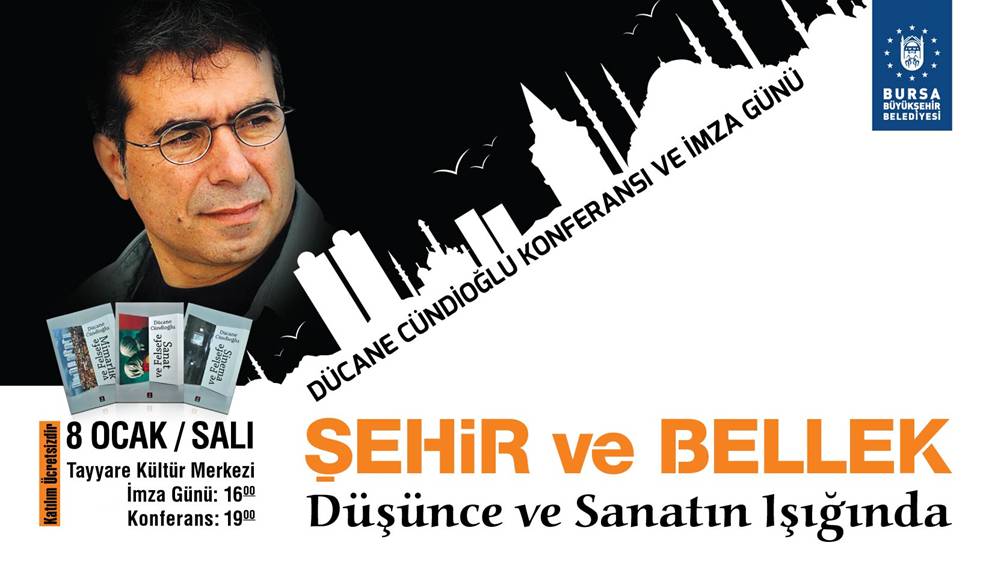 Bursa’ya yatırımlarıyla değer katan Büyükşehir Belediyesi, kentin kültürel ve sosyal yaşamına da ışık tutmaya devam ediyor. Büyükşehir Belediyesi’nin kültürel faaliyetleri kapsamında Bursa İmam Hatip Liseleri Mezunları ve Mensupları Derneği (BİHMED) işbirliğiyle Tayyare Kültür Merkezi’nde gerçekleştirilecek olan ‘Düşünce ve Sanatın Işığında Şehir ve Bellek’ konulu konferansa ünlü yazar ve düşünür Dücane Cündioğlu konuşmacı olarak katılacak.