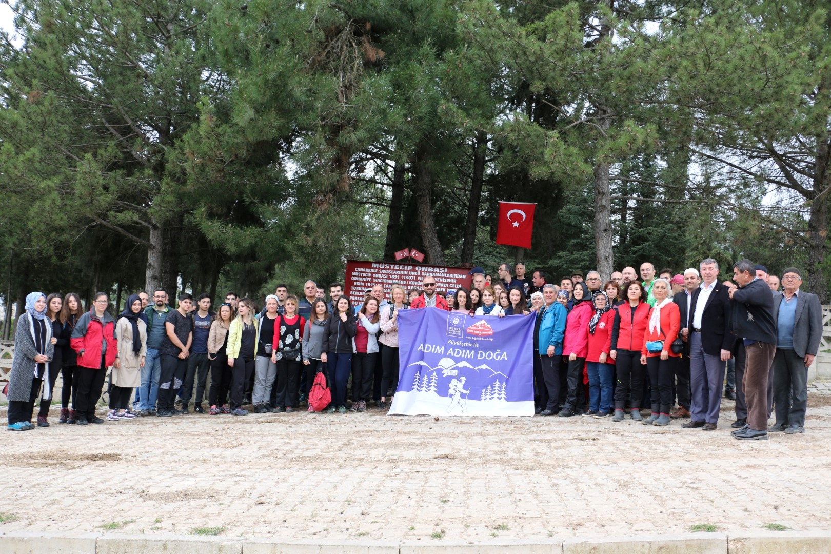 BURSA - 18 Mart Şehitleri Anma Günü ve Çanakkale Zaferi’nin 103. yıldönümü, Türkiye’nin çeşitli illerinde olduğu gibi Bursa’da bir takım etkinliklerle kutlanıyor. Büyükşehir Belediyesi ile Dağcılık İl Federasyonu’nun ortaklaşa düzenlediği ‘Büyükşehir ile Adım Adım Doğa’ projesi kapsamında bir araya gelen 75 dağ sporcusu, 12 kilometrelik parkuru yürüyerek, Çanakkale Savaşları sırasında Fransız denizaltısını vurma başarısını gösteren Müstecip Onbaşı’nın kabri başında dua etti.