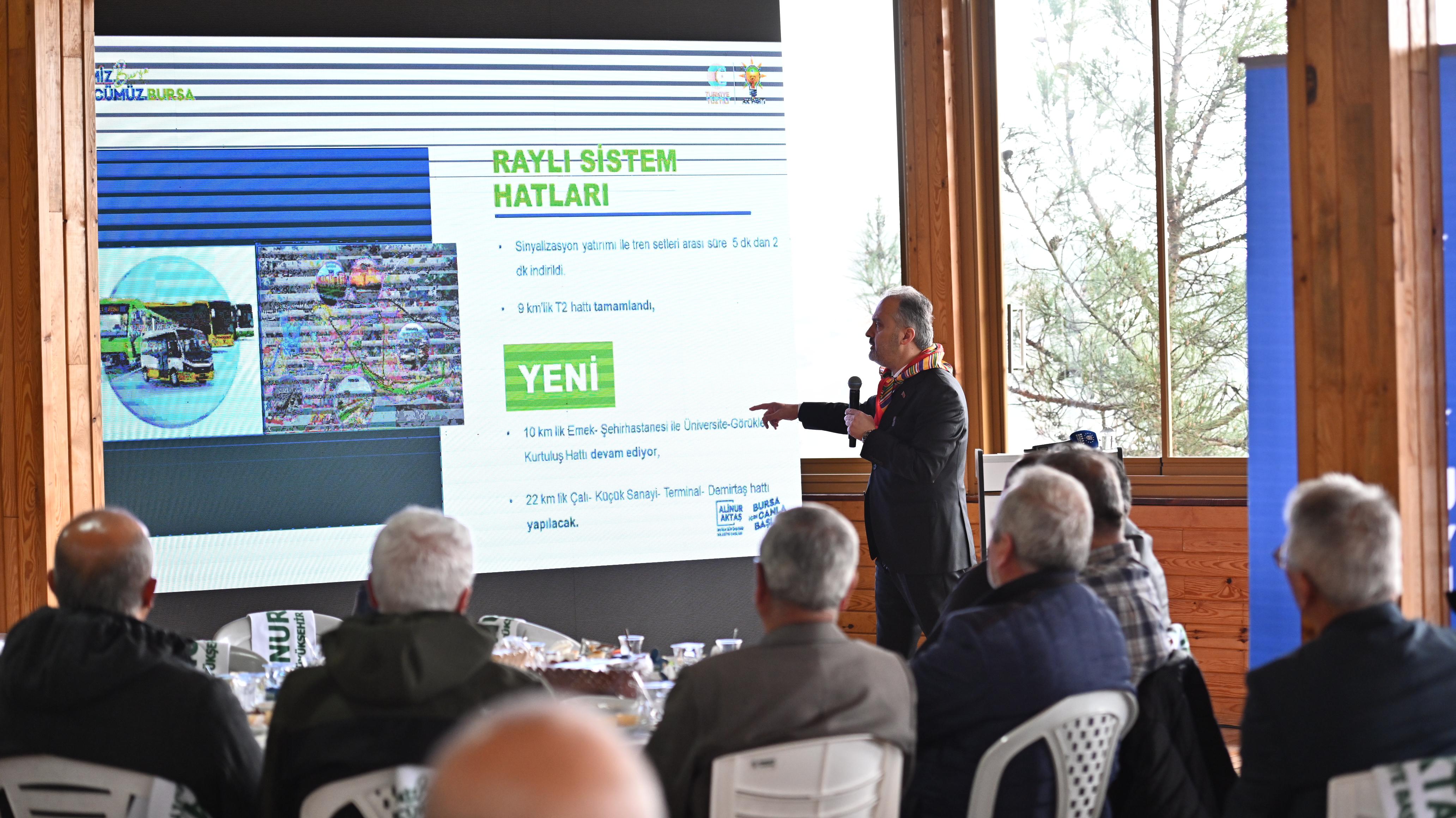 Bursa Büyükşehir Belediye Başkanı Alinur Aktaş, birçok zorluklarla geçirilen 5 seneye rağmen Bursa’da ve ilçelerde birçok önemli projeyi hayata geçirdiklerini söyledi. Yollardan altyapıya, kanalizasyondan içme suyuna ve göletlere kadar kırsal bölgelerde dokunmadık yerde bırakmadıklarını belirten Başkan Aktaş, 17 ilçe, 1606 mahalle ve 3,5 milyon nüfusa mazeret üretmeden hizmet ettiklerini ifade etti. Başkalarının ise anlatacak bir şeyi olmamasına rağmen lafügüzaf ile vakit geçirdiğini dile getiren Başkan Aktaş, “Bugün ne Harmancık’la, ne Büyükorhan’la, ne Orhaneli’yle, ne Keles’le alakaları falan yok. Yapmadıklarını yapmış gibi gösterirler, yapılmak istenen güzel işlere takoz olurlar. Bursa’nın 17 ilçesinde kırsal da dahil dokunmadık yer bırakmadık. Harmancık’ta mobilya meslek yüksekokulu var. Atıl binayı da değerlendirerek Kent Mobilyaları Üretim Tesisi’ni açtık. Şuan istihdam sağlanıyor. Kapasitesini de büyütebiliriz. Harmancık için bu tür işletmelerin önemli olduğunu biliyoruz. Şehrimizin ve ilçelerimizin dertleriyle dertleniyor, bunlarla yatıp kalkıyoruz. Doğ Yolu da milletvekillerimizle odaklandığımız konulardan bir tanesi. Bunu da halledeceğiz. Kırsal turizm, hayvancılık ve tarımla alakalı konuların gelişmesi adına yol konusunu önemsiyoruz. 4 dağ ilçesinde 43 bin nüfus olsa da şehir merkezinde 200-300 bin civarında dağ yöresinden insan yaşıyor. Sürekli köylerine, ailelerine gidip geliyorlar. Yol kalitesinin iyileşmesi insan dolaşımını daha da arttıracaktır” diye konuştu.