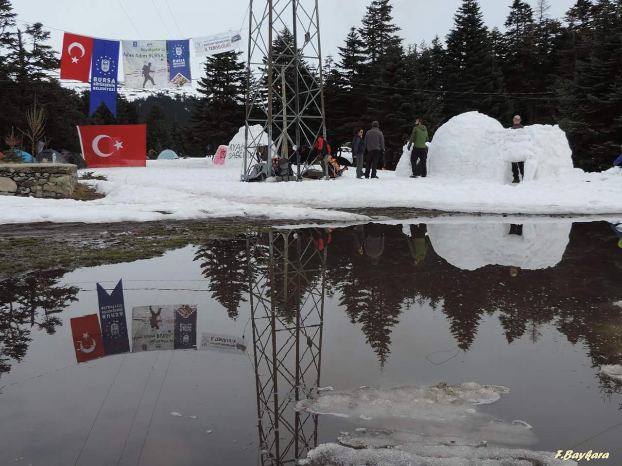Bursa Büyükşehir Belediyesi Kültür ve Turizm Daire Başkanlığı’nın projelendirdiği, Büyükşehir Belediyesi Kültür ve Turizm Daire Başkanlığı Kültür ve Turizm Şube Müdürlüğü ile Türkiye Dağcılık Federasyonu Bursa İl Temsilciliği tarafından yürütülen ‘Büyükşehir ile Adım Adım Bursa’ projesi, bu kez ‘Uludağ İglo Kampı’na ev sahipliği yaptı. 120 dağcının katılımıyla Uludağ’da gerçekleştirilen program, eğlenceli anlara imzasını attı. Dağcılar, kamp günü Tayyare Kültür Merkezi önünden hareket edip Uludağ’a iki keyifli gün geçirdiler. Dağcıların kendilerinin inşa ettiği 7 adet iglo, katılımcılara konaklama imkanı da sağlarken, aynı zamanda etkinlik yerli ve yabancı turistlerin de ilgi odağı oldu. İnşa edilen igloların yanı sıra profesyonel dağcılık ekipmanlarının da kullanılabildiği kampta katılımcılar, ferdi çadırlarını da kullanarak konaklama şansı buldu. İglo yapımı ve gezi faaliyetlerinin yanı sıra Türkiye Dağcılık Federasyonu Antrenörü Sabahattin Kır tarafından katılımcılara temel kış eğitimi de verildi. Programın sonunda Türkiye Dağcılık Federasyonu Bursa İl Temsilcisi Nazif Makas ve İl Tertip Komitesi Üyesi Feridun Baykara, sporun ve sporcuların dostu olan Bursa Büyükşehir Belediye Başkanı Recep Altepe’ye teşekkür etti.