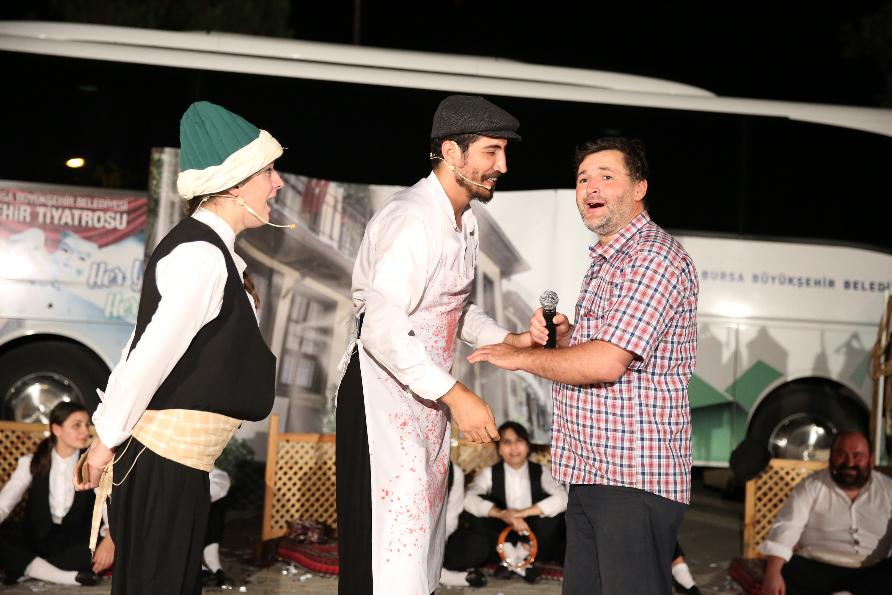 BURSA – Bursa Büyükşehir Belediyesi Şehir Tiyatrosu’nun yaza damgasını vuran ‘Çemberimde Gül Oya’ adlı oyunu, Karacabey İlçesi’nin Dağkadı Mahallesi’nde eğlenceli anlara imzasını attı.
