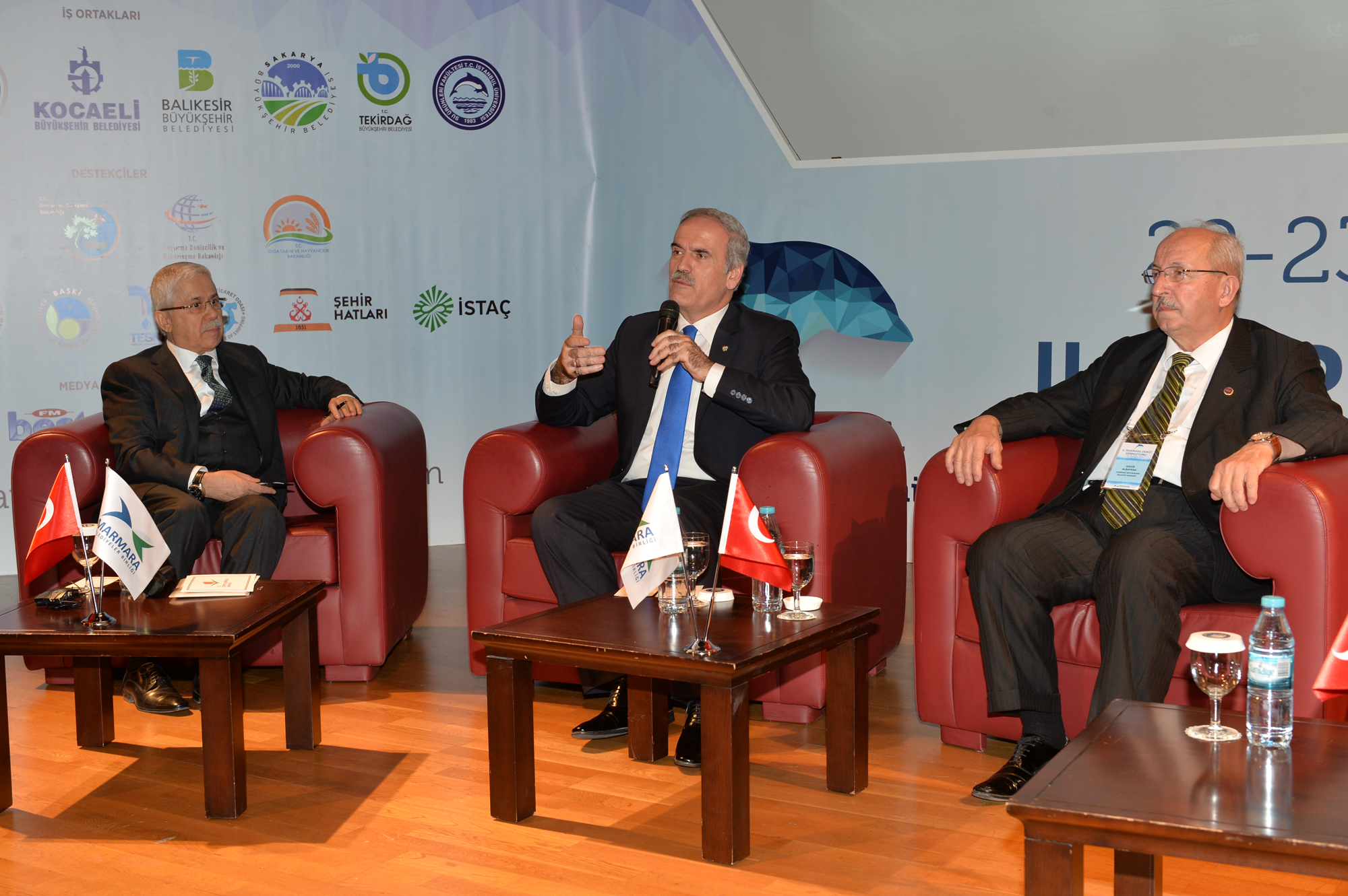 Sempozyumun ‘Büyükşehirler ve Marmara Denizi’ konulu ilk oturumunda Büyükşehir Belediyelerinin denizin temizlenmesine yönelik yaptıkları çalışmalar ele alındı. Moderatörlüğünü Çevre ve Şehircilik Bakanlığı Müsteşarı Prof. Dr. Mustafa Öztürk’ün yaptığı oturumda, Bursa Büyükşehir Belediye Başkanı Recep Altepe, Tekirdağ Büyükşehir Belediye Başkanı Kadir Albayrak ve İstanbul Büyükşehir Belediyesi Genel Sekreter Yardımcısı Nihat Macit de belediye olarak yaptıkları çalışmalardan örnekler verdi.