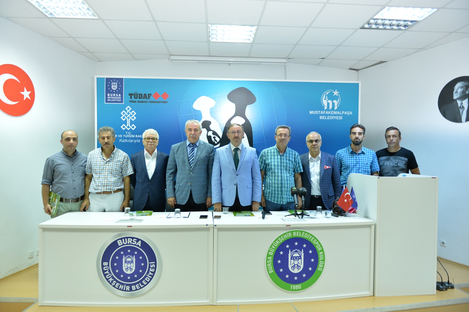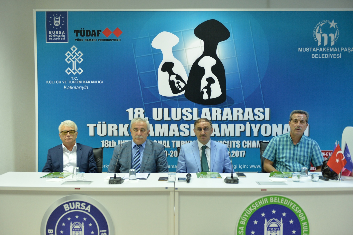 Bursa Büyükşehir Belediyesi Havuzlu Park Sosyal Tesisleri´nde yapılan basın toplantısına Mustafakemalpaşa Belediye Başkanı Sadi Kurtulan, Bursa Büyükşehir Belediyespor Kulübü Başkan Yardımcısı İlhan Satık, Türk Daması Federasyonu Yönetim Kurulu Üyesi Muzaffer Ceylan ve Mustafakemalpaşa Damacılar Derneği Başkanı Ali Tayfur ve basın mensupları katıldı.