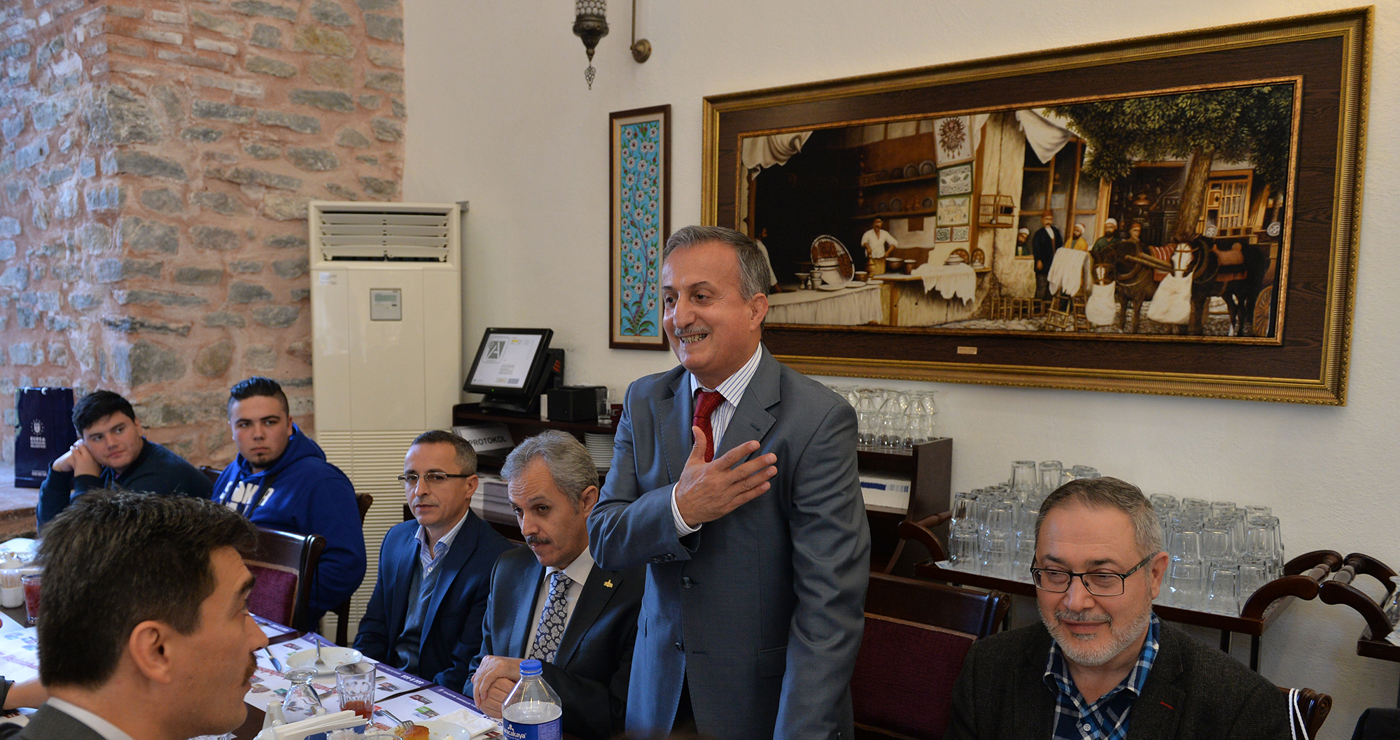 Kayhan’daki Döner Sofrası’nda gerçekleşen kabule, Bursa İl Milli Eğitim Müdürü Veli Sarıkaya, Mina Hindholm İmam Hatip Lisesi Müdürü Ahmet İhsan, öğretmenler ve öğrenciler katıldı.
