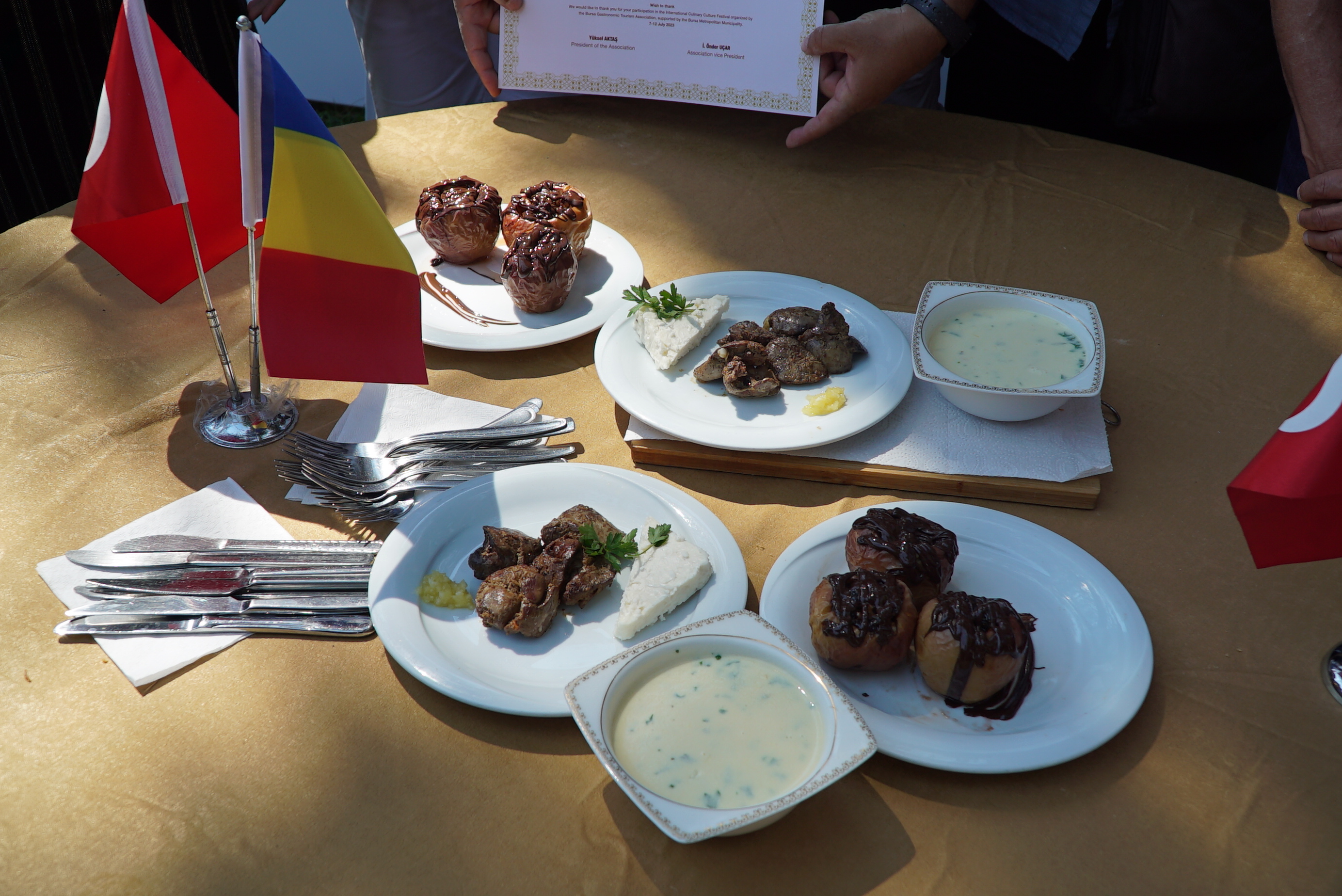 Uluslararası Altın Karagöz Halk Dansları yarışmasının 35 yıldır olduğu gibi bu yıl da Bursa’da barış ve kardeşlik rüzgarları estirdiğini hatırlatan Bursa Kültür Sanat ve Turizm Vakfı Genel Sekreteri Fehim Ferik, Altın Karagöz’ü kazanabilmek için her gün sahnede hünerlerini gösteren dansçıların bu kez mutfakta ter döktüğünü belirtti. Altın Karagöz Halk Dansları Yarışması bünyesinde 2 yıldır düzenledikleri gastronomi etkinliği ile farklı ülkelerden gelen dansçılara kültürlerini tanıtma fırsatı sunduklarını anlatan Ferik, Bursa Gastronomi Derneği işbirliği ile düzenlenen bu etkinlikle Bursa’nın yemek kültürünü de dünya halklarına tanıtma imkanı bulduklarını sözlerine ekledi.