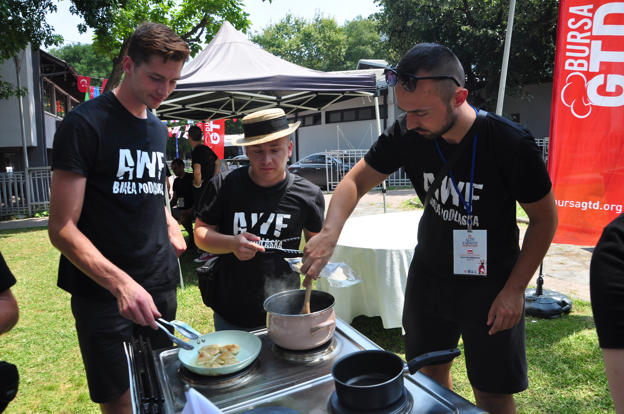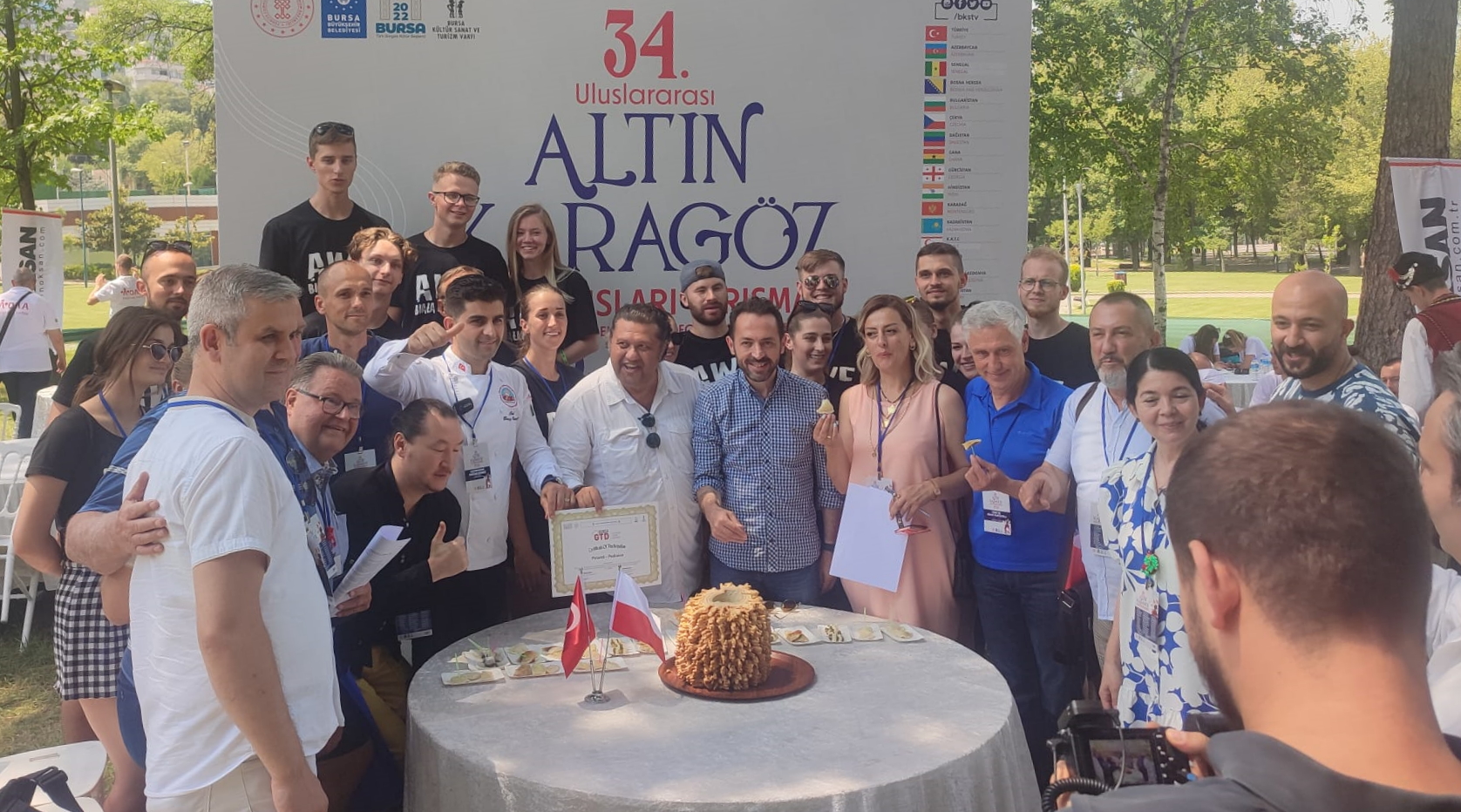 Büyükşehir Belediyesi adına Bursa Kültür Sanat ve Turizm Vakfı (BKSTV) tarafından Kültür Bakanlığı'nın destekleriyle Harput Holding ana sponsorluğunda gerçekleştirilen 34. Altın Karagöz Halk Dansları Yarışması, 18 ülkeden 575 dansçı ve 22 yerli grubun katılımıyla devam ediyor. Altın Karagöz Halk Dansları Yarışması’na katılan 18 ülkeden 13'ü, ülkelerinden getirdikleri malzemelerle yörelerine ait yemekleri sergiledi. Bursa Gastronomi Derneği'nin katkıları ile düzenlenen etkinlikte dansçılar, sahnede gösterdikleri hünerleri bu kez mutfağa taşıdı. Ülkelerine ve yaşadıkları bölgelere has yemekleri Açıkhava Tiyatrosu'nda oluşturulan mutfakta pişirerek diğer ülke dansçılarıyla paylaşan ekipler, renkli görüntüler oluşturdu.