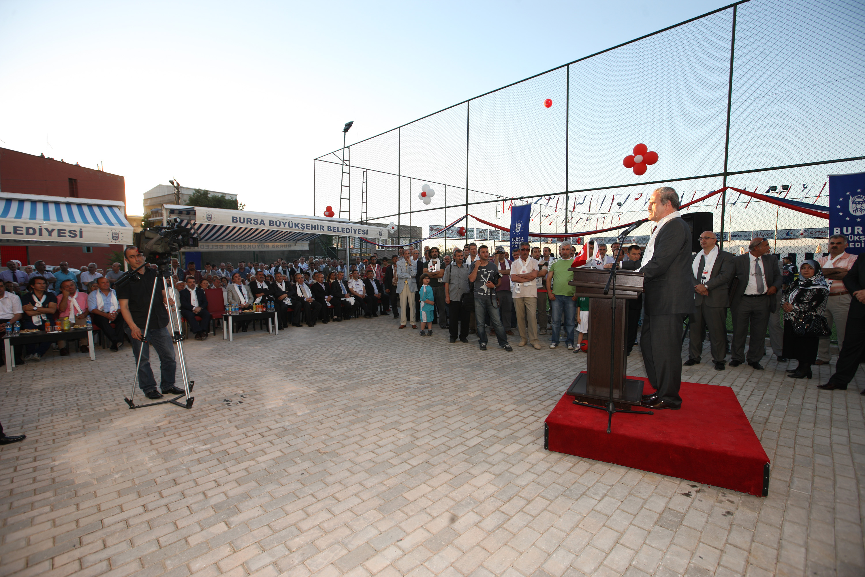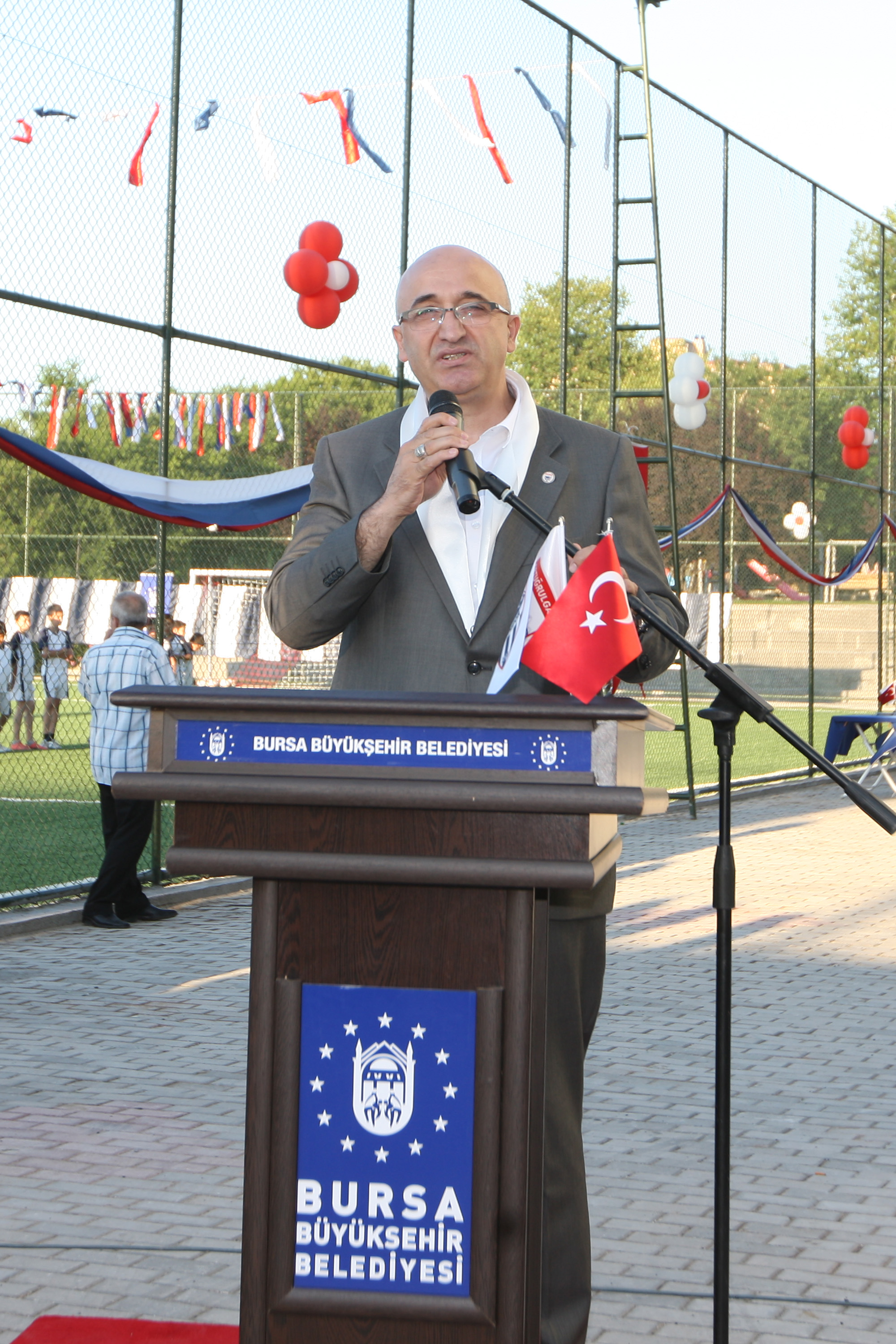 Bursa’yı özellikle raylı sistemler, turizm ve spor konularında marka haline getirme idealiyle yola çıktıklarını dile getiren Büyükşehir Belediye Başkanı Recep Altepe ise her üç alanda da önemli mesafeler kat ettiklerini hatırlattı. Yeni nesillerin sağlıklı, idealist ve sporcu olarak yetişmesi için hiçbir fedakarlıktan kaçınmadıklarını belirten Başkan Altepe, “Ancak spor tesisi yapmak için Yıldırım’da, Osmangazi’de boş alan bulmak çok zor. Bulduğumuz her alanı değerlendiriyoruz. Bu bölgede de son kalan yeni bu tesisle kamuya kazandırmış olduk. Tek idealimiz bu kentin hizmetlerini tüm halkımıza paylaştırmak. Burası da başta bölgedeki amatör kulüpler olmak üzere 7’den 70’e tüm halkımıza hizmet verecek. Bursa’ya spor tesisleri, yeşil alanlar, yeni yollar kazandırmak için neredeyse her gün bir bina yıkıyoruz. Kamulaştırma harcamalarımız üç yılda 150 milyon TL’yi aştı. Bu Bursa’nın 15 yıllık kamulaştırmalarına bedel. Yıktığımız binaların yerine yaptığımız spor tesislerinde gençlerimiz sağlıklı şartlarda spor yapıyorlar. Şuana kadar başlattığımız, inşaatı devam eden ve tamamlanan spor tesisi sayısı 99’a ulaştı. Bunlardan biri de yeni stadyum. UEFA standartlarındaki 45 bin kişilik stadyumumuzu da kısa zamanda tamamlayıp, Bursa’ya kazandırmış olacağız” dedi.