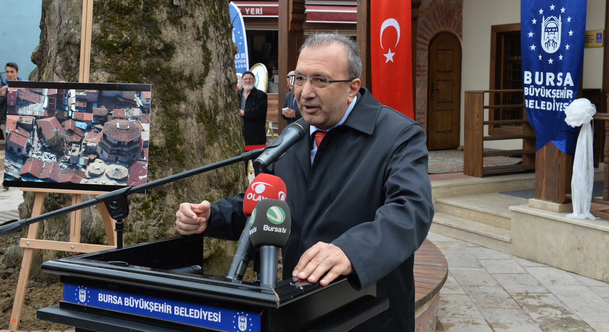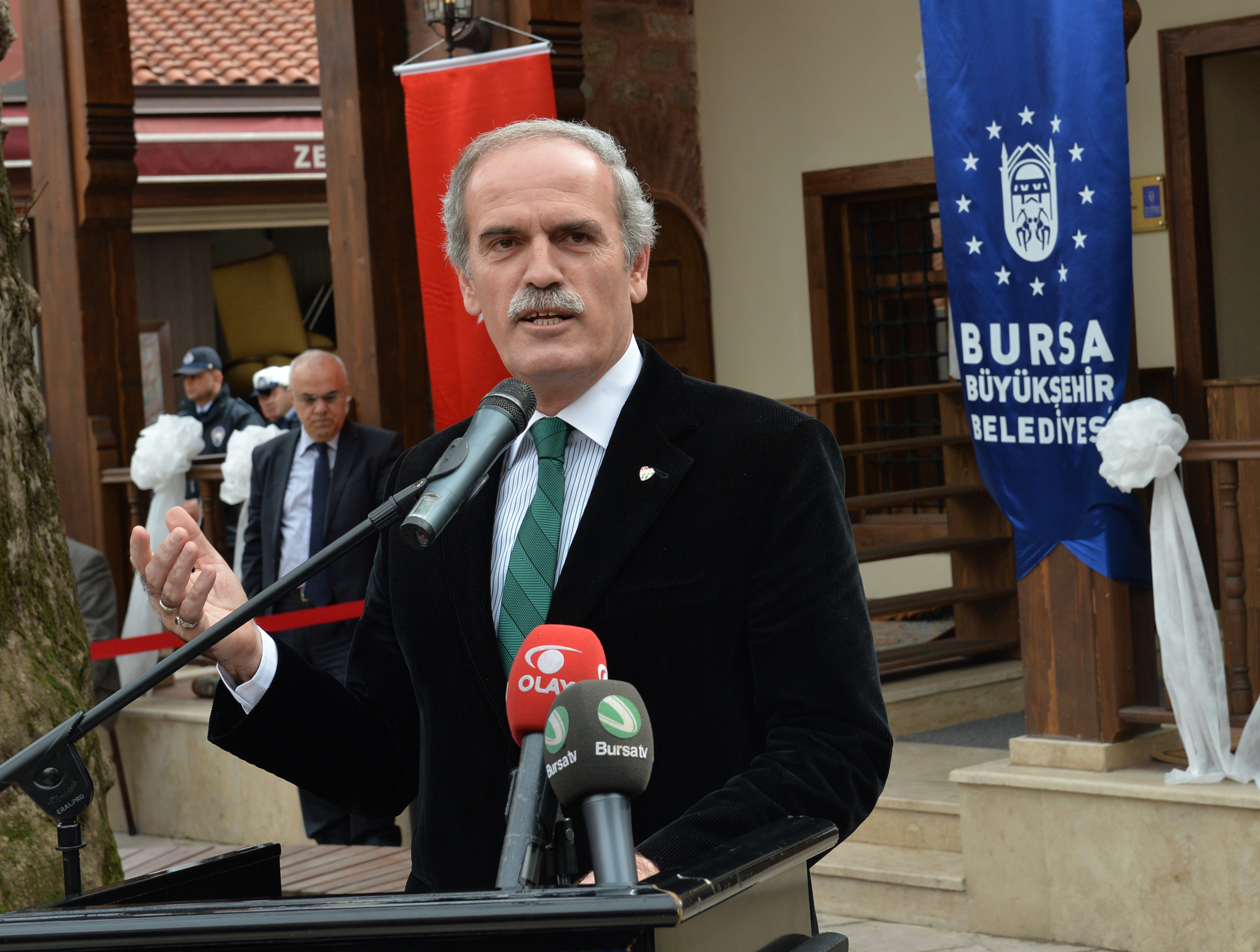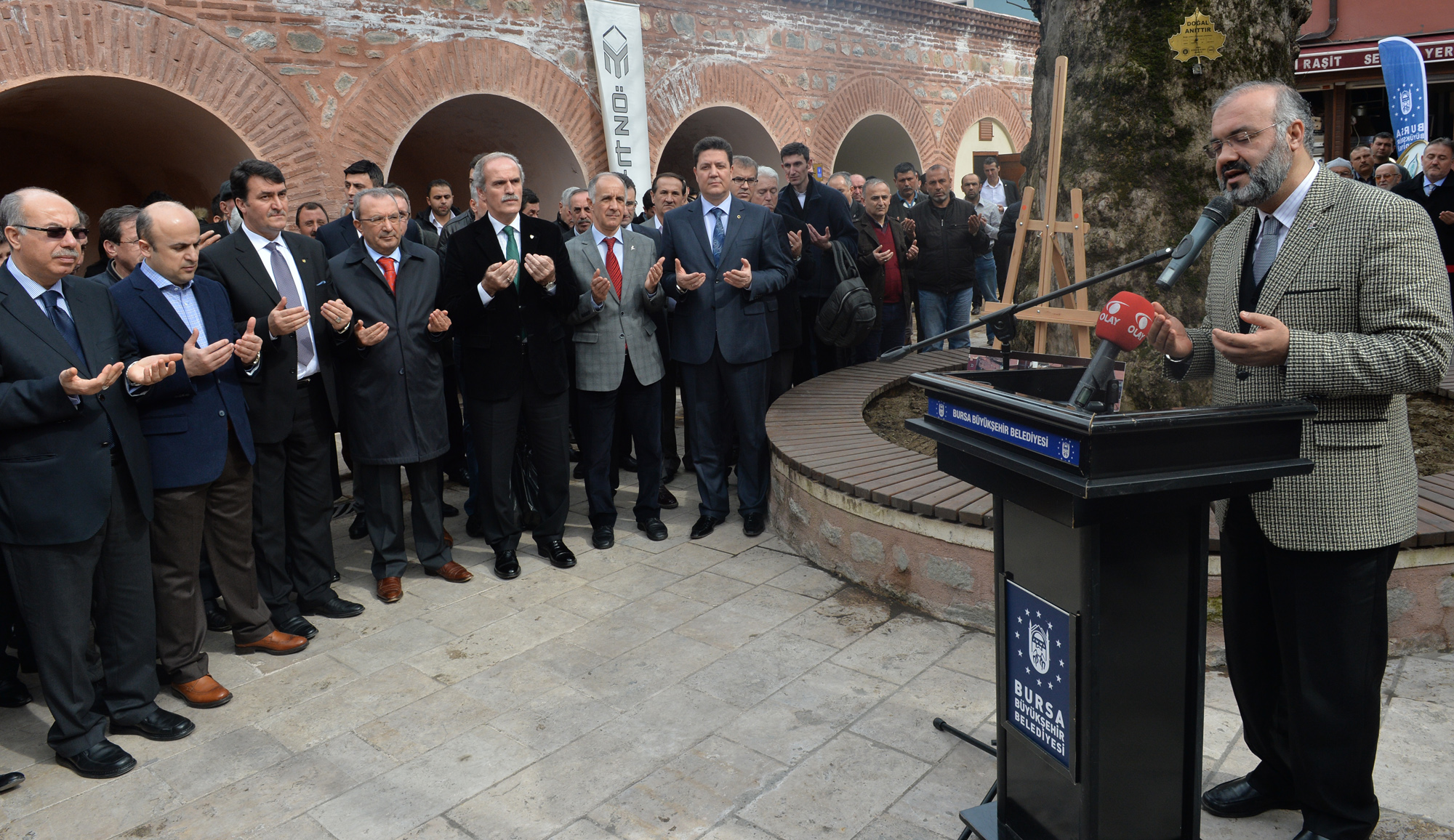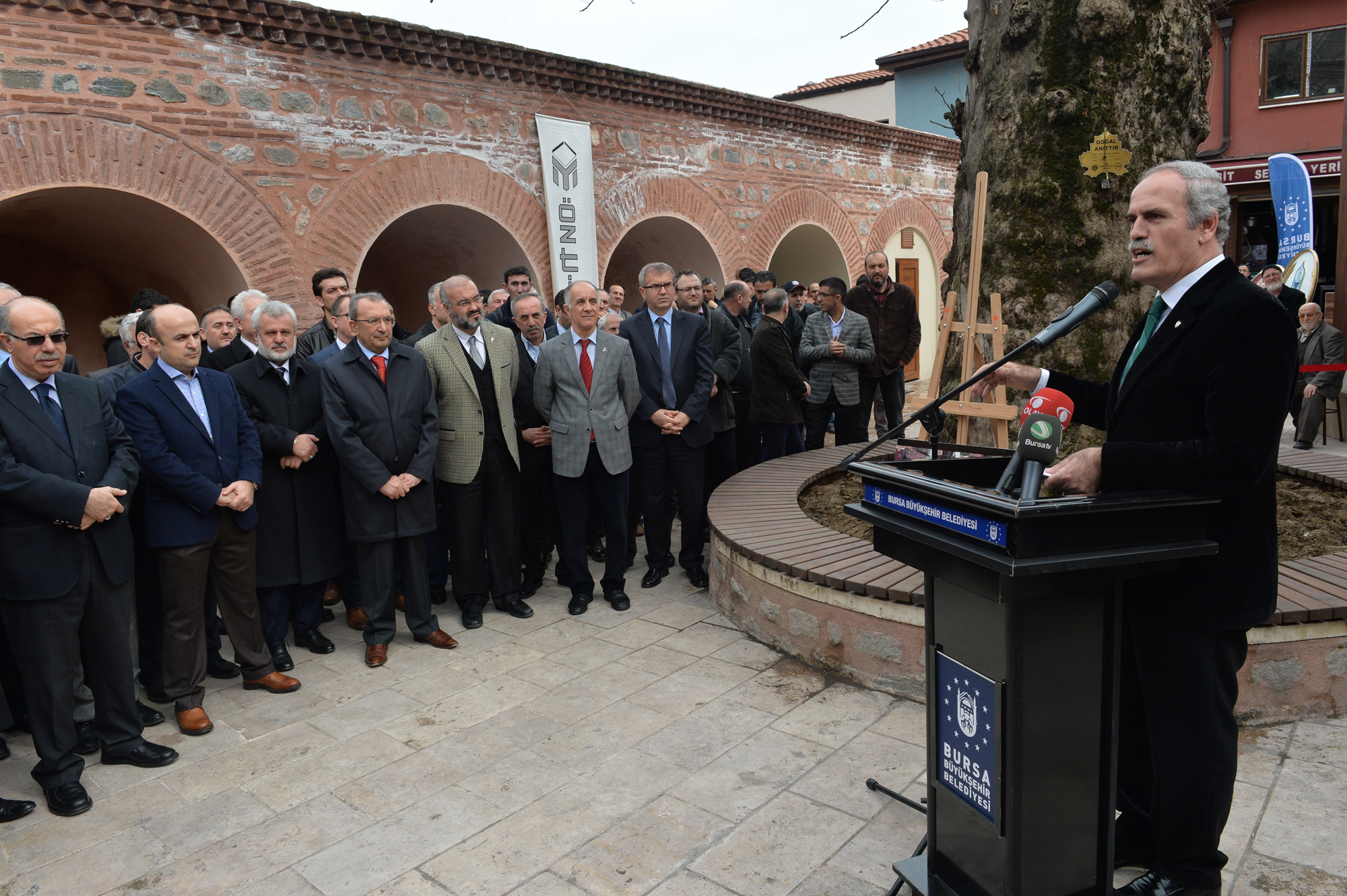 Osmangazi Belediye Başkanı Mustafa Dündar ile Büyükşehir Belediyesi bürokratlarının da katıldığı törende Osmangazi Kaymakamvekili ve Yıldırım Kaymakamı Mehmet Aydın, Büyükşehir Belediyesi’nin çalışmalarıyla geçmişin tarihi değerlerinin bugünle buluştuğunu söyledi. Bursa Tarihi Çarşı ve Hanlar Bölgesi (BTÇH) Birliği Başkanı Muhsin Özyıldırım ise 700 yıllık çarşının hareketinin kenti de hareketlendirdiğini vurguladı. Aydın ve Özyıldırım, Bursa’ya değer katan hizmetlerinden ve çarşıyı kalkındıran yatırımlarından dolayı Büyükşehir Belediye Başkanı Recep Altepe’ye teşekkür etti.