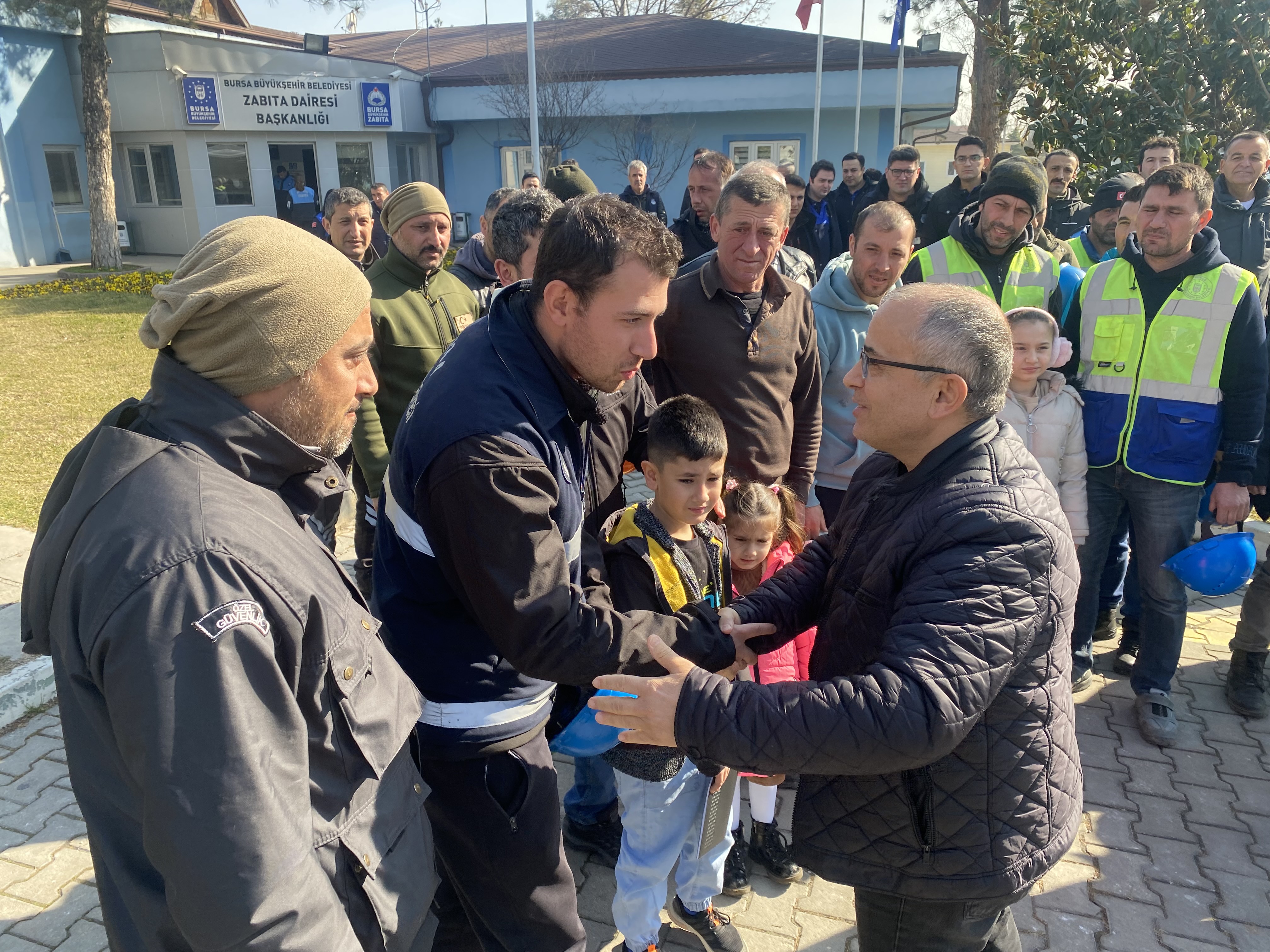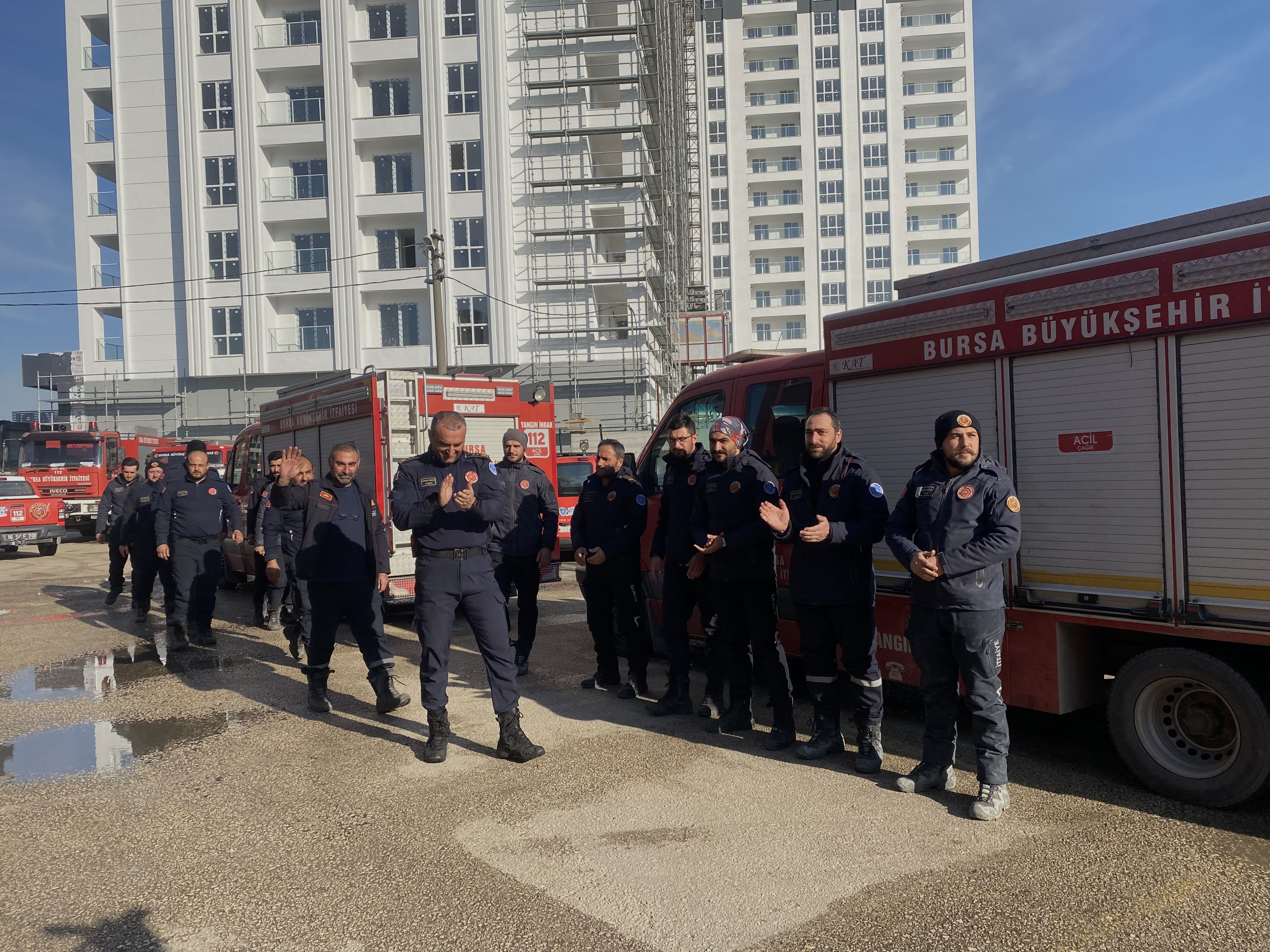BURSA - Büyükşehir Belediyesi tarafından ‘deprem sonrası arama kurtarma çalışmaları için’ afet bölgelerine gönderilen 21 itfaiye eri ile 18 zabıta personeli, Bursa’da alkışlarla karşılandı.