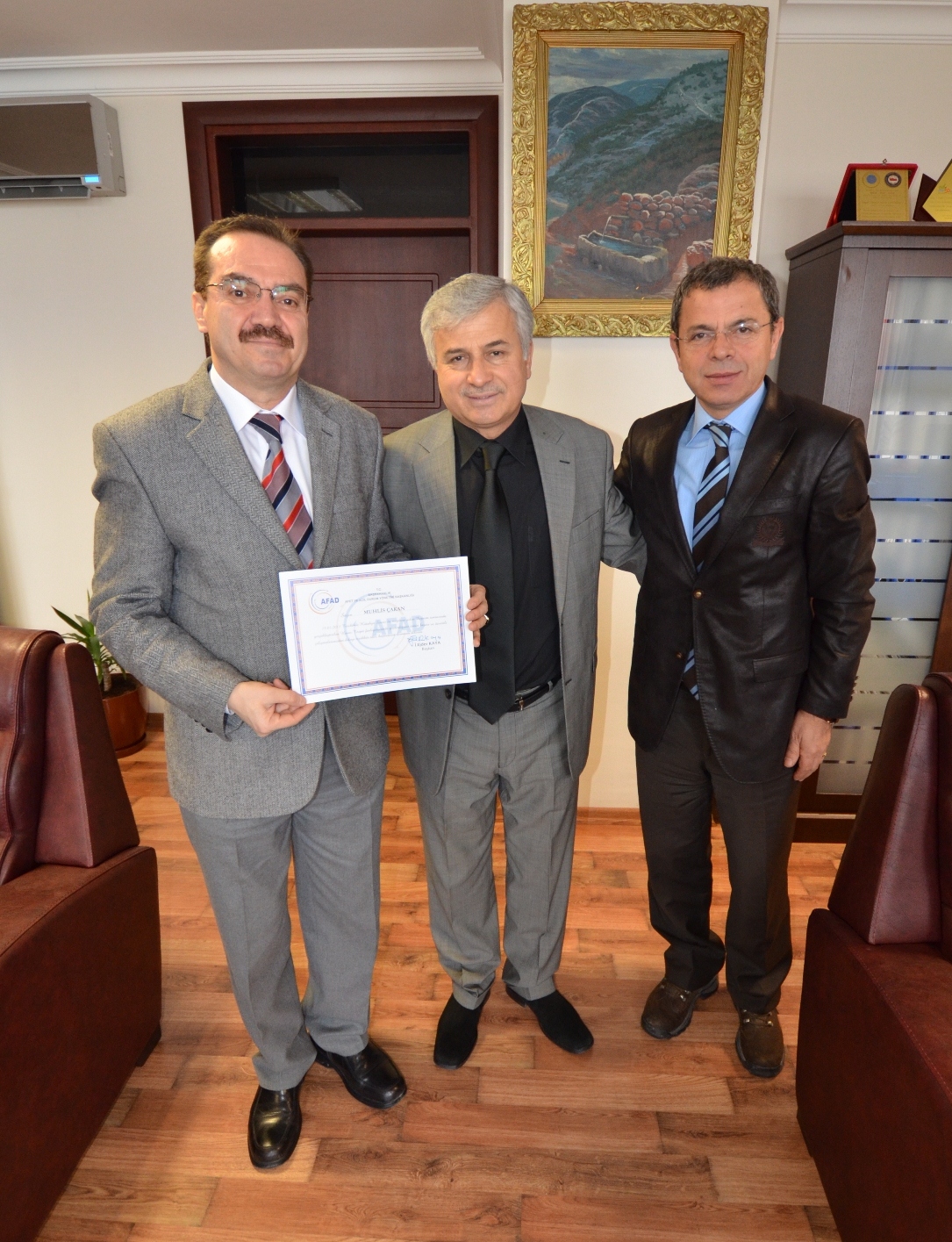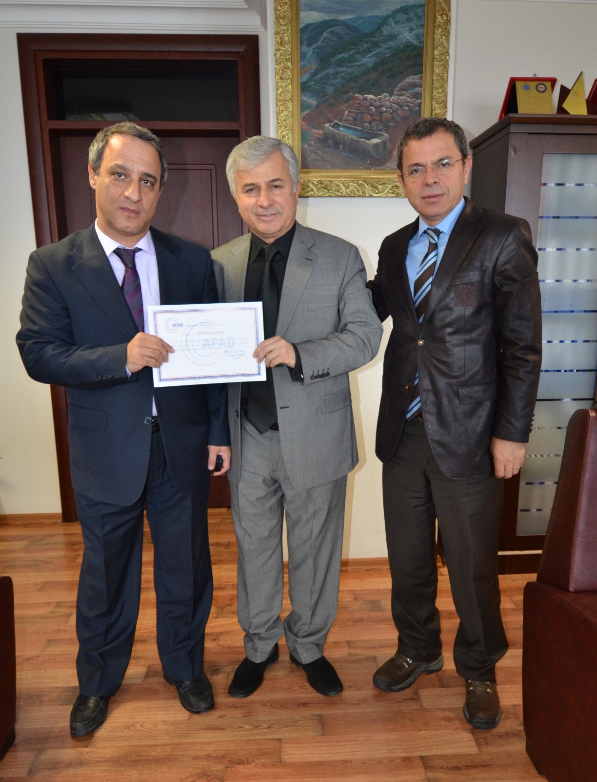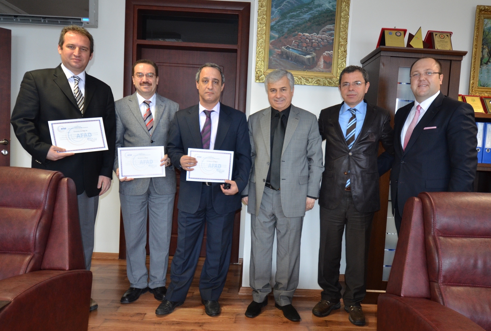 BUSKİ çalışanları Gürkan Kafkas, Muhlis Çakan ve Önder Pazarcık teşekkür belgelerini, BUSKİ Genel Müdürü İsmail Hakkı Çetinavcı’nın elinden aldı. Çetinavcı, BUSKİ personelinin hasar tespit çalışmalarında gösterdikleri yoğun ve özverili çalışmalar nedeniyle Başbakanlık Afet ve Acil Durum Yönetimi Başkanlığı’nca ‘teşekkür belgesi’ ile ödüllendirildiğini vurguladı.