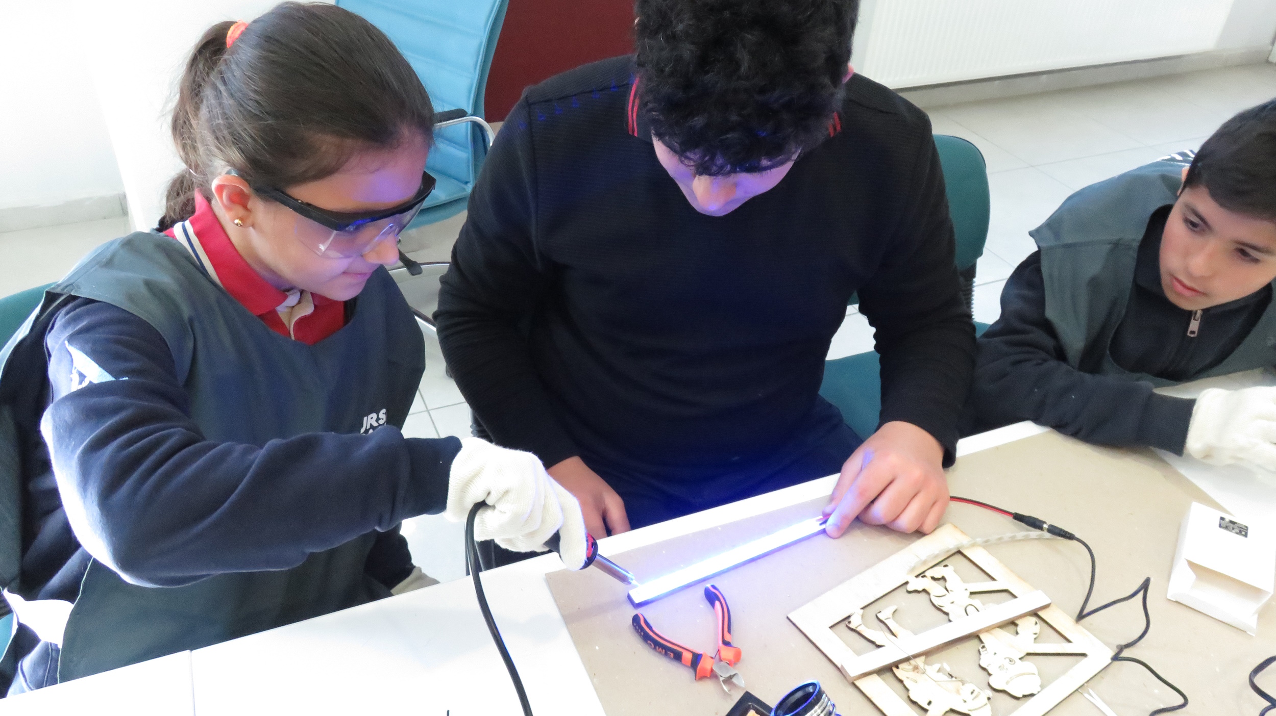 Türkiye’yi yasa boğan depremin hemen ardından bölgede çalışmalarını aralıksız sürdüren Bursa Büyükşehir Belediyesi, şehre getirilen afetzedelerin de yaralarını sarmaya devam ediyor. Depremin etkili olduğu şehirlerden Bursa’ya gelerek eğitim hayatlarını Nilüfer Azizsancar Ortaokulu’nda sürdüren 15 öğrenci, Büyükşehir Belediyesi ve Demirtaşpaşa MTAL Okulu işbirliğiyle düzenlenen etkinlik kapsamında BTM’yi ziyaret etti. Bursa’nın sembolü olan Hacivat ve Karagöz figürlü ahşap duvar lambası tasarım beceri atölyesine katılan öğrenciler, el becerilerini kullanarak kendi tasarımlarını yaptı. Hayatlarında ilk defa bilim merkezi gezerek atölye çalışmasına katılan çocuklar, eğlence dolu keyifli bir gün geçirmiş oldu.