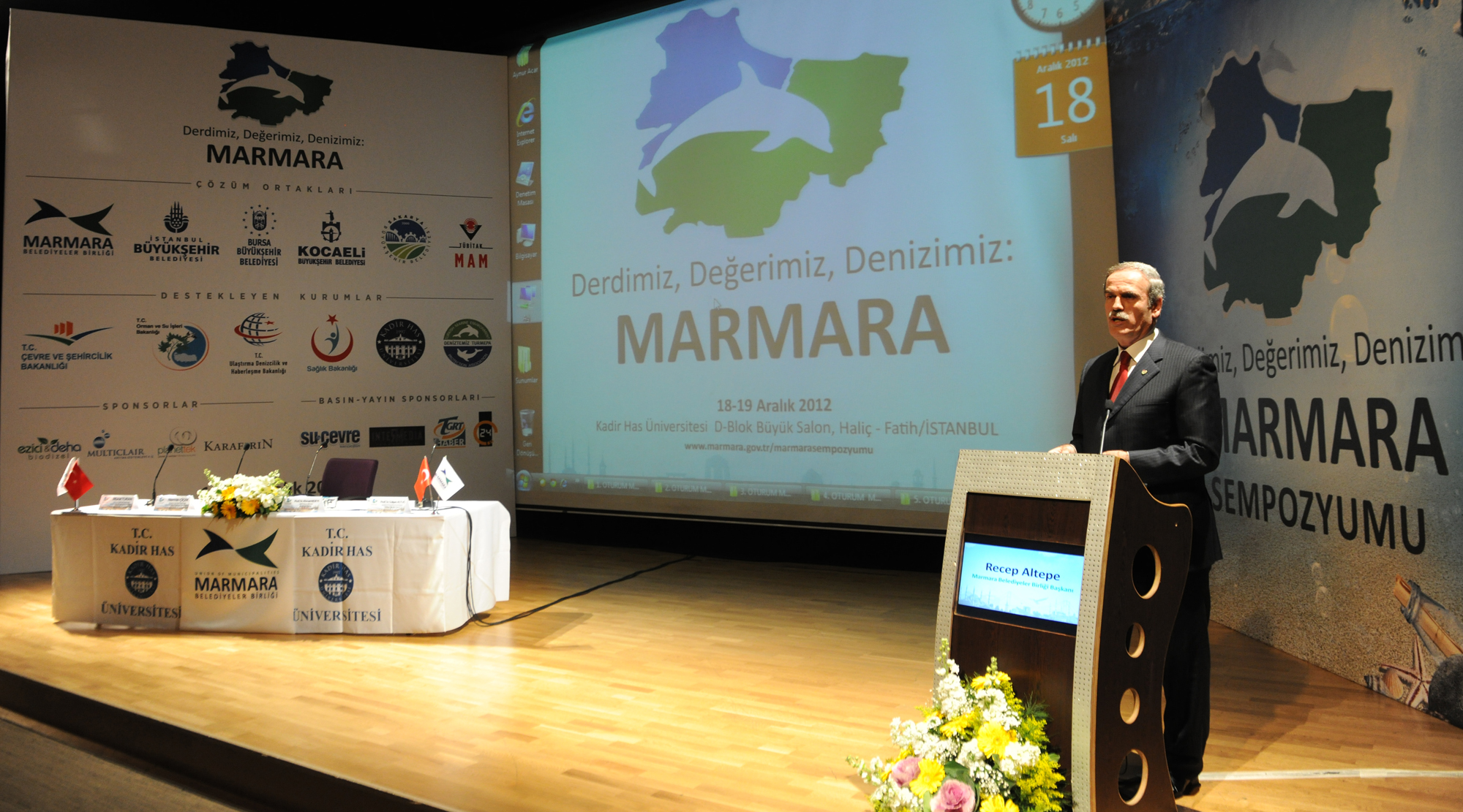 MBB ve Bursa Büyükşehir Belediye Başkanı Recep Altepe, sempozyumun açılışında yaptığı konuşmada, "Kimi ´Marmara fosseptik´ dedi, kimi ´Marmara suyu içilebilir temizlikte´ dedi. Kimi ´Marmara´da gönül rahatlığıyla yüzülebilir´ dedi, kimi ´Marmara´yı belediyeler kirletiyor´ dedi. Tüm kurum ve kuruluşlar işin iyi tarafını kendilerine, kötü taraflarını da belediyelere yonttular. Şimdi söz sırası belediyelerde. Şeffaf tartışma ortamında tüm konuların masaya yatırılacağı ve işin tüm boyutlarıyla ele alınacağı ´Derdimiz, Değerimiz, Denizimiz: Marmara´ sempozyumunda, konunun tarafı olan herkes çözümün parçası olacak" dedi.