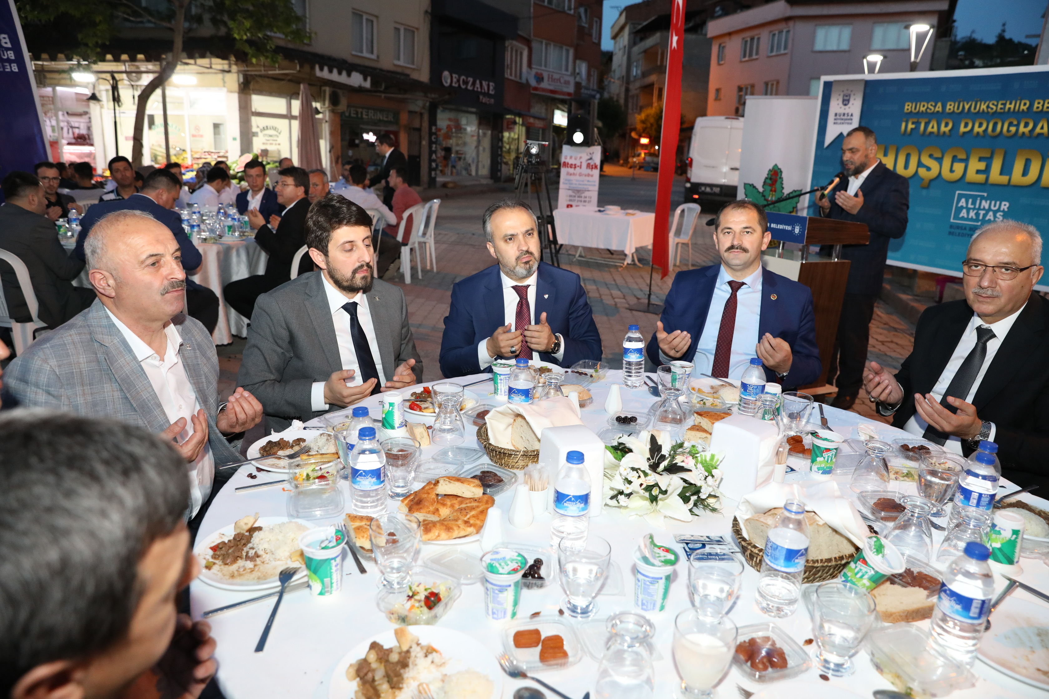 İftar yemeğinin ardından vatandaşlara seslenen Büyükşehir Belediye Başkanı Alinur Aktaş, öncelikle 31 seçimlerinde kendilerine verilen destek nedeniyle vatandaşlara teşekkür etti. Seçimlerin geride kaldığını, hiçbir mazerete sığınmadan gece gündüz Orhaneli’ni geleceğe taşımak için çalışacaklarını ifade eden Başkan Aktaş, “Gecemizi gündüzümüze katıp, Orhaneli başta olmak üzere tüm ilçelerimizde daha fazla neler yapabiliriz? Bir yol daha yapabilir miyiz? Bir altyapı sorununu daha çözebilir miyiz? Bir spor tesisi daha yapabilir miyiz? Orhaneli’nde daha evvel konuşmuştuk, kültür merkezi için ne yapabiliriz? Bunların derdi ve heyecanı içinde olacağız. Türkiye gelişen, bölgesindeki yıldızı parlayan ülkelerden biri. Bize devamlı gelişim yakışır, devamlı güzel projeler yapmak yakışır. İnşallah ilçe belediye başkanımızla el ele kol kola verip, projelerimizi hayata geçirmek için gayret ortaya koyacağız” dedi.
