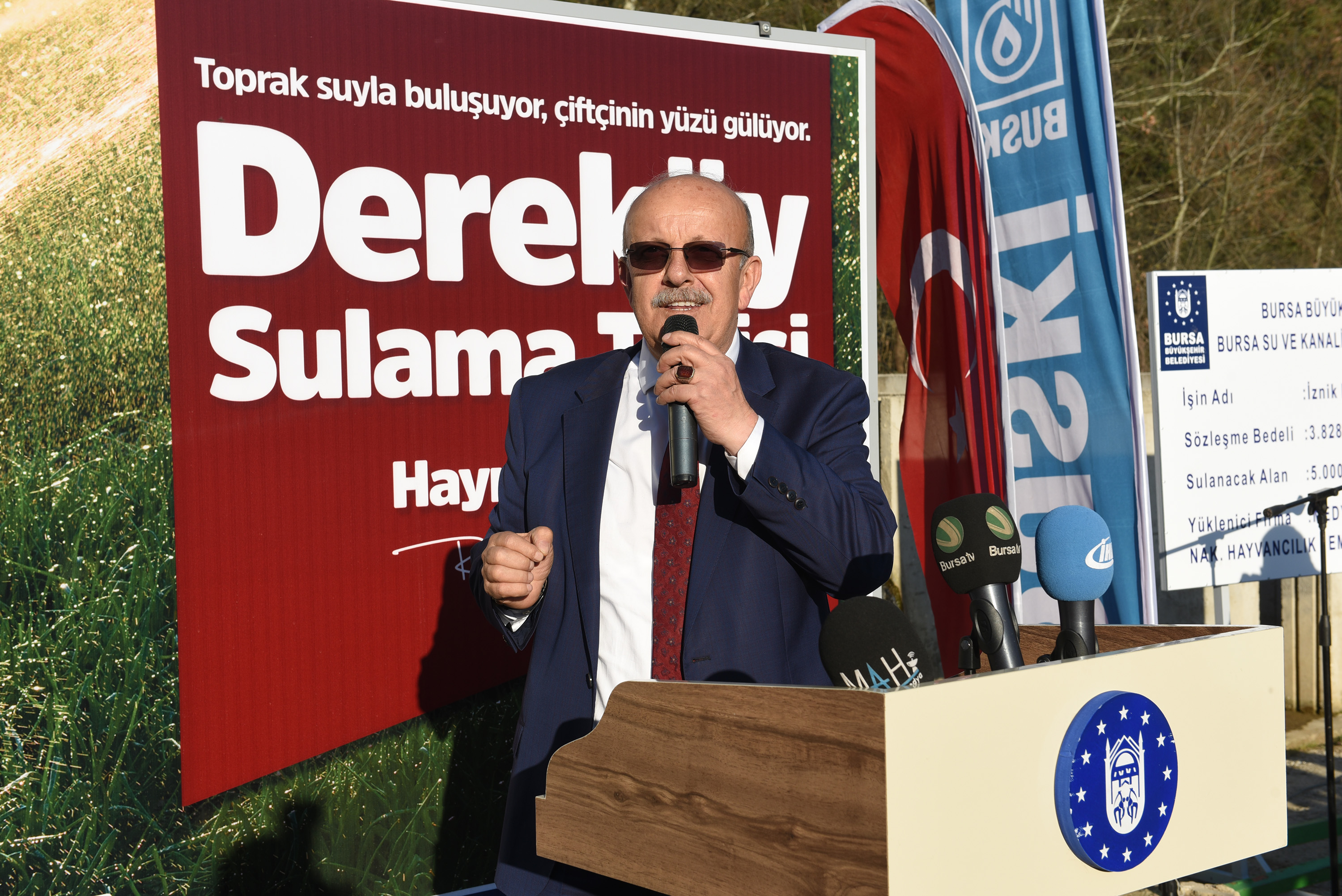 - KIRSAL KALKINMANIN SAĞLANMASI İÇİN TÜM İLÇELERDE SULU TARIMIN YAYGINLAŞMASINA YÖNELİK YATIRIMLAR YAPAN BÜYÜKŞEHİR BELEDİYESİ, İZNİK İLÇESİNE BAĞLI DEREKÖY MAHALLESİ’NDE DE YAKLAŞIK 4 MİLYON TL’YE MAL OLACAK SULAMA TESİSİ İLE 6 BİN DEKAR ALANI SUYLA BULUŞTURACAK.