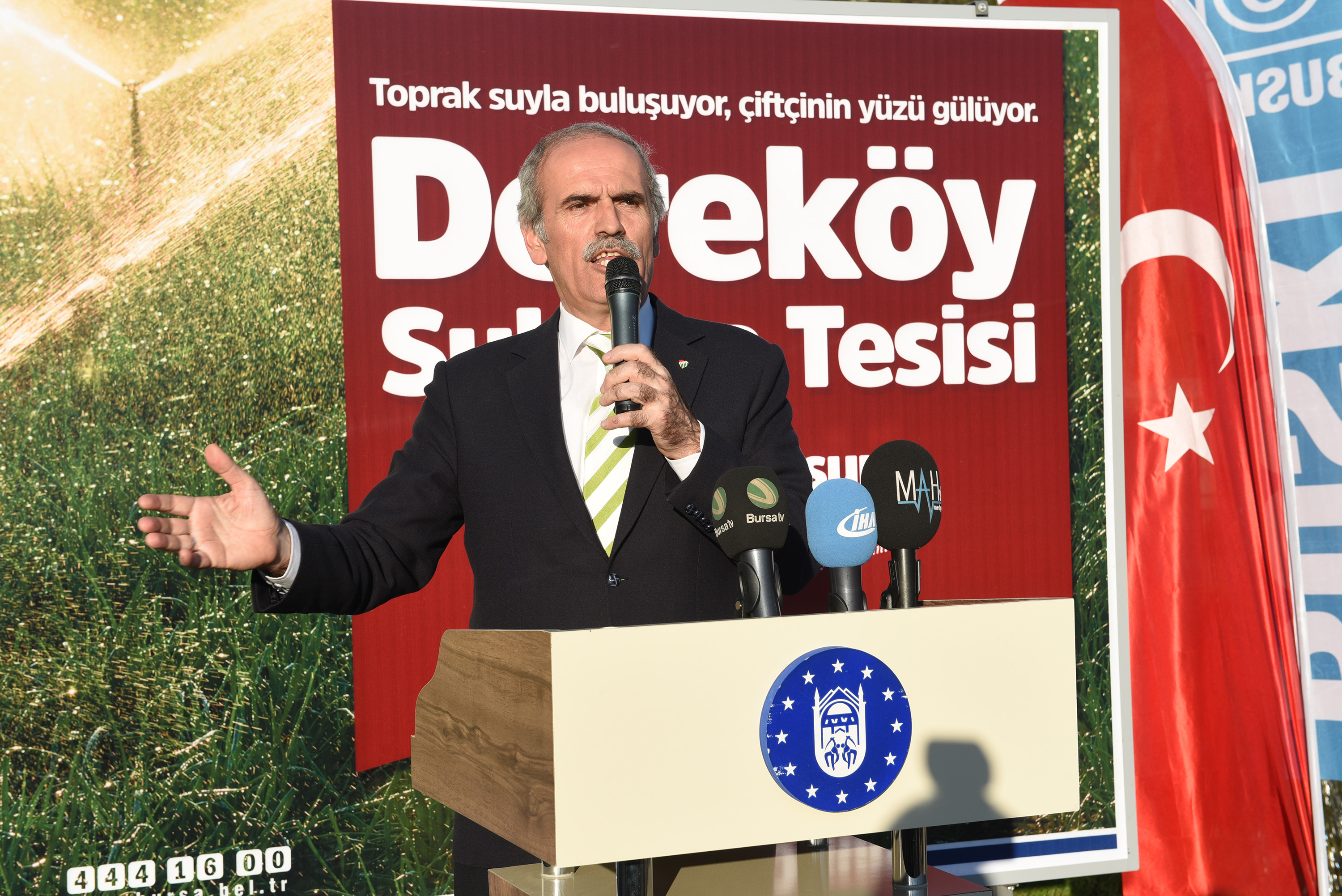 BURSA - Kırsal kalkınmanın sağlanması için tüm ilçelerde sulu tarımın yaygınlaşmasına yönelik yatırımlar yapan Büyükşehir Belediyesi, İznik ilçesine bağlı Dereköy Mahallesi’nde de yaklaşık 4 milyon TL’ye mal olacak sulama tesisi ile 6 bin dekar alanı suyla buluşturacak. Büyükşehir Belediye Başkanı Recep Altepe, bugüne kadar boşa akıp giden Dereköy’ün bereketli sularının artık toprağa hayat vereceğini söyledi. Bursa Milletvekili Müfit Aydın, eskiden bir köye gerek 50 metrelik boruyu alabilmek için bile Ankara’ya kadar gidildiğini hatırlatarak, eskiden tüm Türkiye’de yapılan toplam yatırım kadar yatırım günümüzde sadece Bursa Büyükşehir Belediyesi tarafından yapıldığını açıkladı.