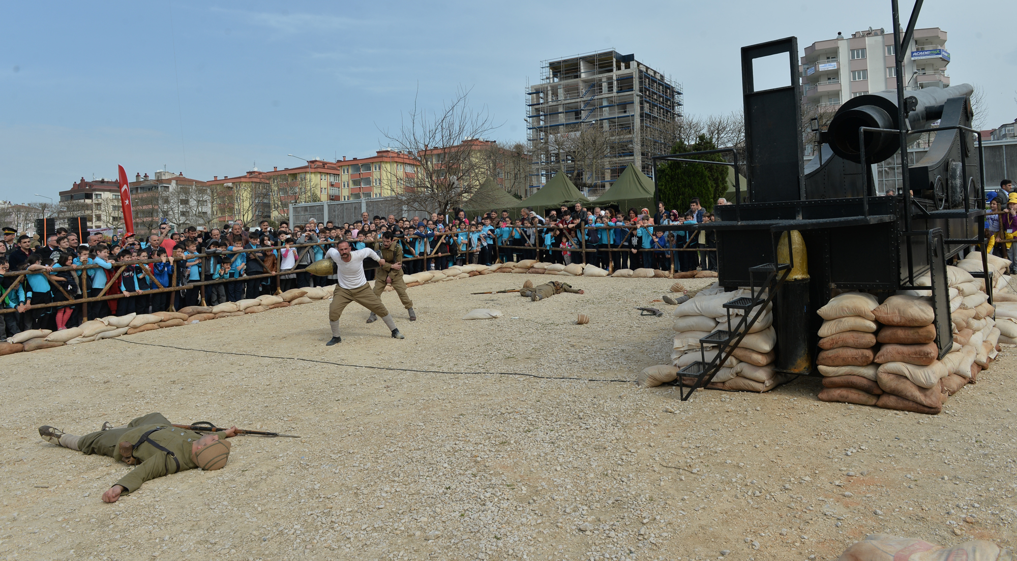 - BURSA BÜYÜKŞEHİR BELEDİYESİ, ÇANAKKALE DESTANININ 102. YILINDA MERİNOS PARK ALANINA ÖZEL BİR PLATO KURACAK. DEV PLATODA CEPHE VE CEPHE GERİSİNDE YAŞANANLAR, TİYATRAL GÖSTERİYLE CANLANDIRILACAK.
